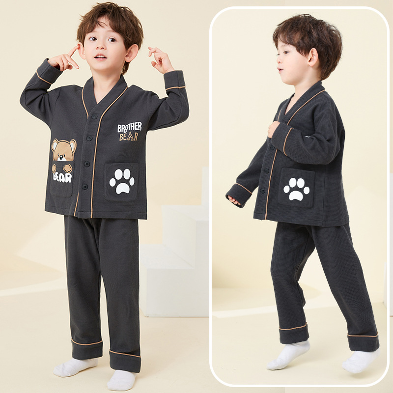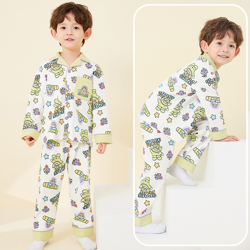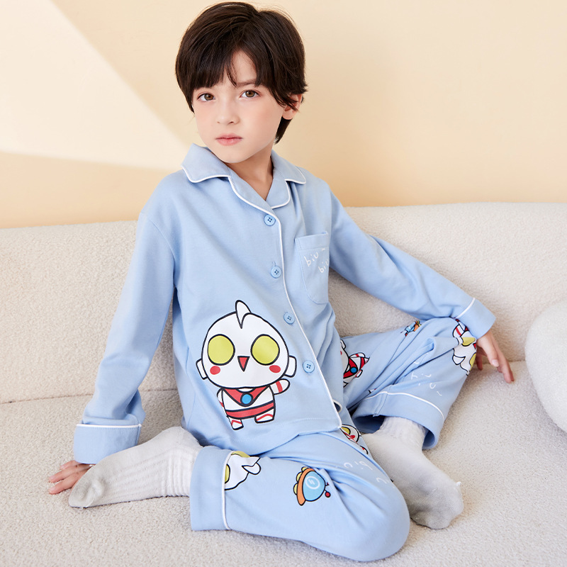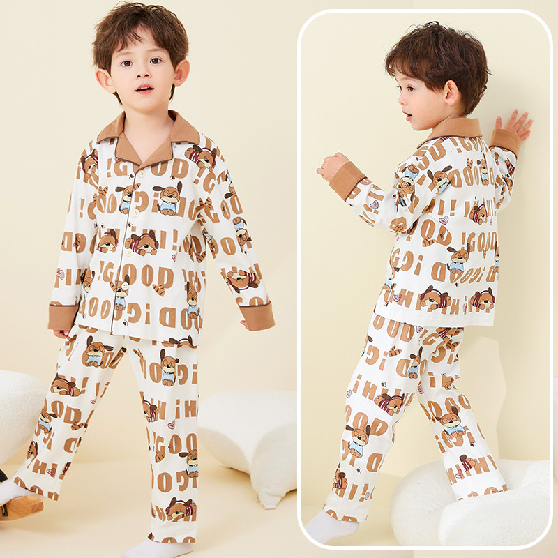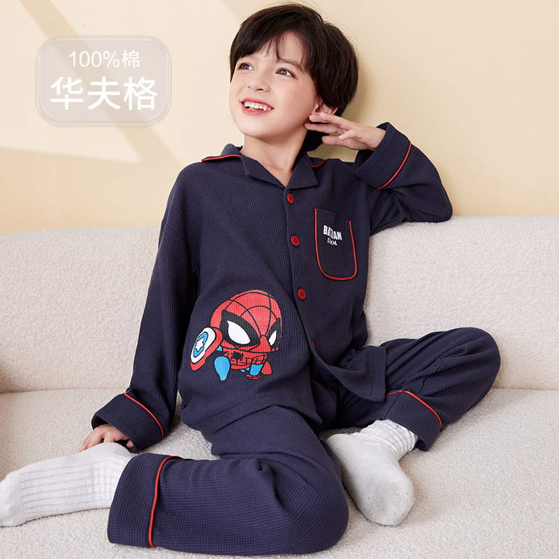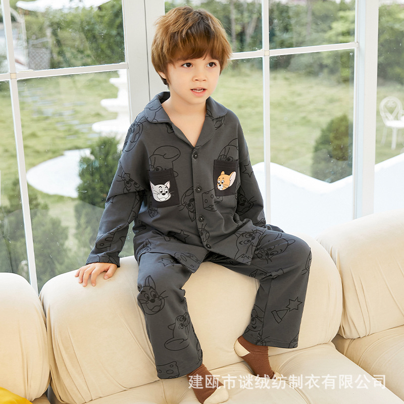 소년 잠옷 봄과 가을 순면 긴팔 리틀 보이 중간 및 큰 어린이 아기 어린이 가을 가정 옷 순면 세트