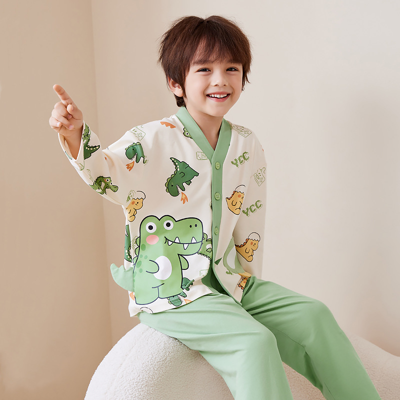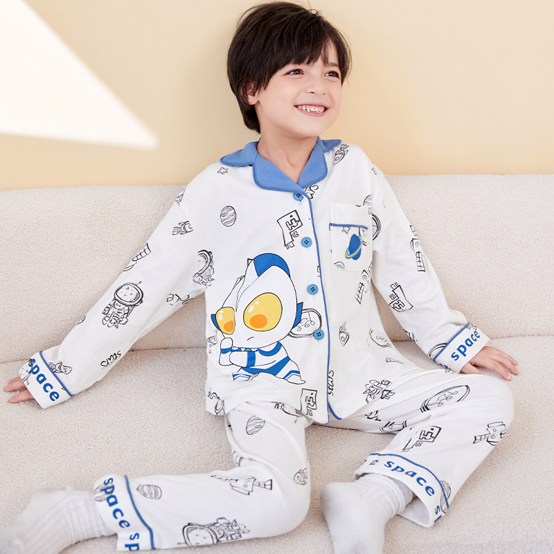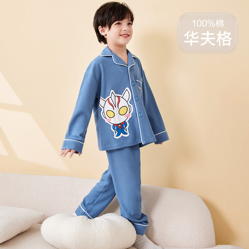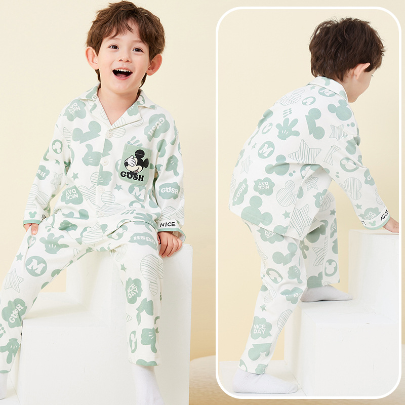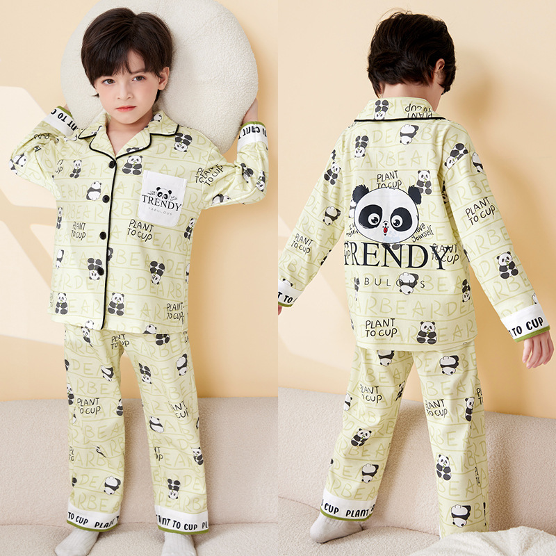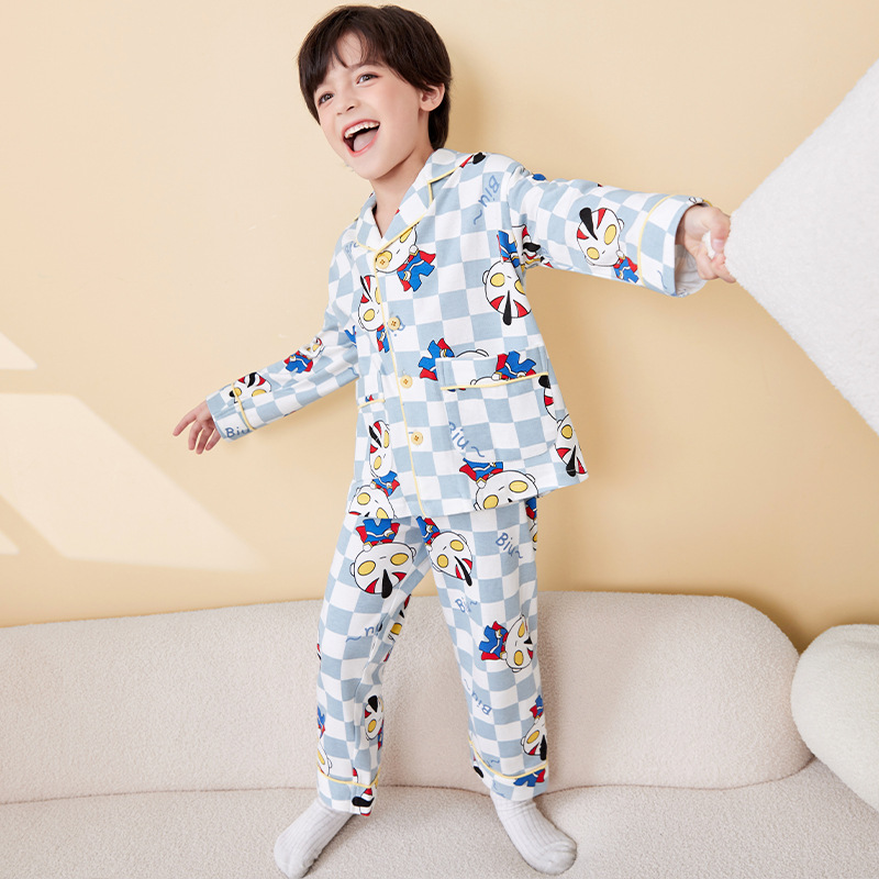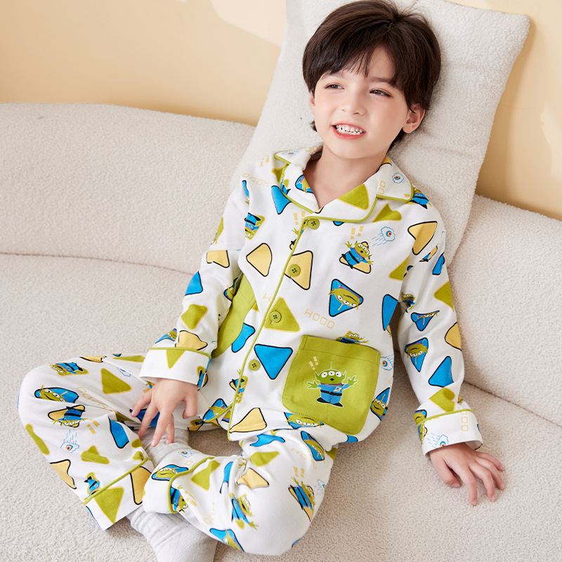 소년 잠옷 봄과 가을 순면 긴팔 리틀 보이 중간 및 큰 어린이 아기 어린이 가을 가정 옷 순면 세트