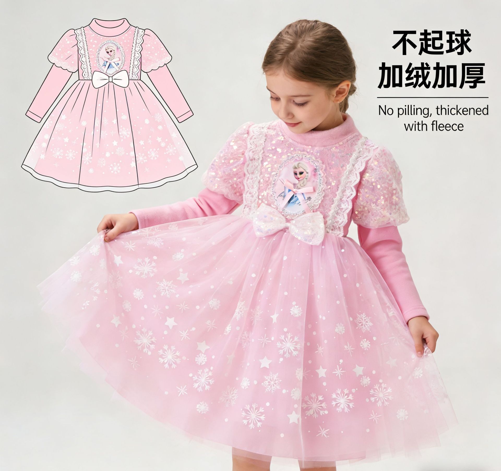 • 겨울 기모 안감 / 핑크 / 공주풍 원피스