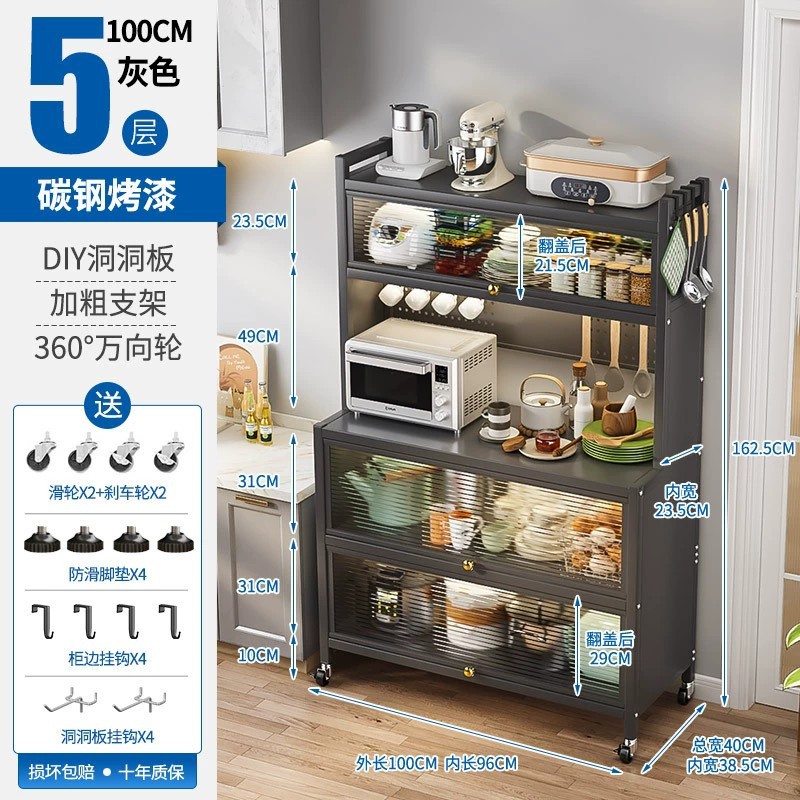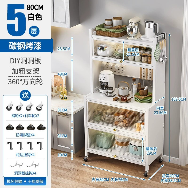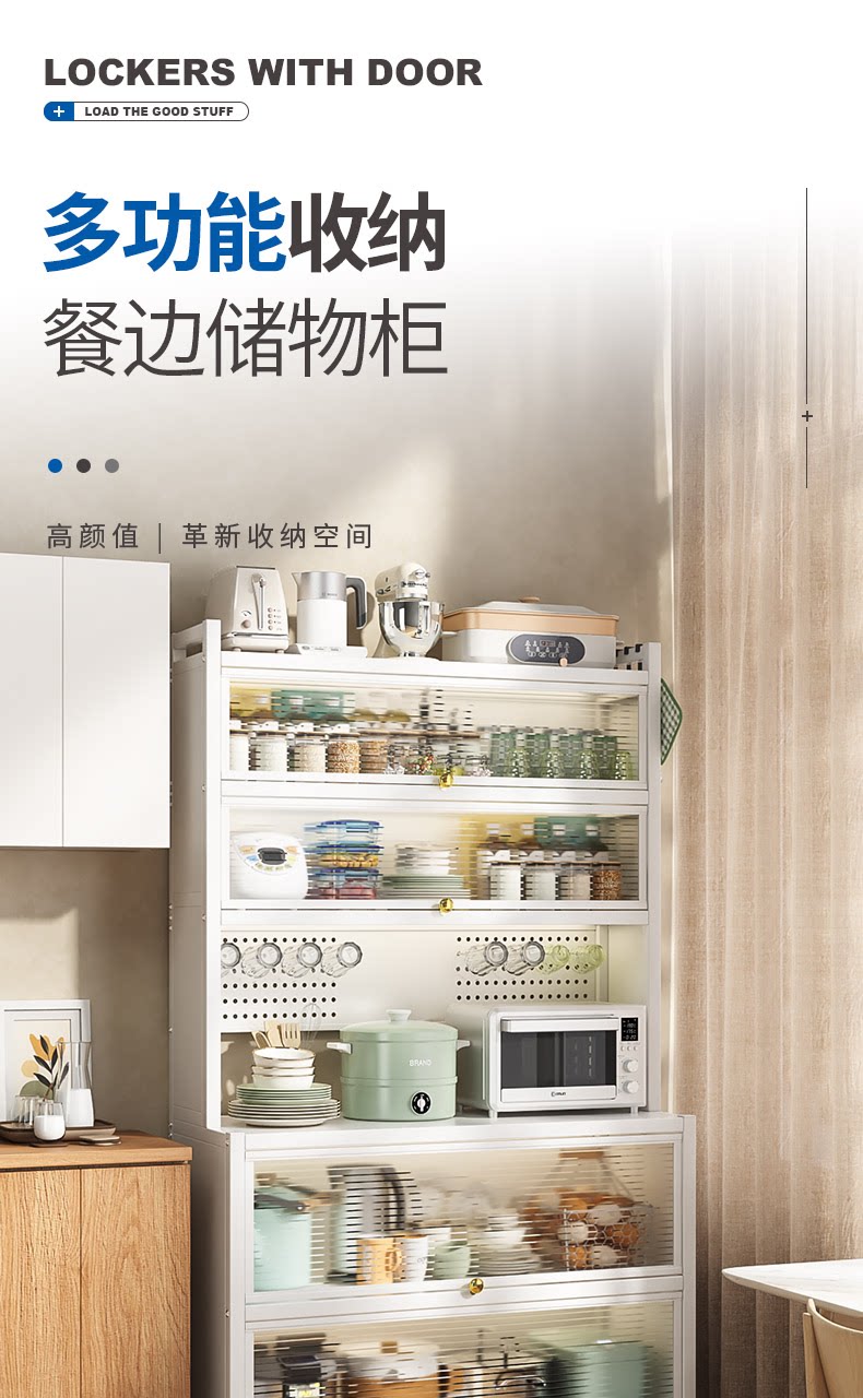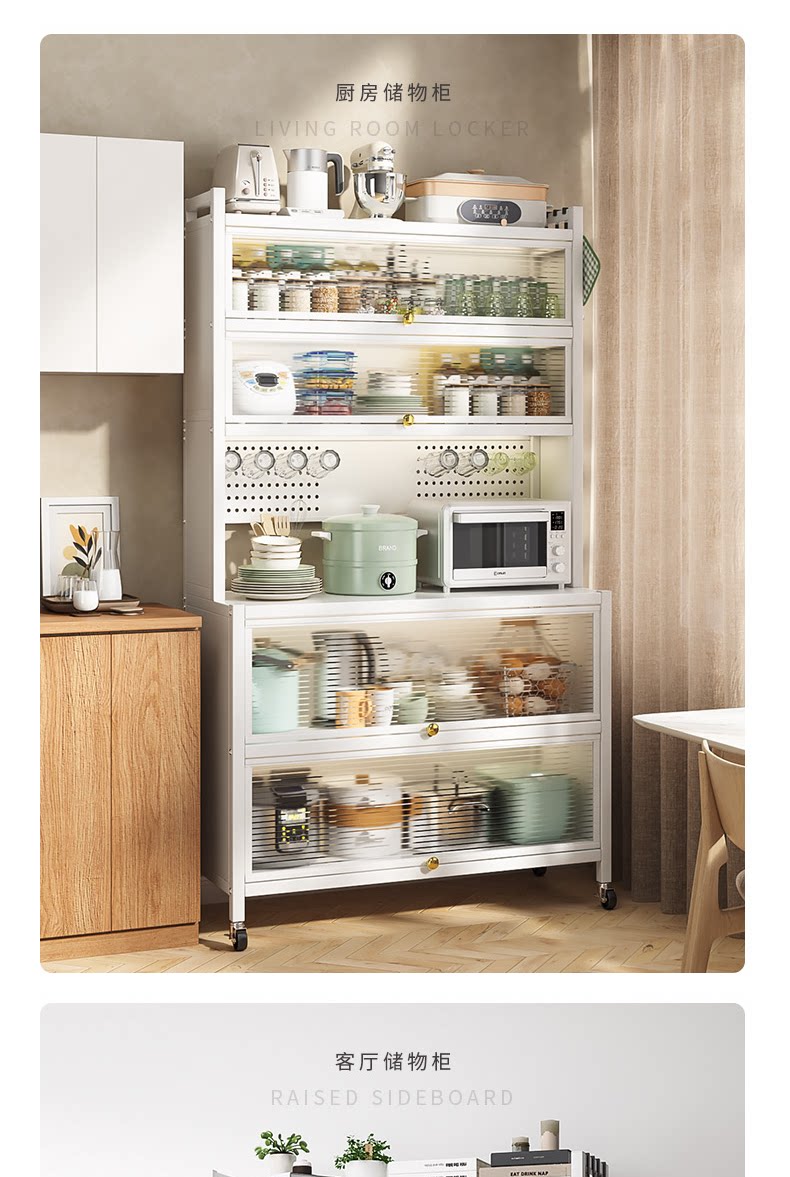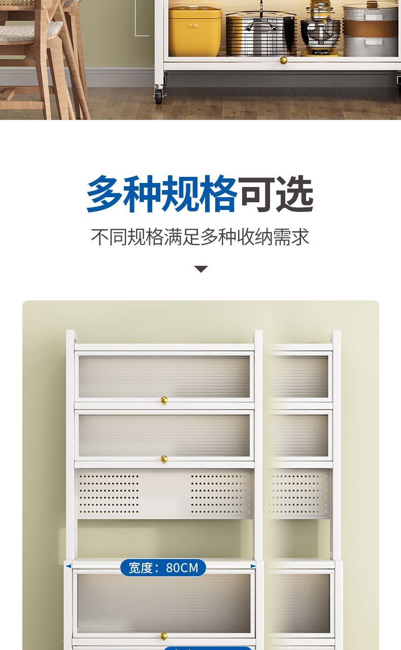 주방 식기 보관 캐비닛 도어가 있는 수납장 전자레인지 냄비 보관용 바닥형 찬장 확장형 선반 캐비닛스토어 가기