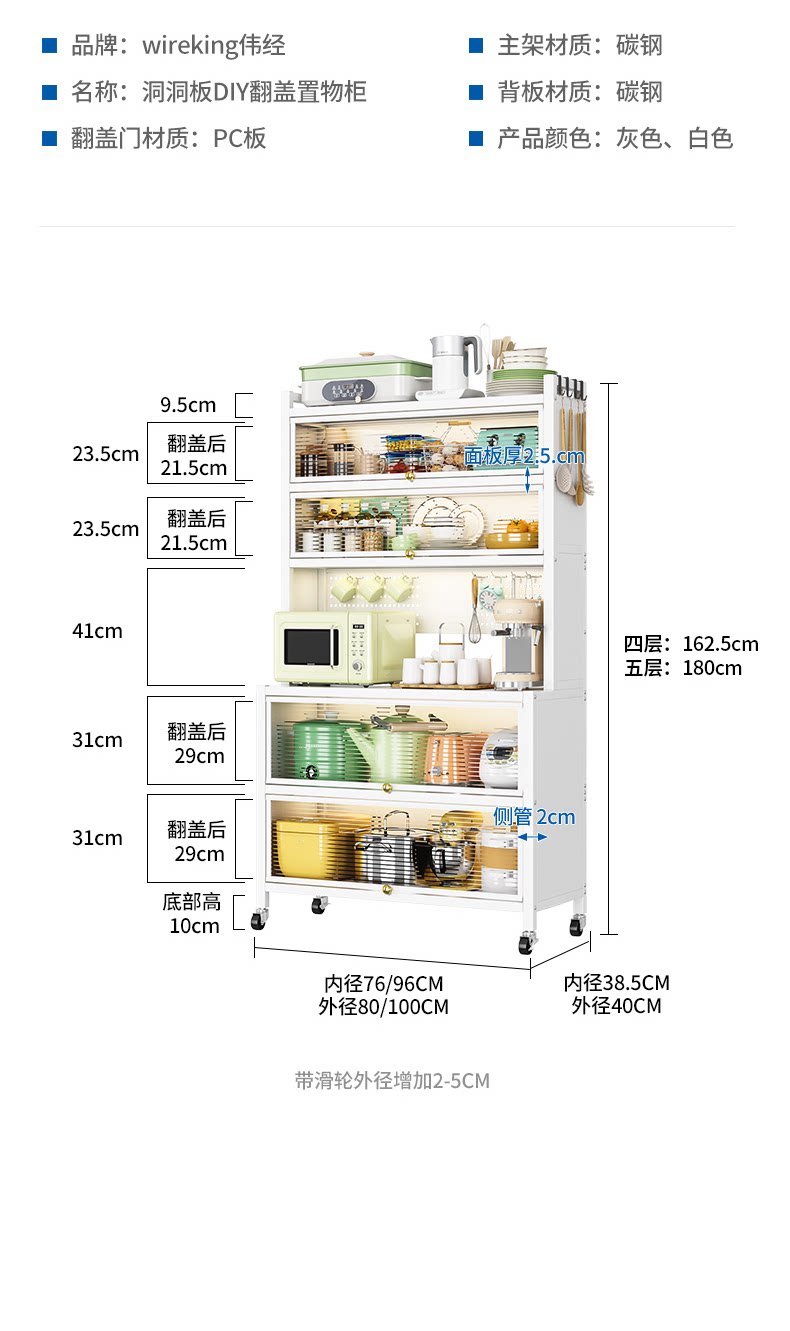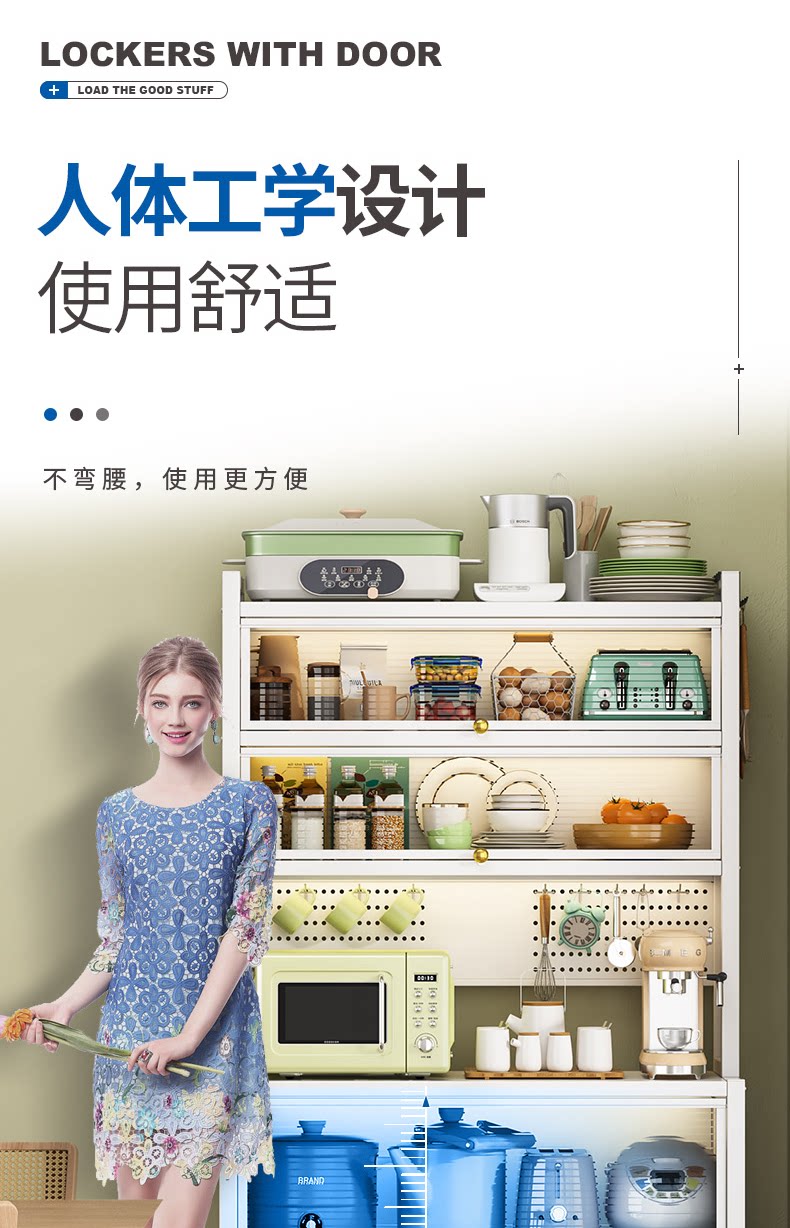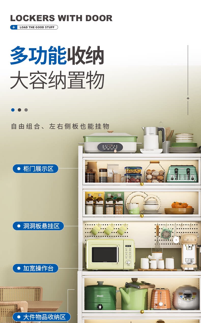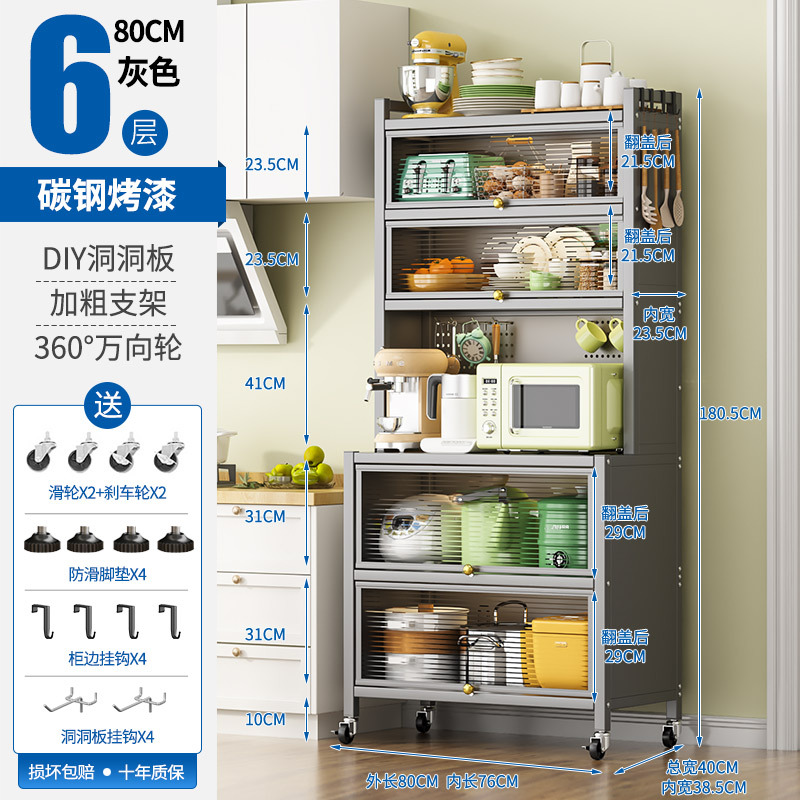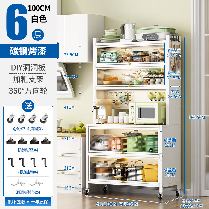 주방 식기 보관 캐비닛 도어가 있는 수납장 전자레인지 냄비 보관용 바닥형 찬장 확장형 선반 캐비닛스토어 가기
