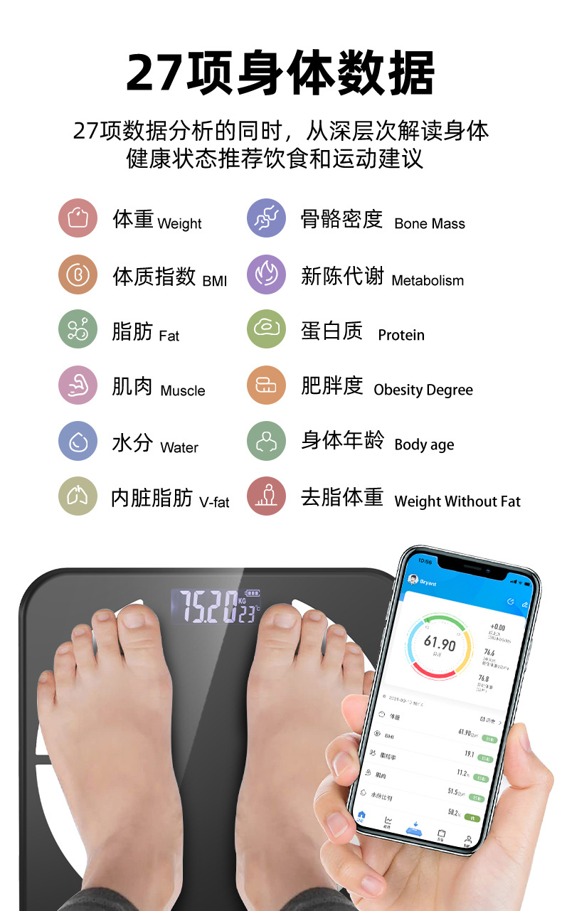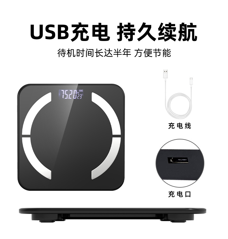 Zengjie 전자 계량 저울 교차 국경 도매 홈 지능형 체지방 스케일 전문 충전 전자 저울 신체 계량 저울