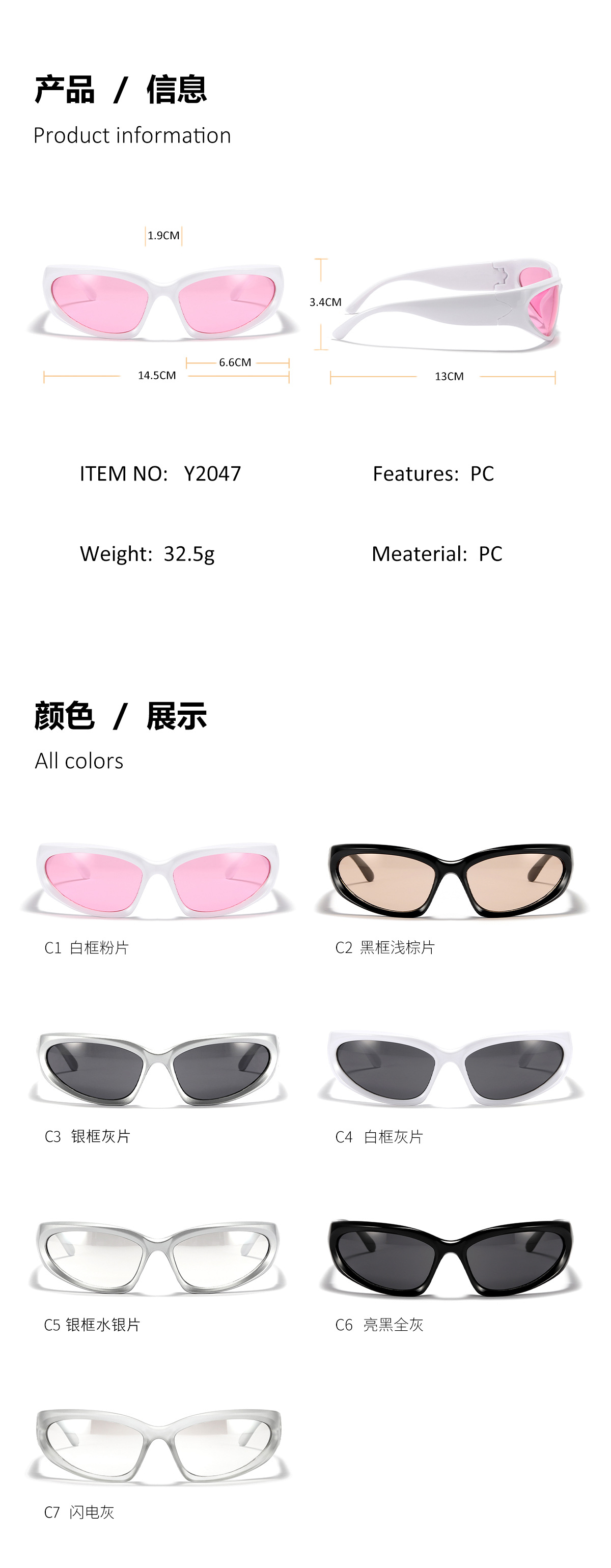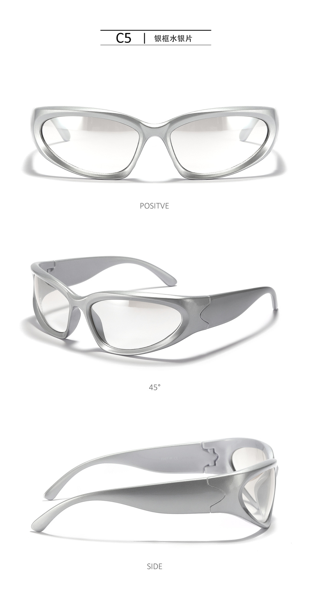Xunge 대형 프레임 안경 Y2047Y2k 미래 스타일 실버 선글라스 여성의 기술 감각 대형 프레임 개인화 된 선글라스