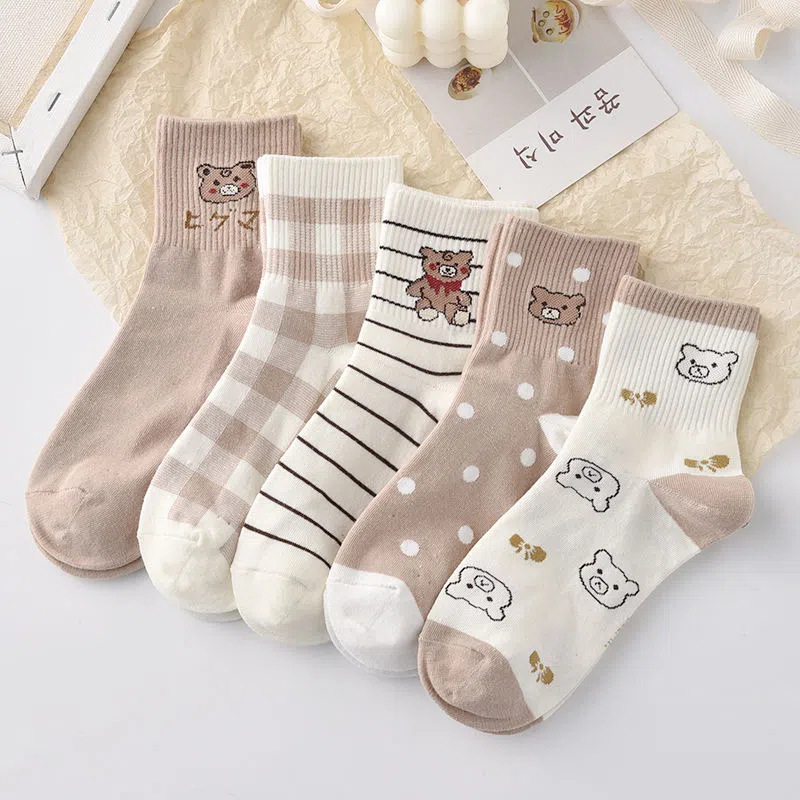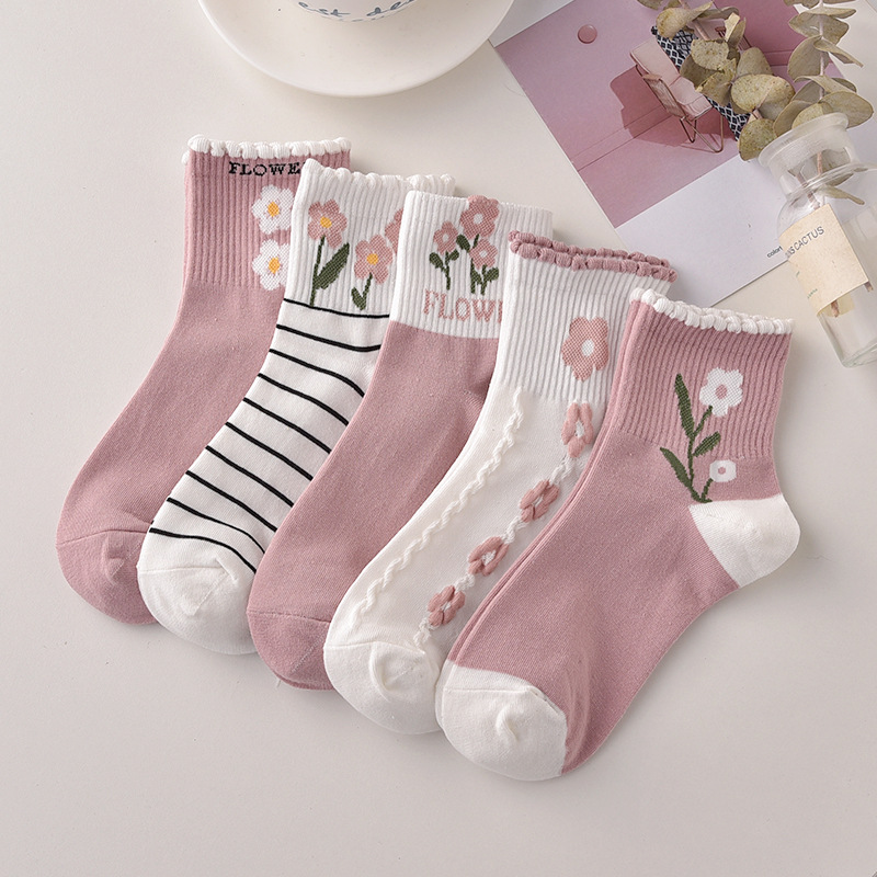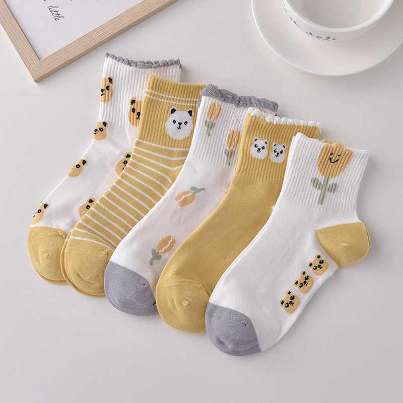 양말 여성용 중간 배럴 가을과 겨울 달콤한 조커 인 조수 튤립 귀여운 스타킹 학업 바람 여성 양말 도매