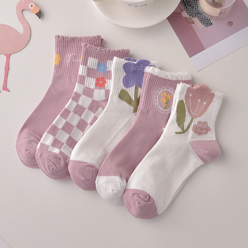 양말 여성용 중간 배럴 가을과 겨울 달콤한 조커 인 조수 튤립 귀여운 스타킹 학업 바람 여성 양말 도매스토어 가기