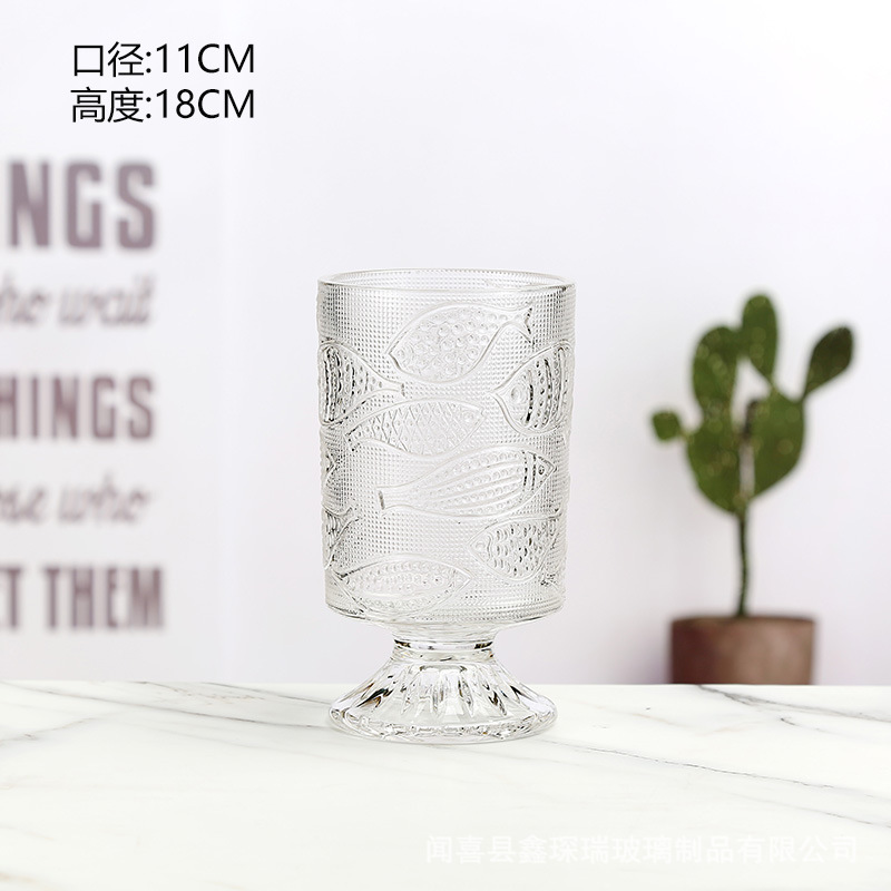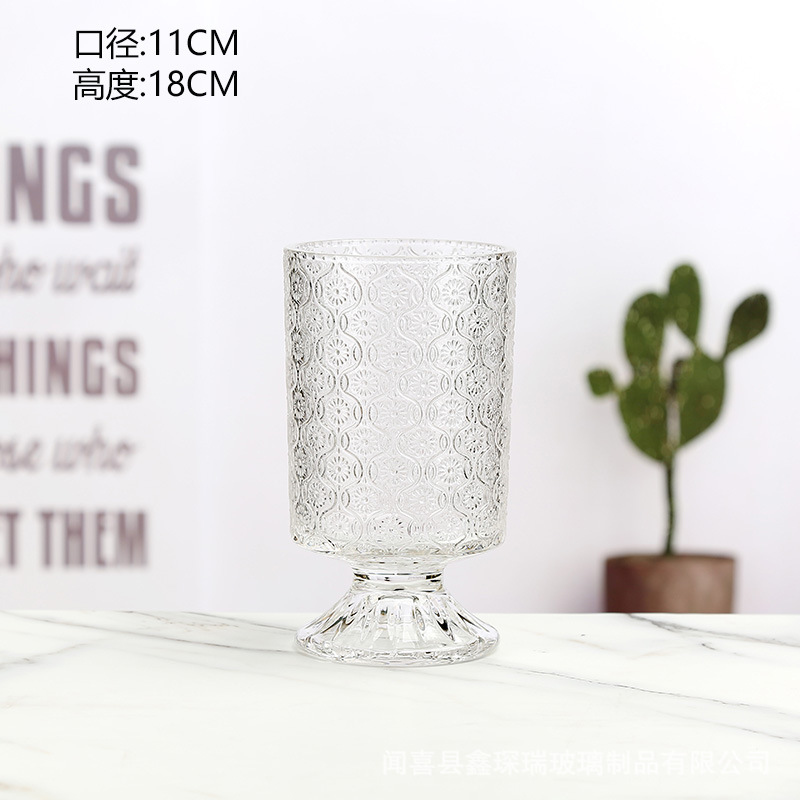 프랑스 복고풍 구호 높은 투명 유리 꽃병 물 제기 꽃 가정용 테이블 장식 머리카락의 세대스토어 가기