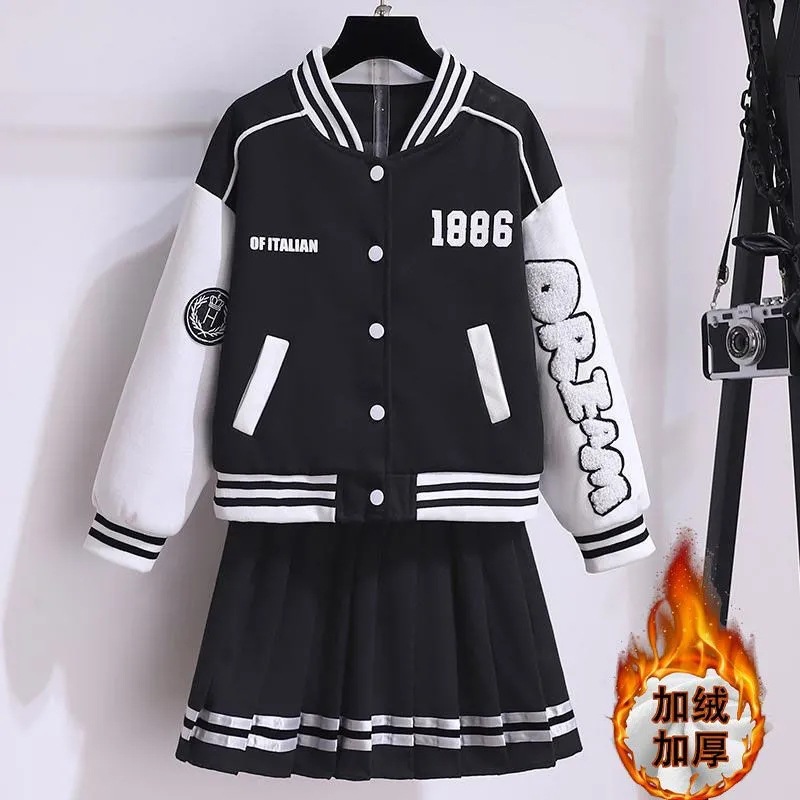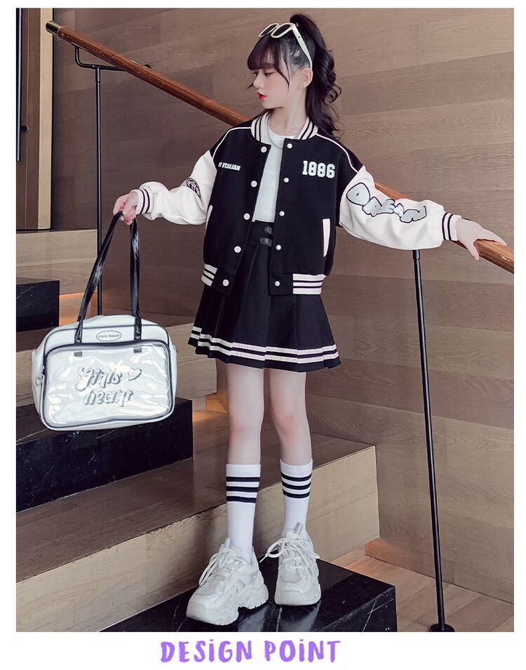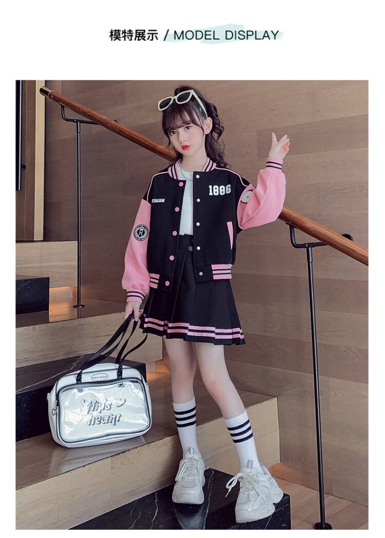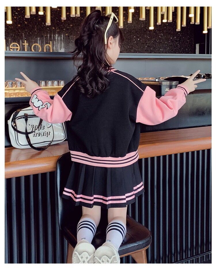 여아 가을 스포츠 세트 2025 신상 인기 중대형 어린이 야구복 재킷 세련된 플리츠 스커트 투피스 세트