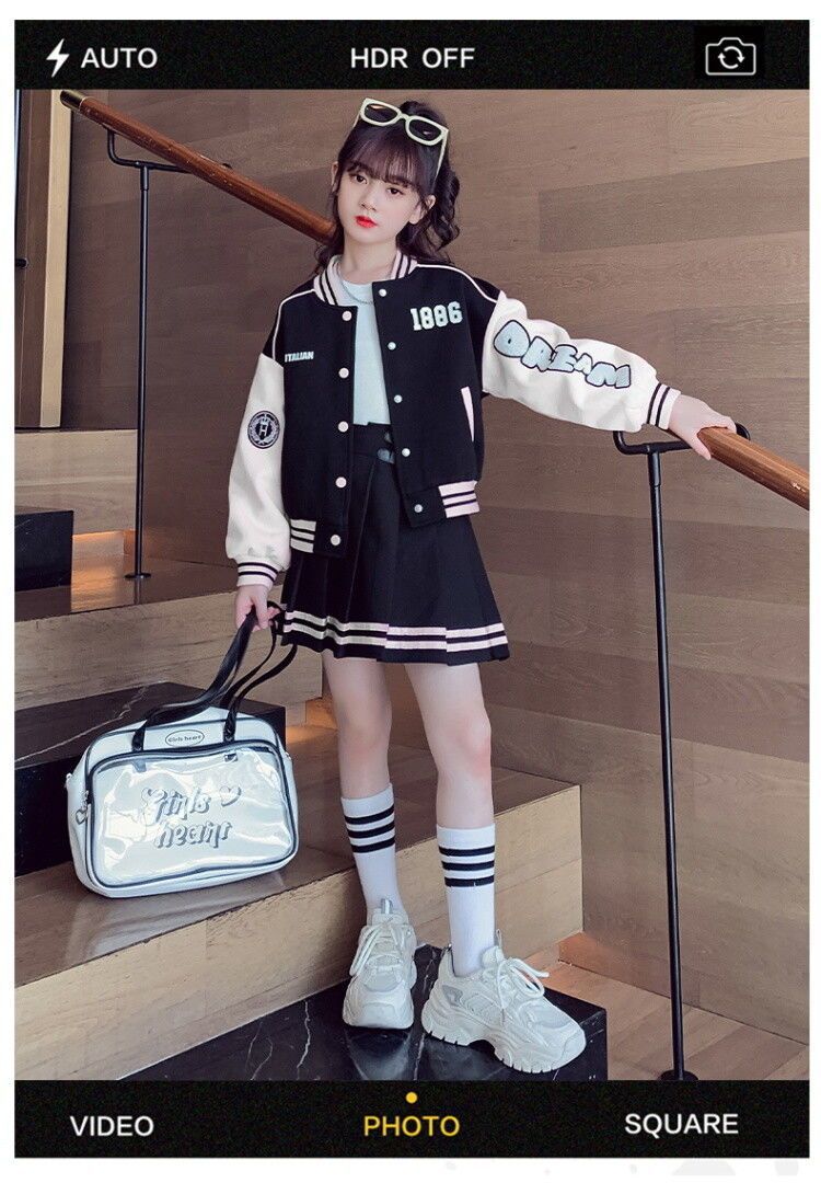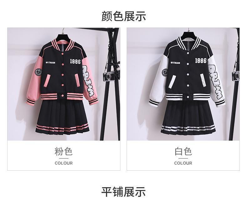 여아 가을 스포츠 세트 2025 신상 인기 중대형 어린이 야구복 재킷 세련된 플리츠 스커트 투피스 세트스토어 가기