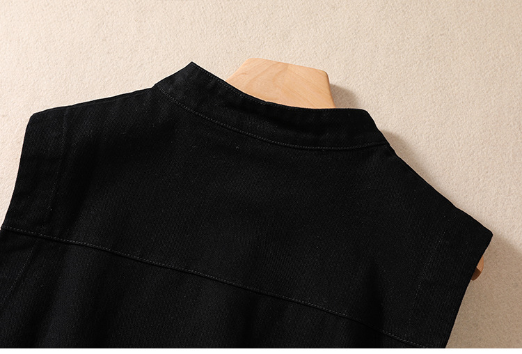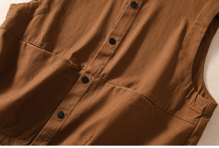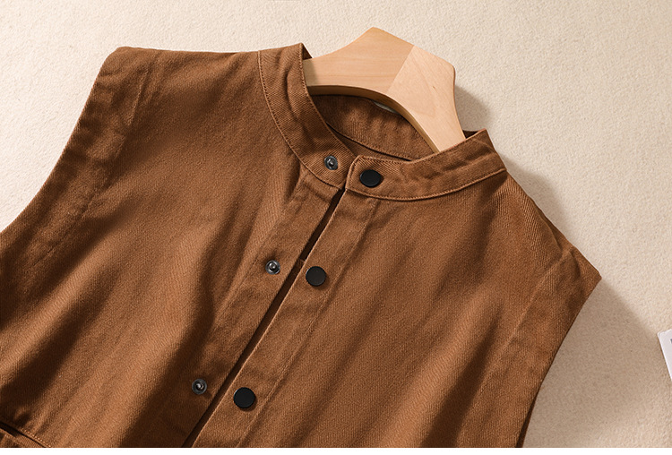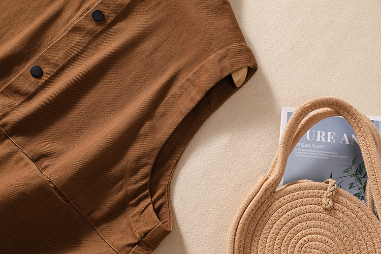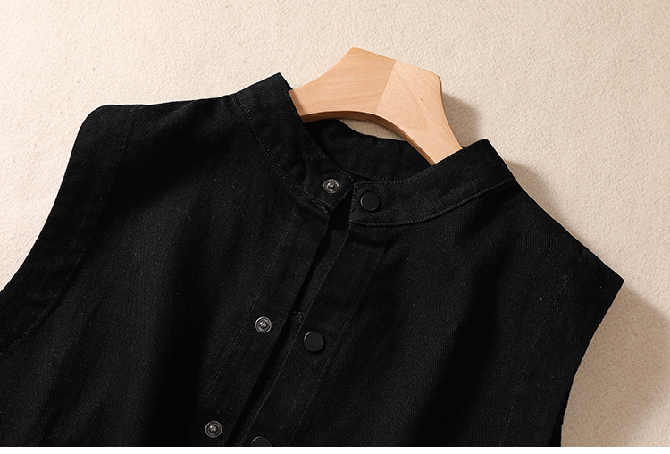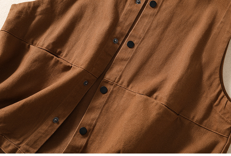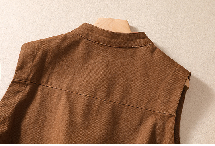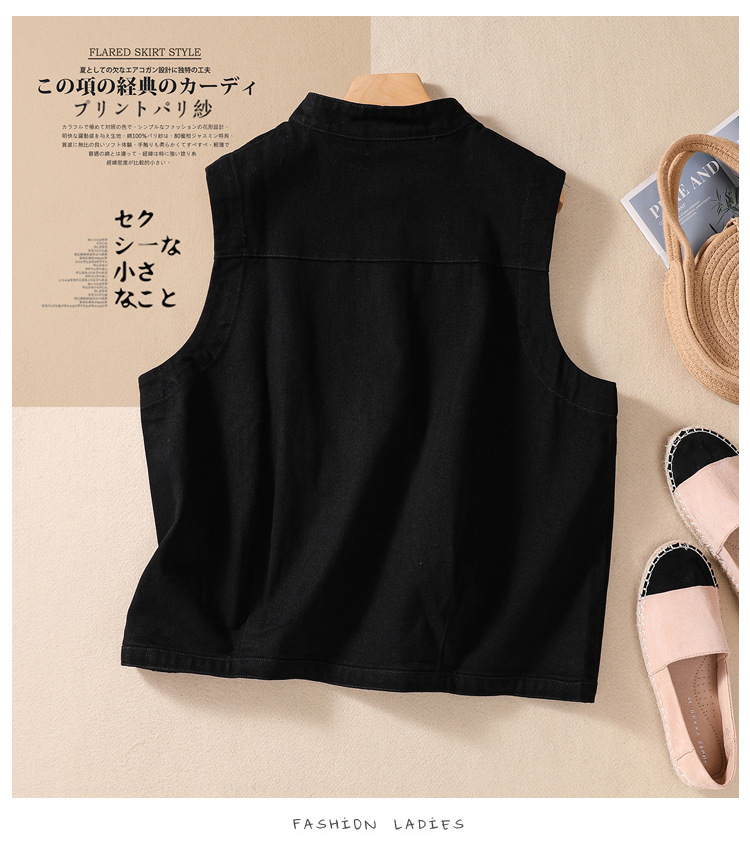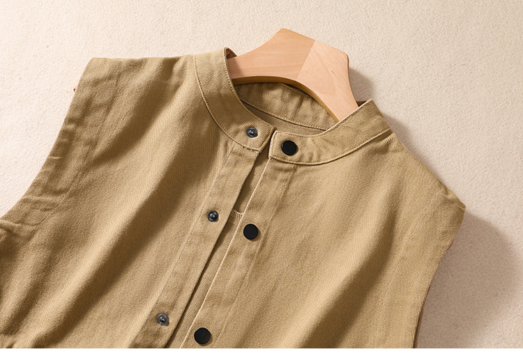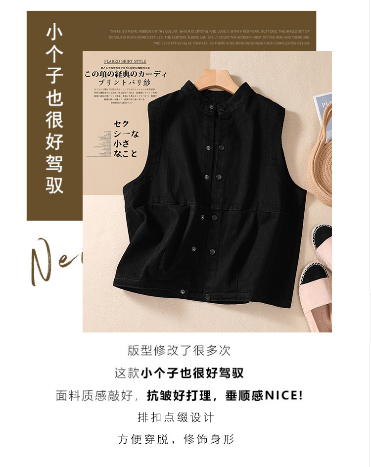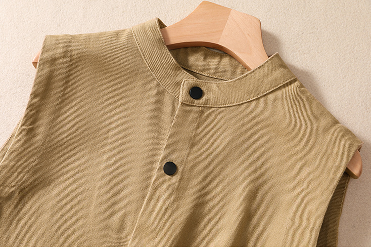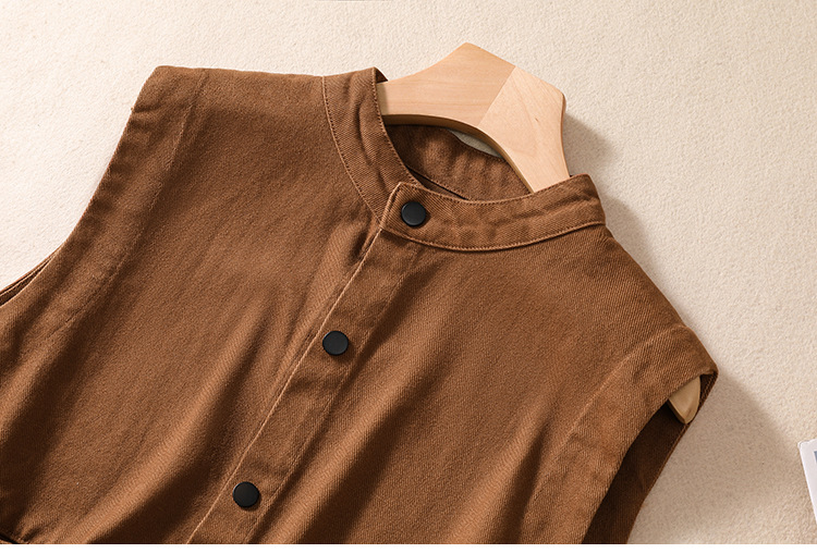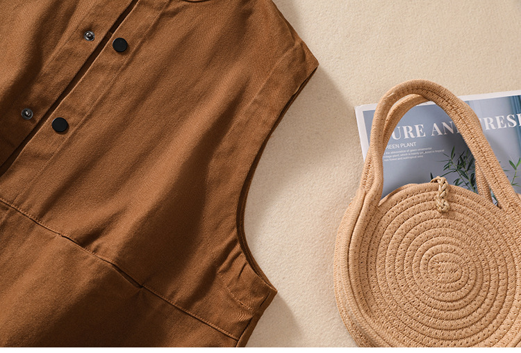 봄과 여름 2024 새로운 빈티지 트윌 코튼 조끼 느슨한 짧은 민소매 카디건 우아한 조끼 재킷