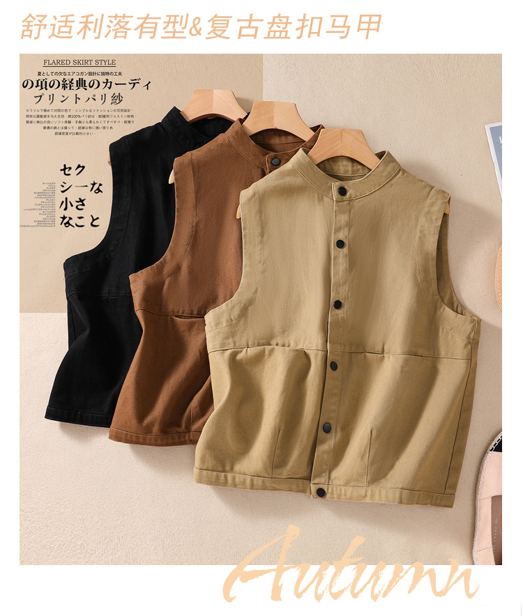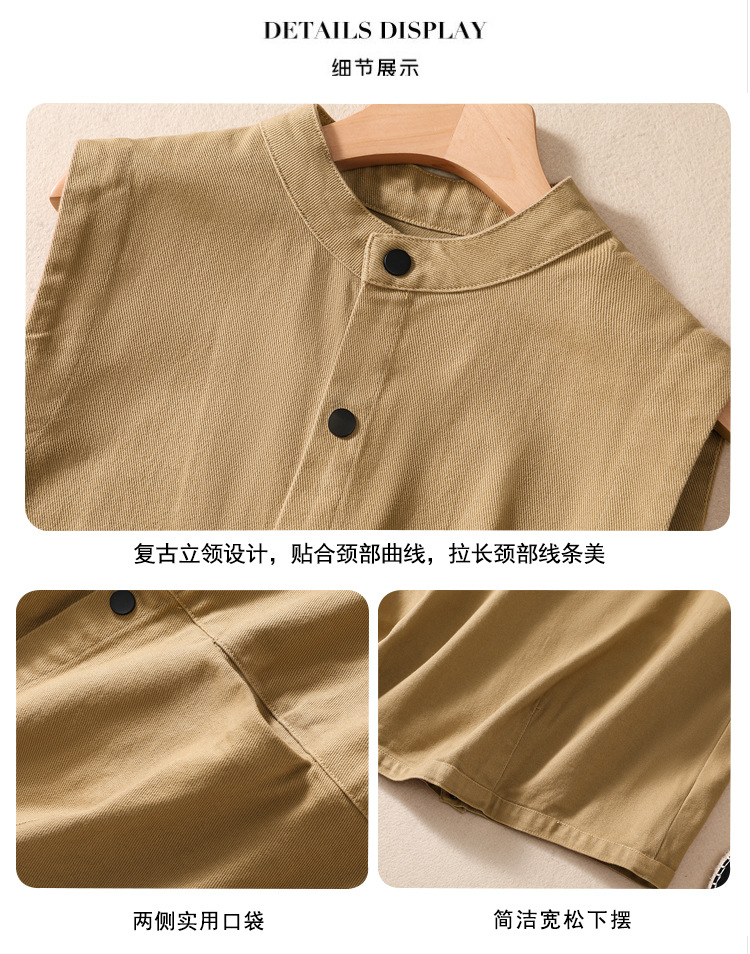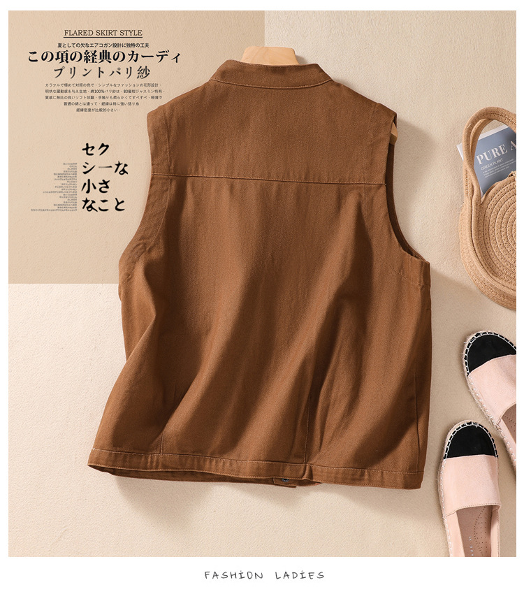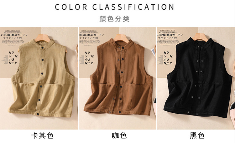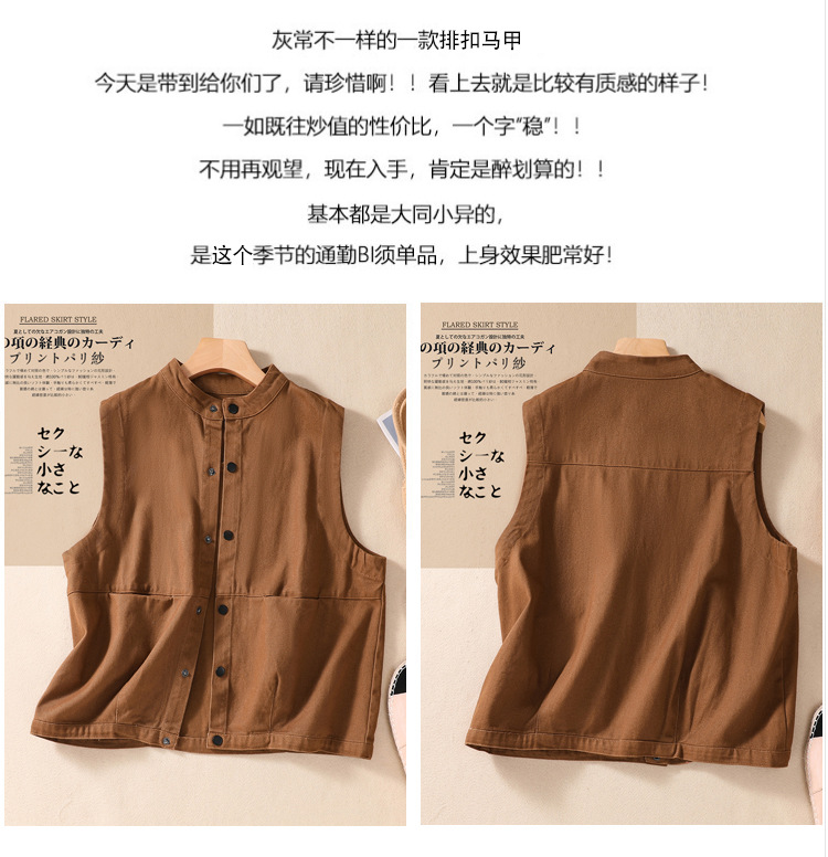 봄과 여름 2024 새로운 빈티지 트윌 코튼 조끼 느슨한 짧은 민소매 카디건 우아한 조끼 재킷스토어 가기
