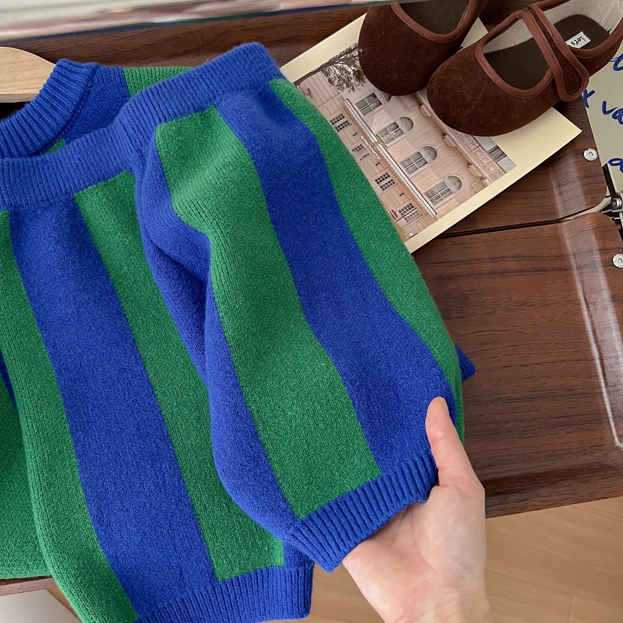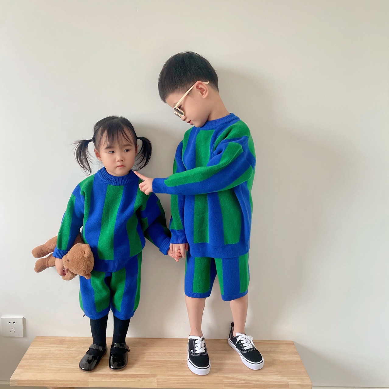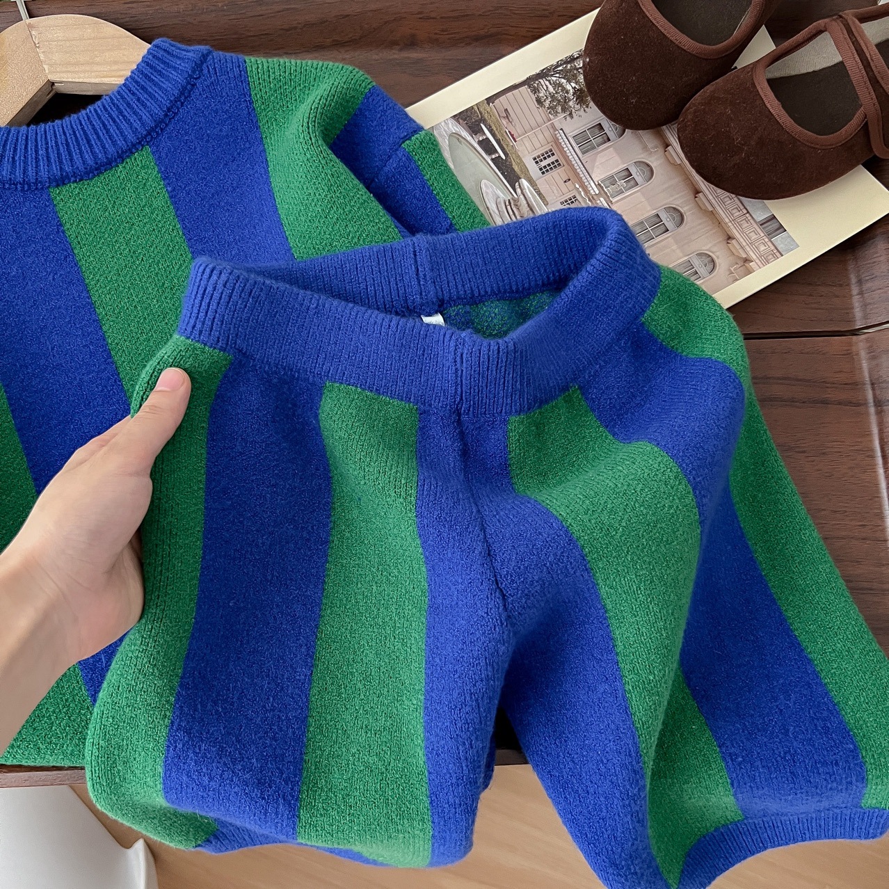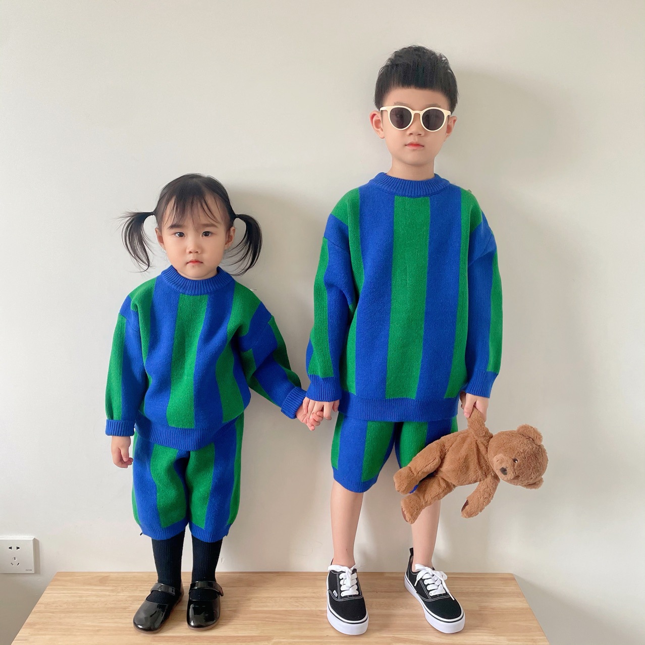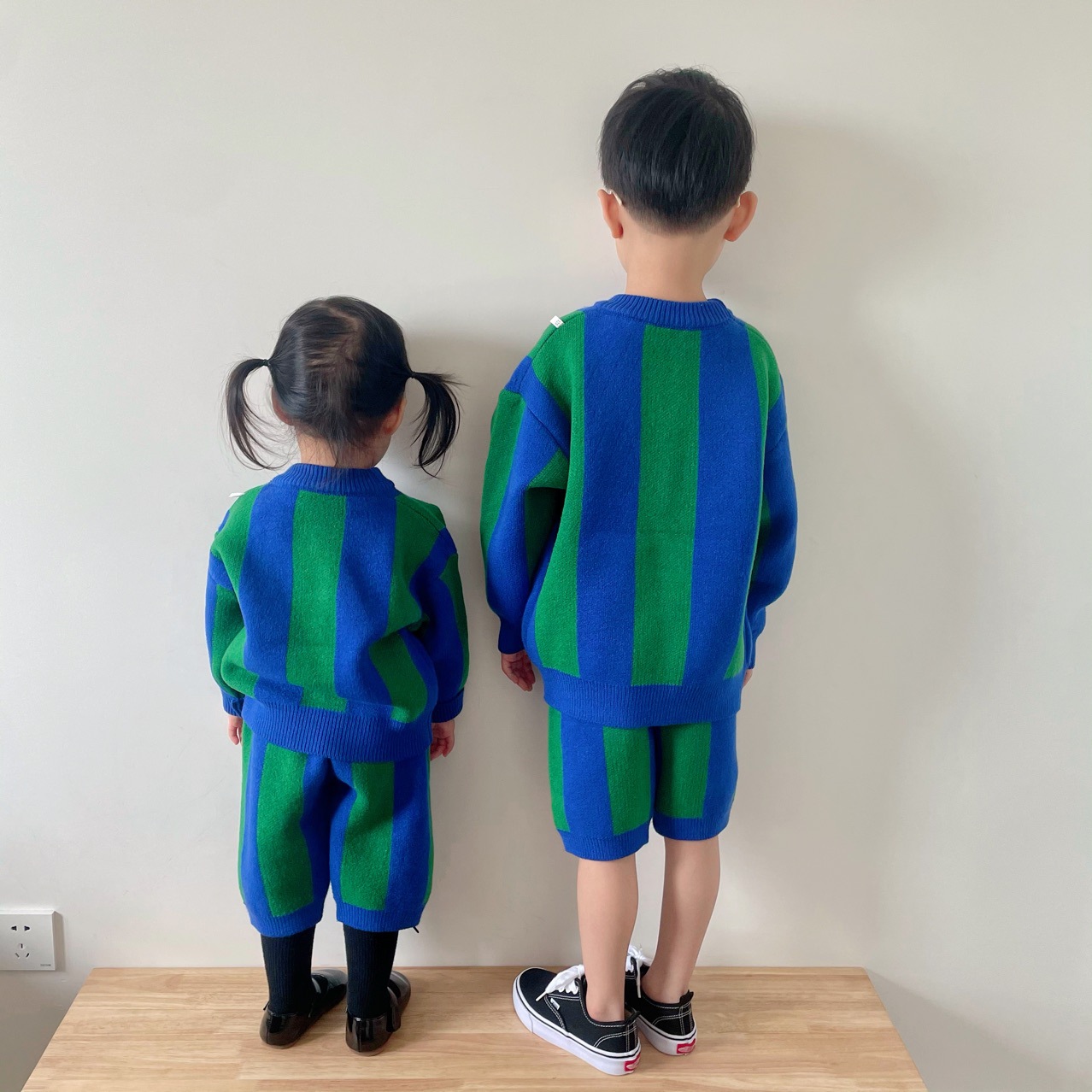 2025 가을 신상 아동복 ins 남녀 아동 스트라이프 스웨터 어린이 배색 니트웨어 아기 상의+반바지스토어 가기