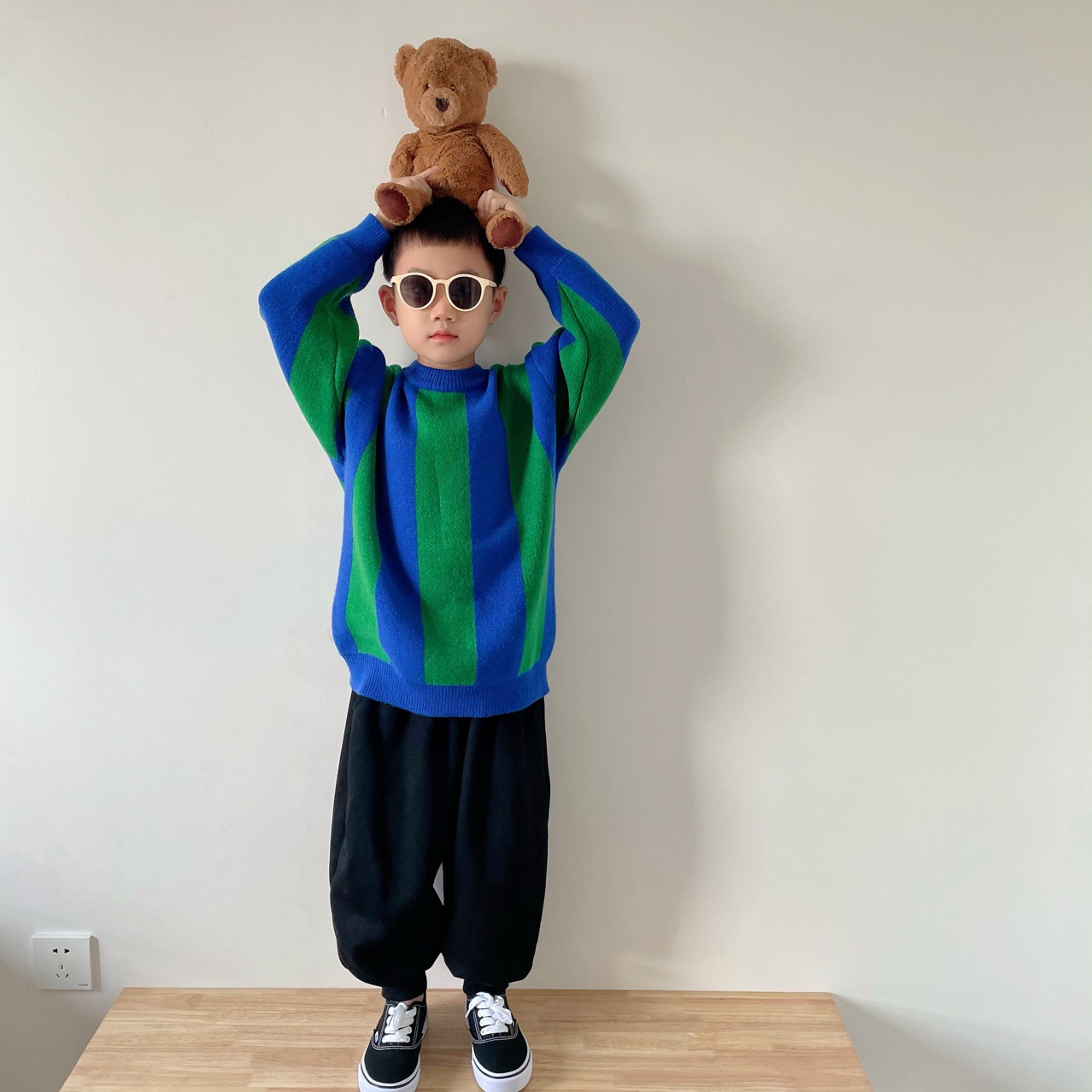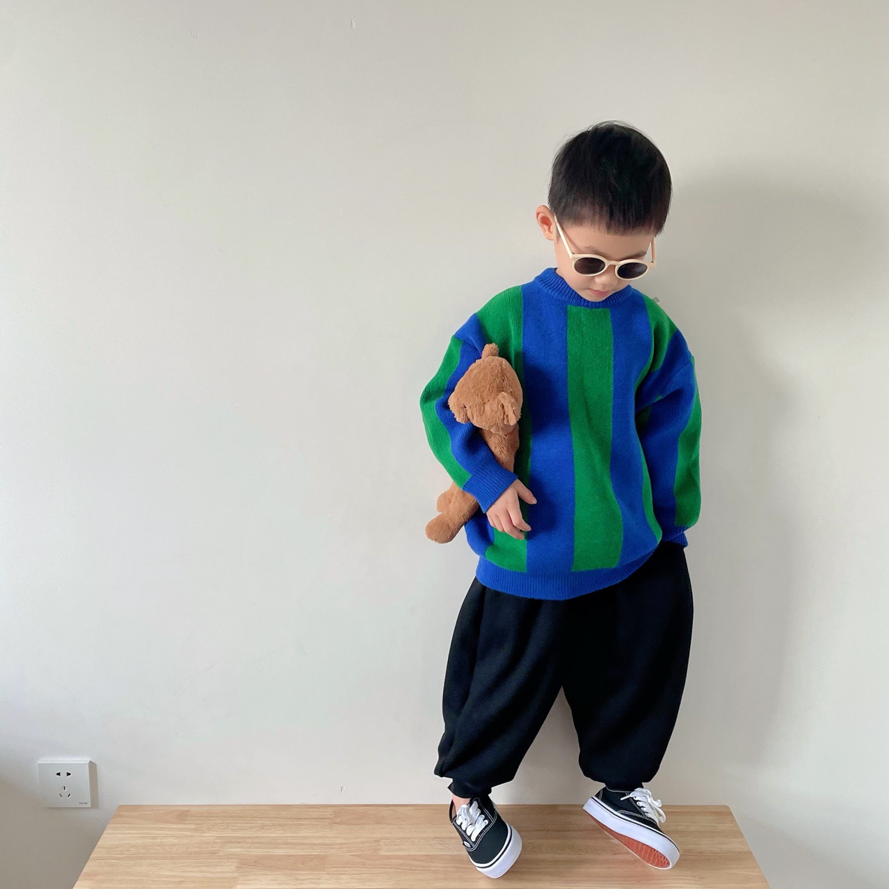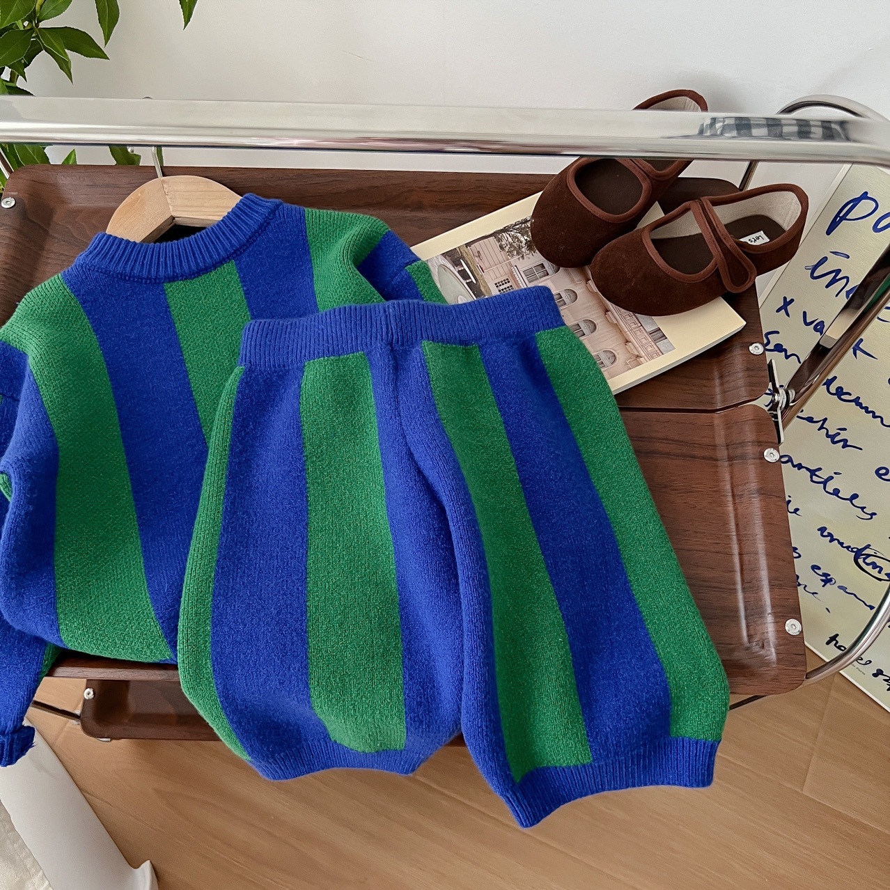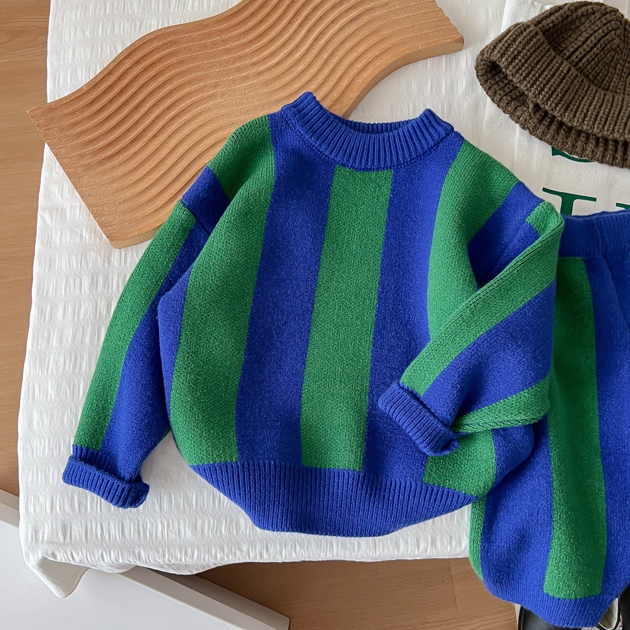 2025 가을 신상 아동복 ins 남녀 아동 스트라이프 스웨터 어린이 배색 니트웨어 아기 상의+반바지