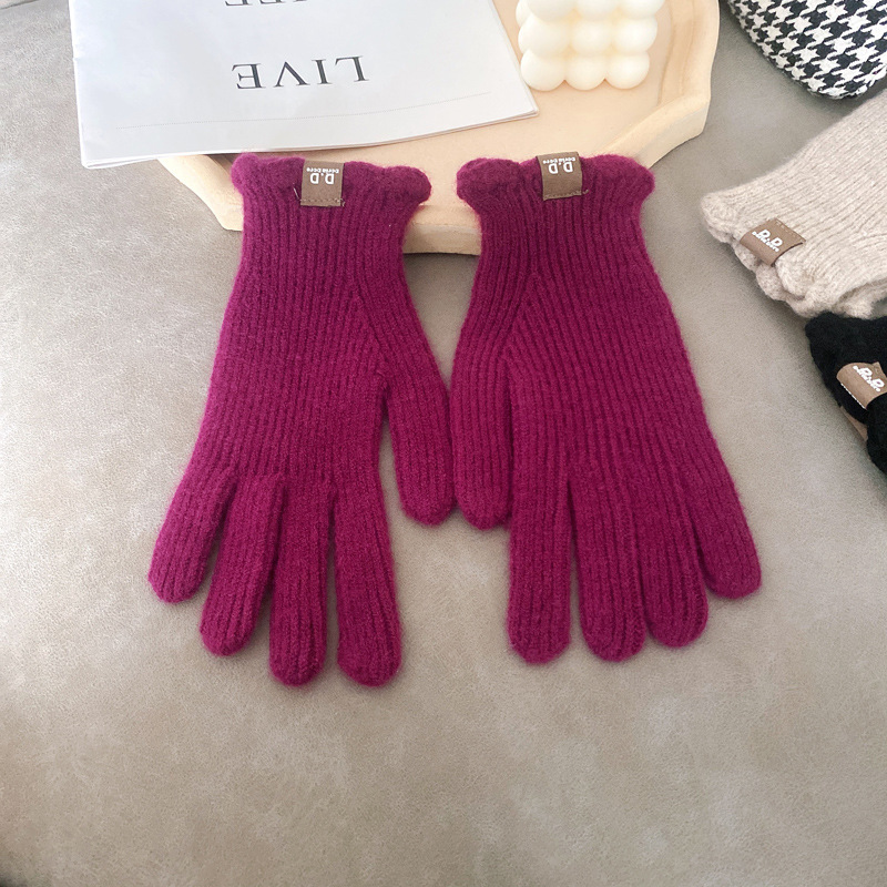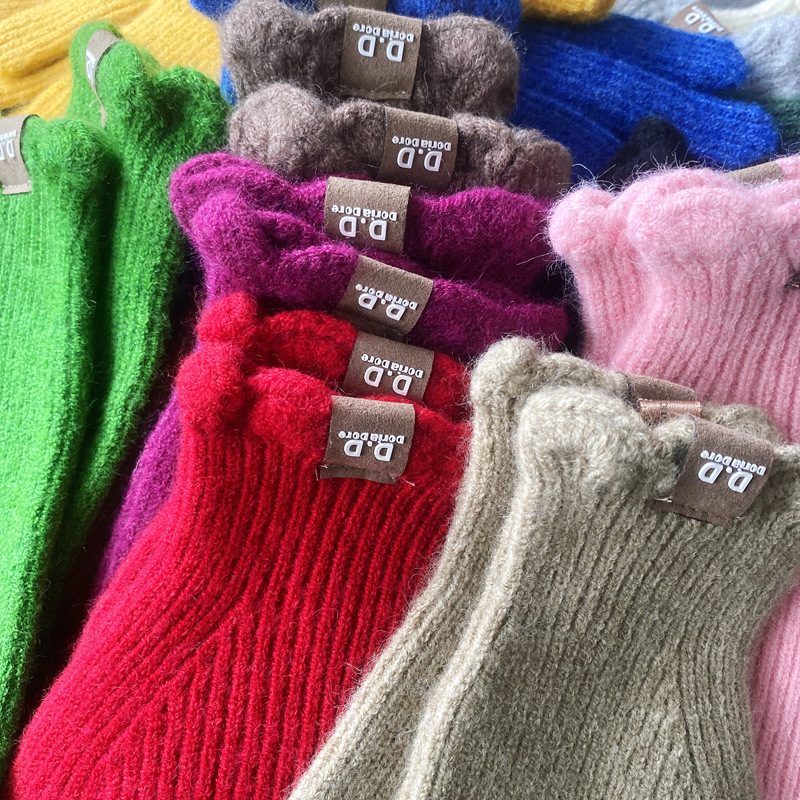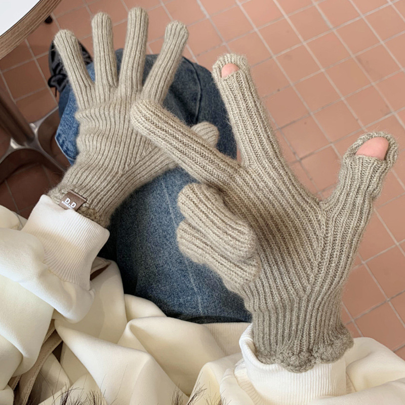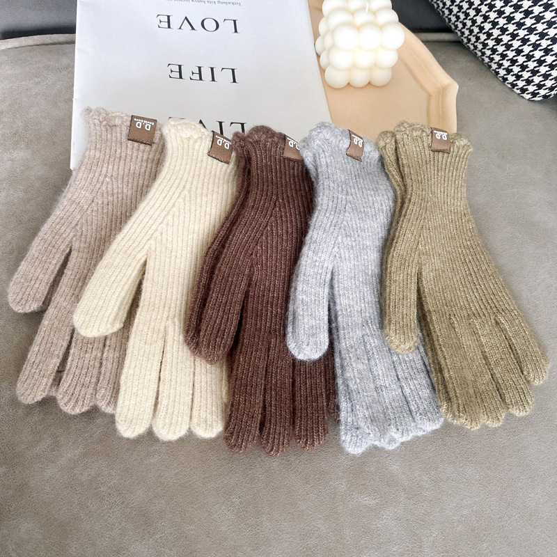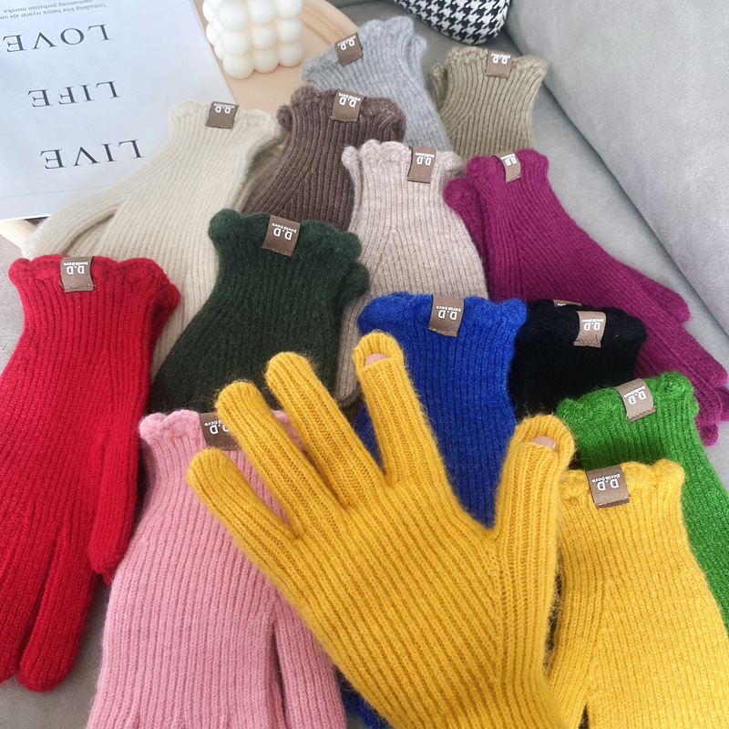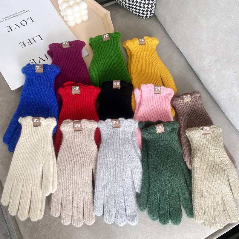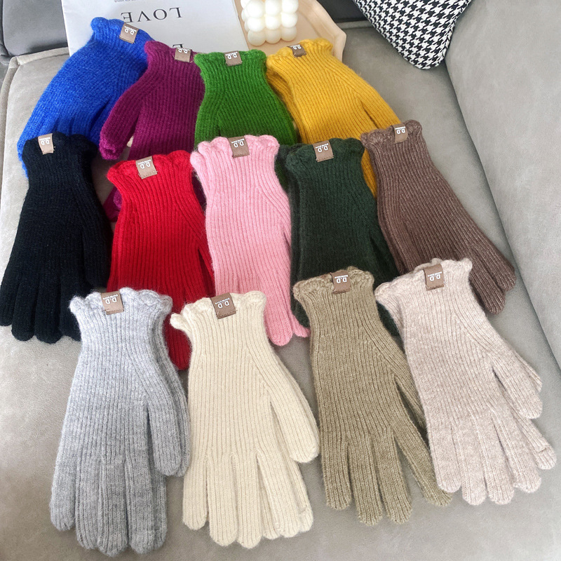 단색 모직 니트 장갑 여성용 가을 겨울용 인스 스타일 손가락별 양모 혼방 학생용 보온 자전거용 방한 인스 스타일