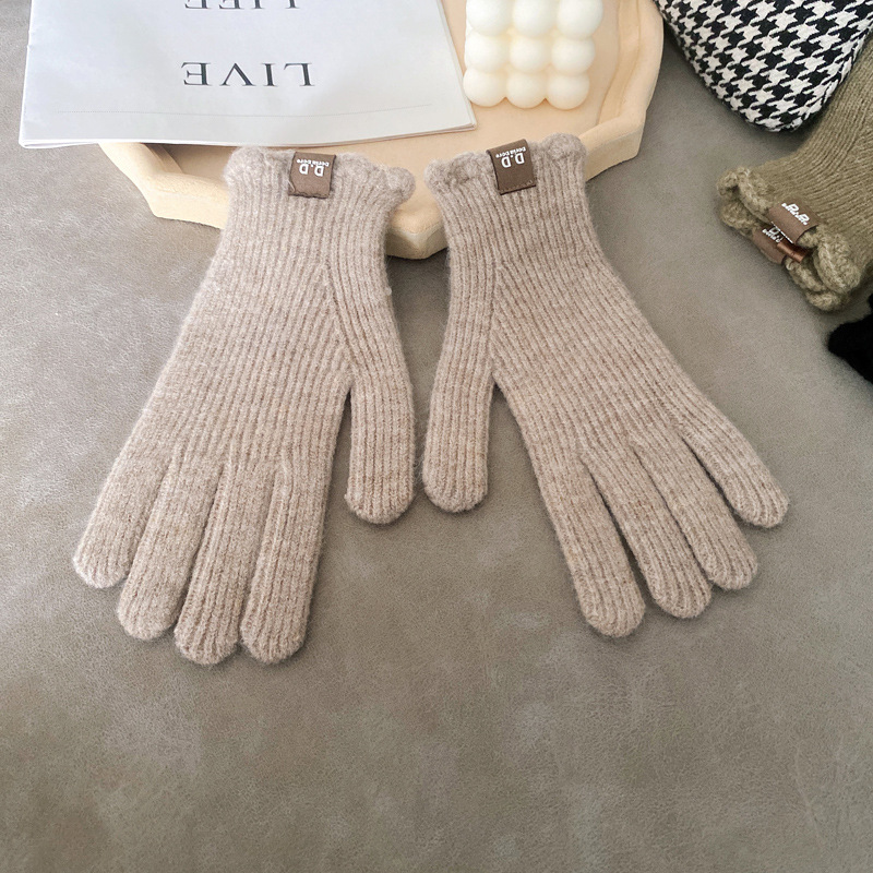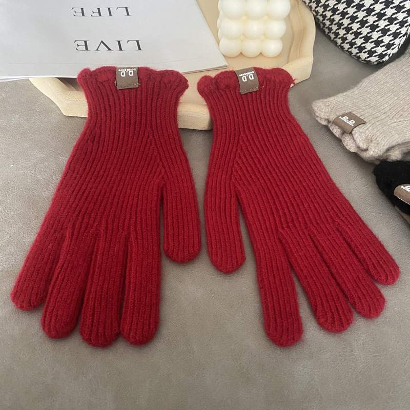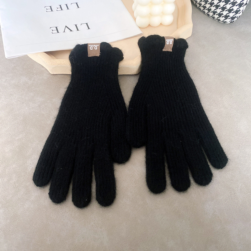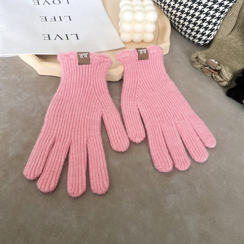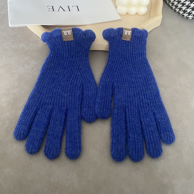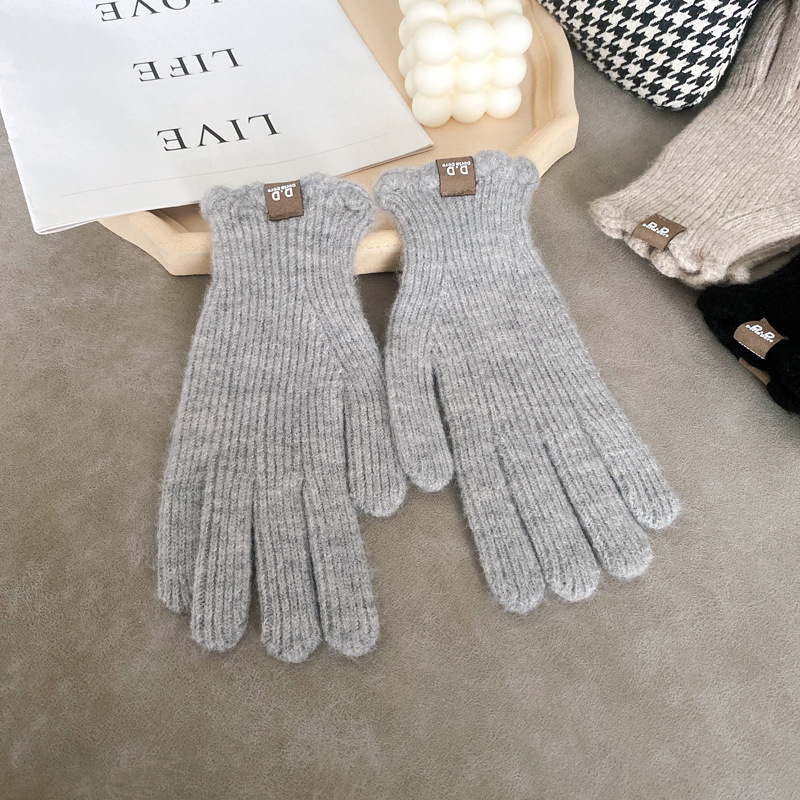 단색 모직 니트 장갑 여성용 가을 겨울용 인스 스타일 손가락별 양모 혼방 학생용 보온 자전거용 방한 인스 스타일