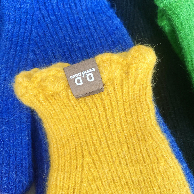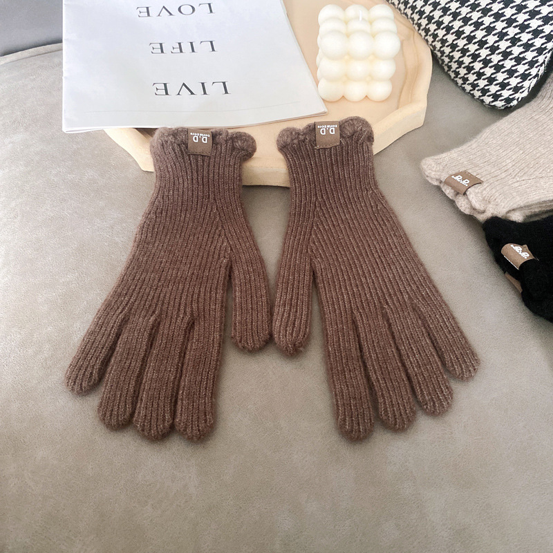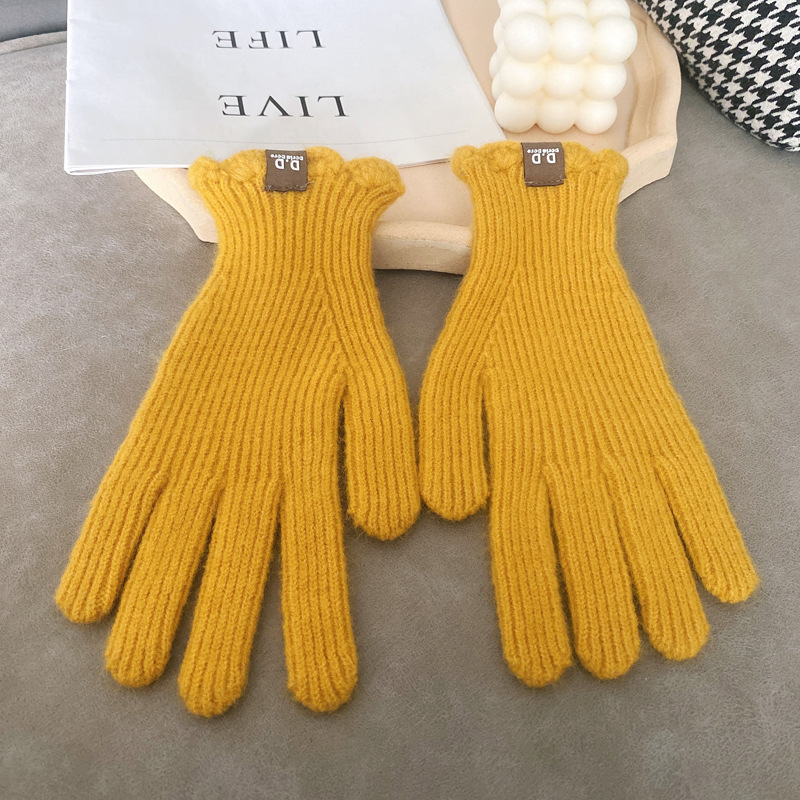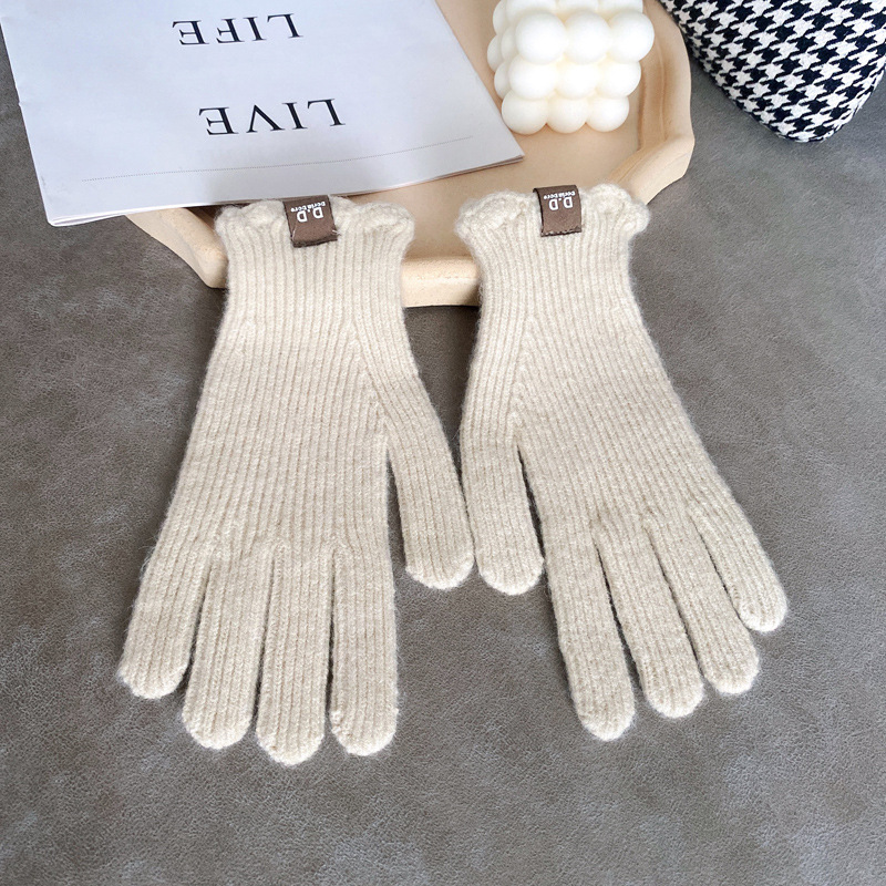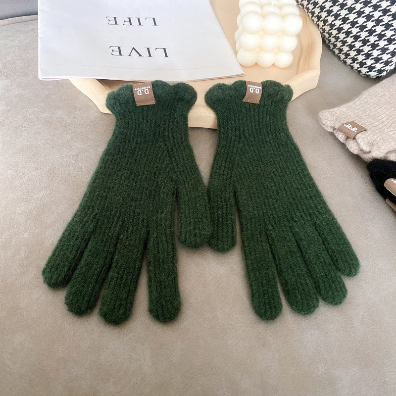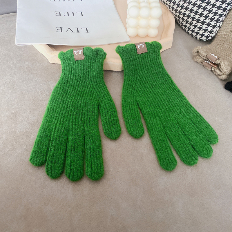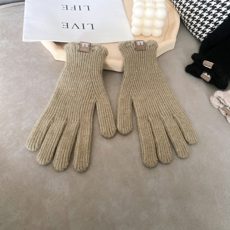 단색 모직 니트 장갑 여성용 가을 겨울용 인스 스타일 손가락별 양모 혼방 학생용 보온 자전거용 방한 인스 스타일