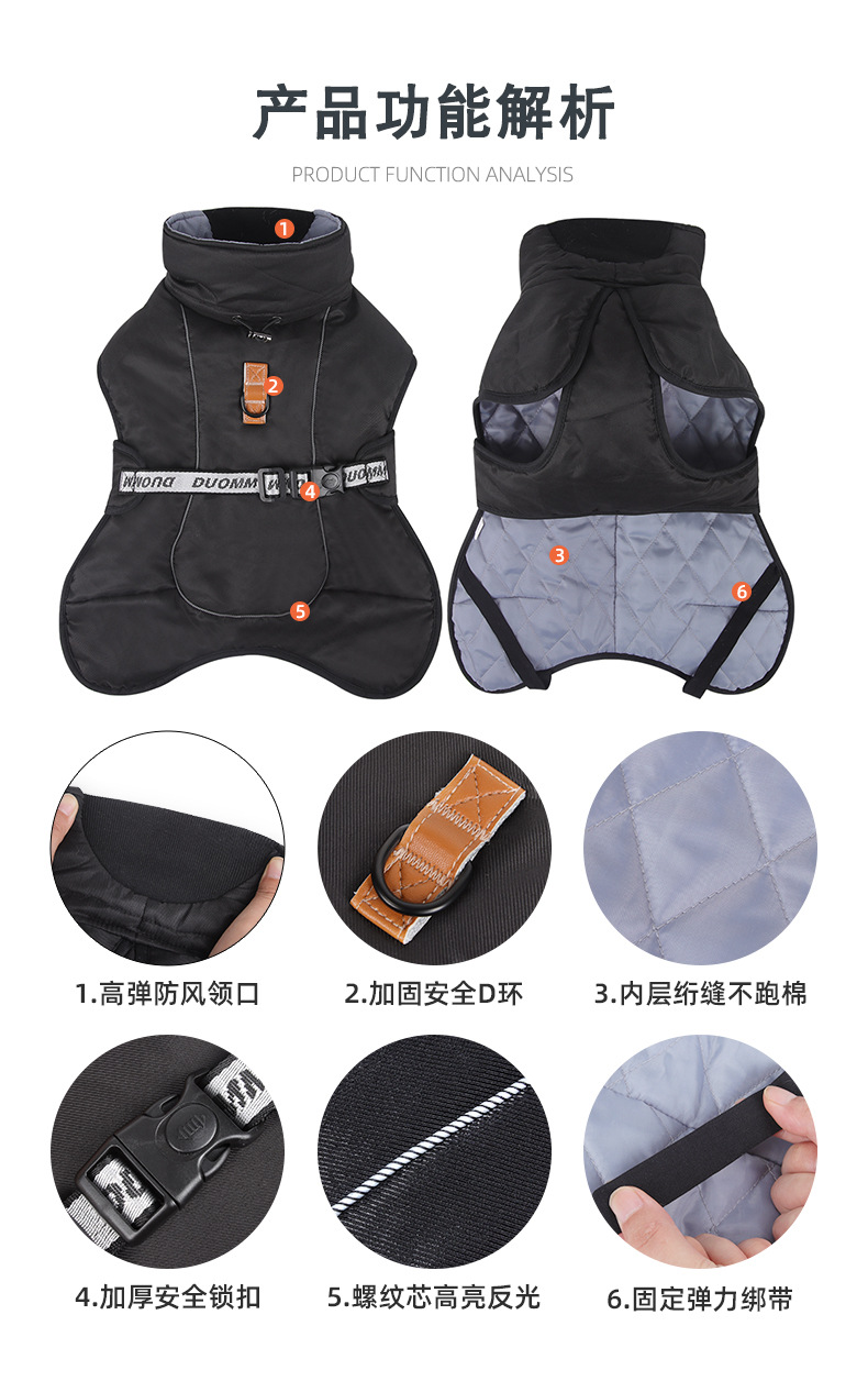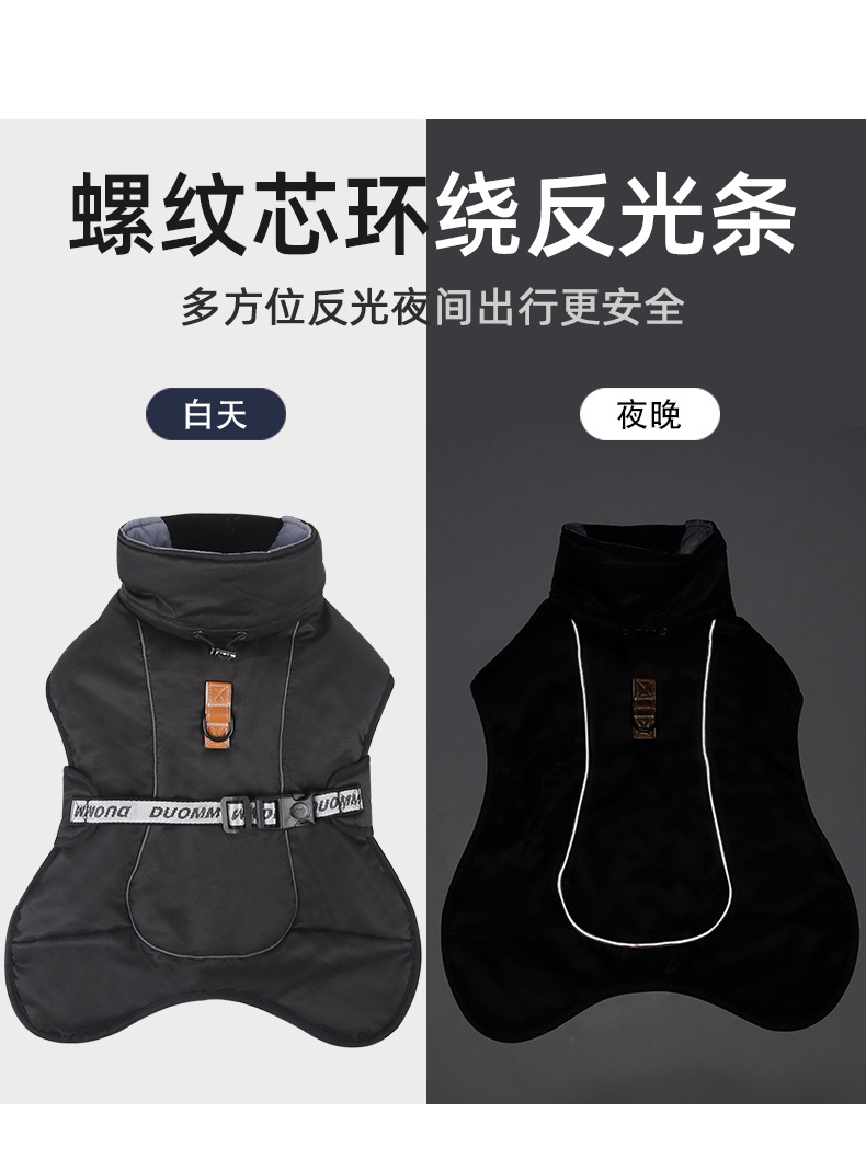 국경 가을, 겨울 대형 개 면화 의류 반사 따뜻한 개 재킷 방풍 및 방수 도베르만 애완 동물 면화 의류 재고 있음 겨울스토어 가기