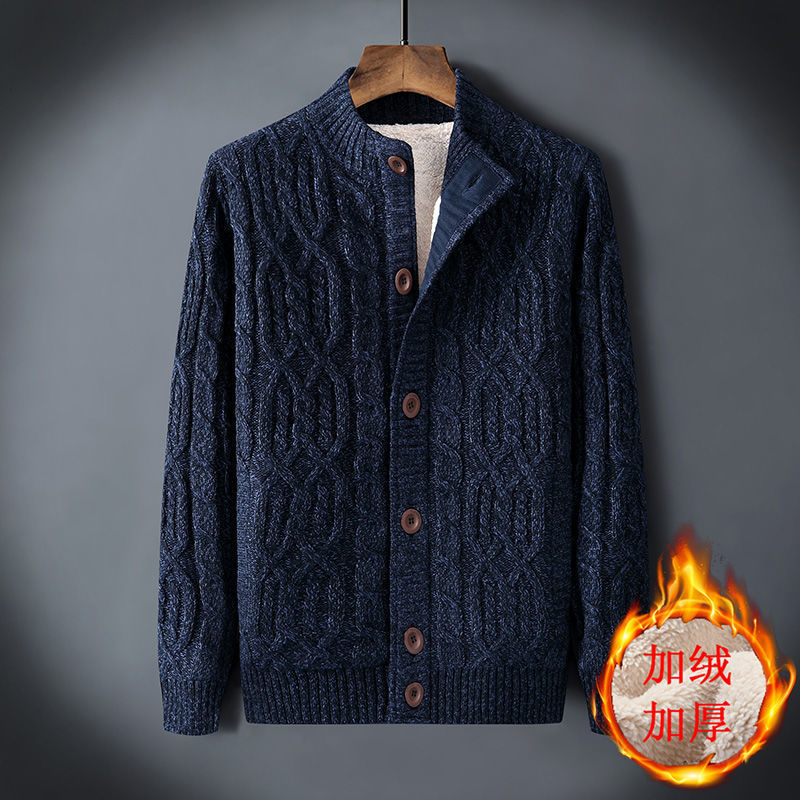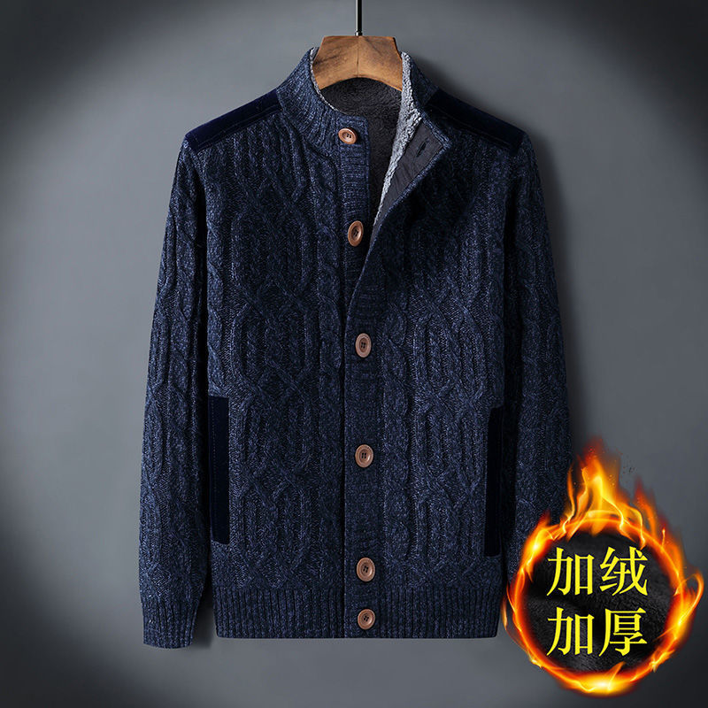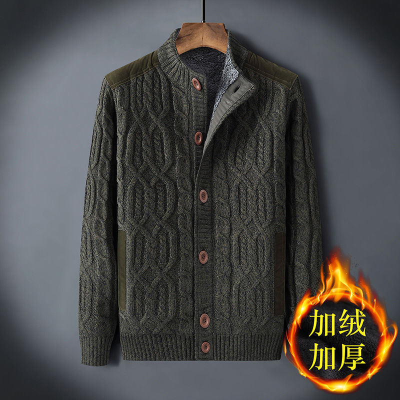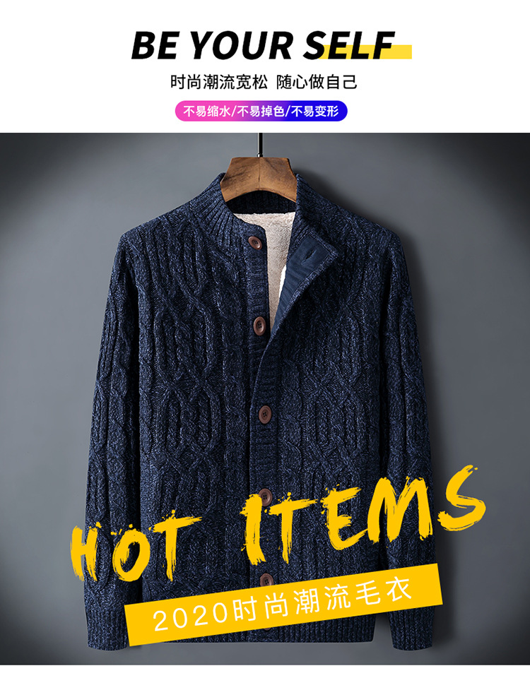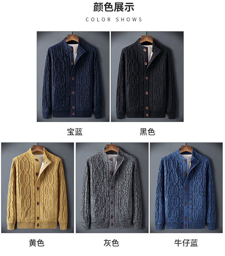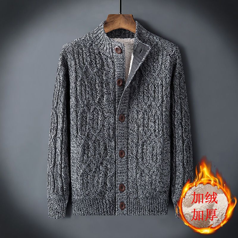 신상품 남성용 두꺼운 니트 가디건, 루즈핏 캐주얼 가디건, 가을 겨울용 기모 스웨터스토어 가기