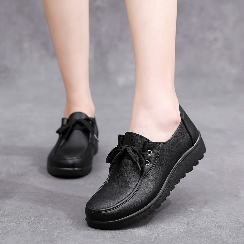 2022 새로운 복고풍 레이스 업 여성 신발 편안한 평면 싱글 레이어 신발 캐주얼 소프트 가죽 작업 신발 가을과 겨울 새로운 완두콩 신발