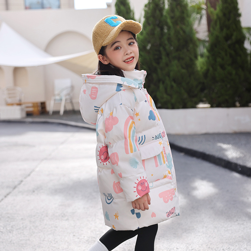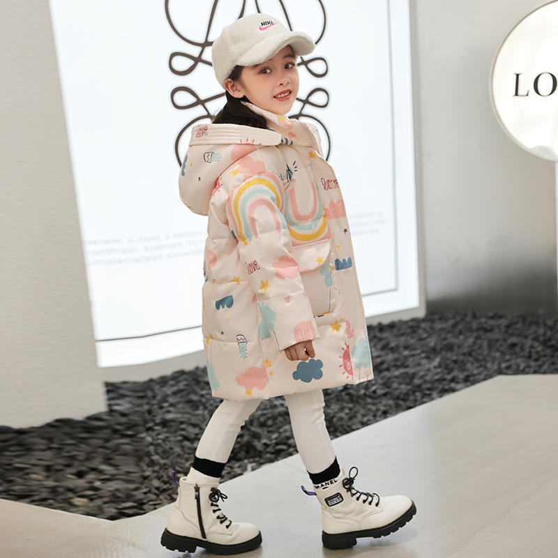 겨울 어린이 다운 재킷 소녀 긴 흰색 오리 다운 후드 어린 소녀 어린이 외국 스타일 코트 3-8 세스토어 가기
