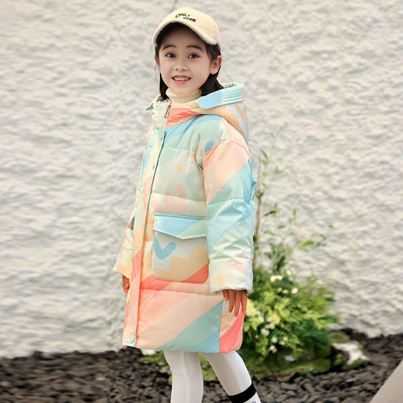 겨울 어린이 다운 재킷 소녀 긴 흰색 오리 다운 후드 어린 소녀 어린이 외국 스타일 코트 3-8 세