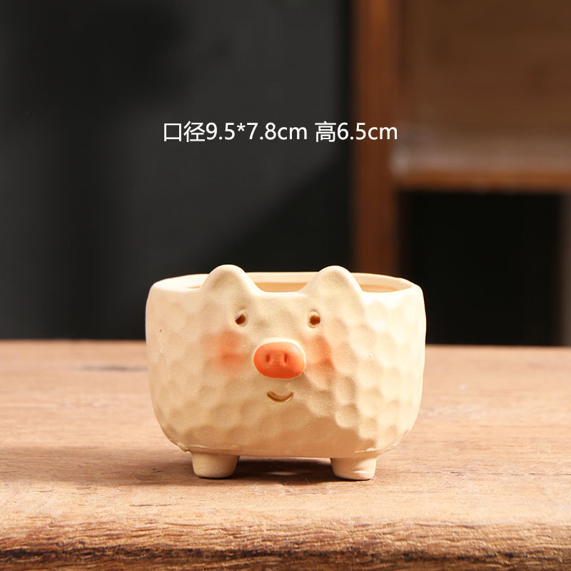 만화풍 다육식물 화분, 창의적인 소형 뿌리 제한 화분, 동물 모양의 거친 도자기 화분, 다육식물 화분, 점토 화분, 도매, 가정용스토어 가기