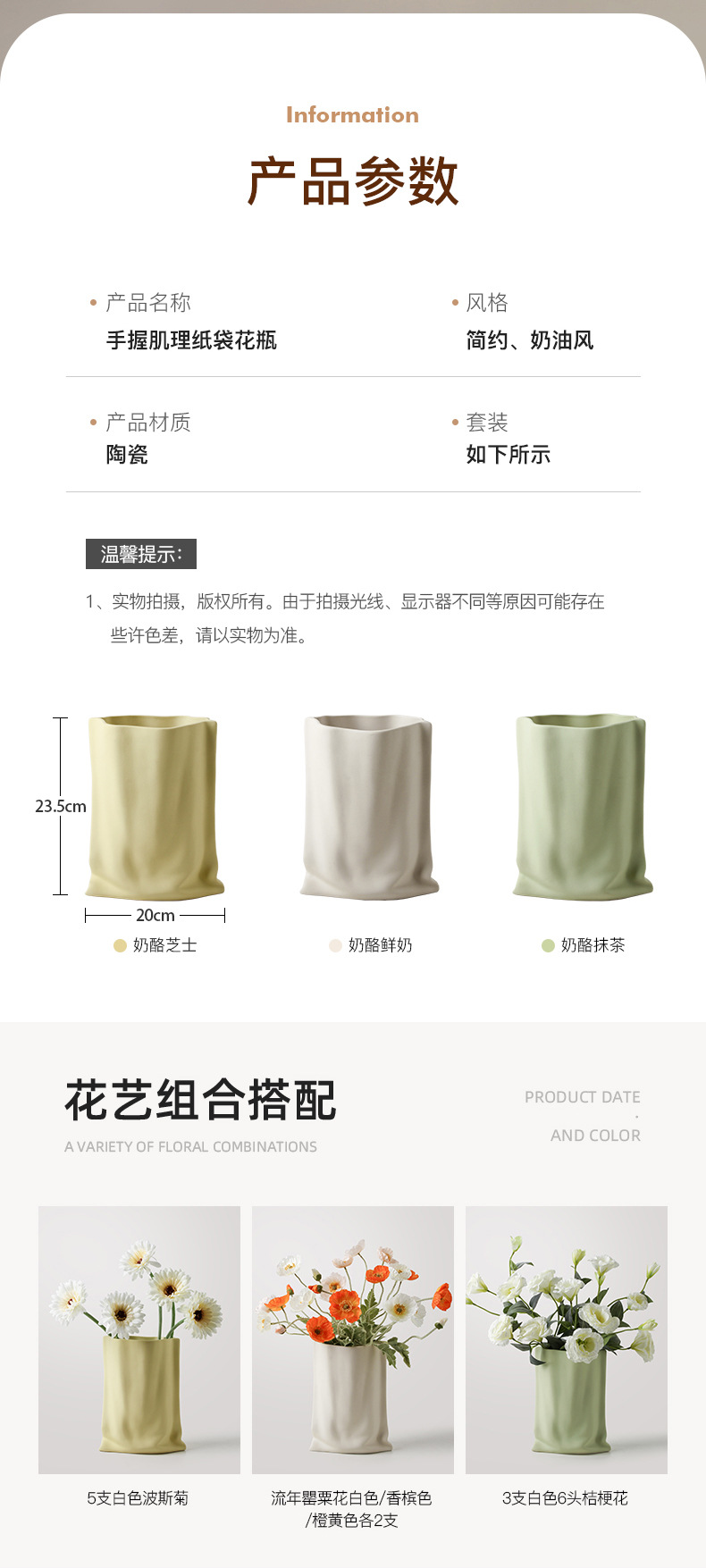 • 손 핀치 질감 종이 가방 꽃병-치즈