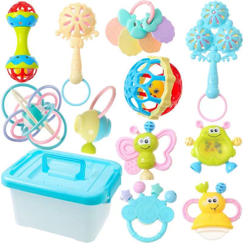 아기 장난감 0-3-12 개월 신생아 딸랑이 아기 퍼즐 조기 교육 아기 치아 젤 손 딸랑이 세트 선물스토어 가기