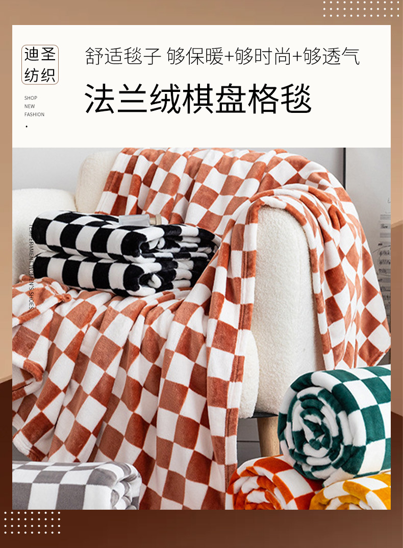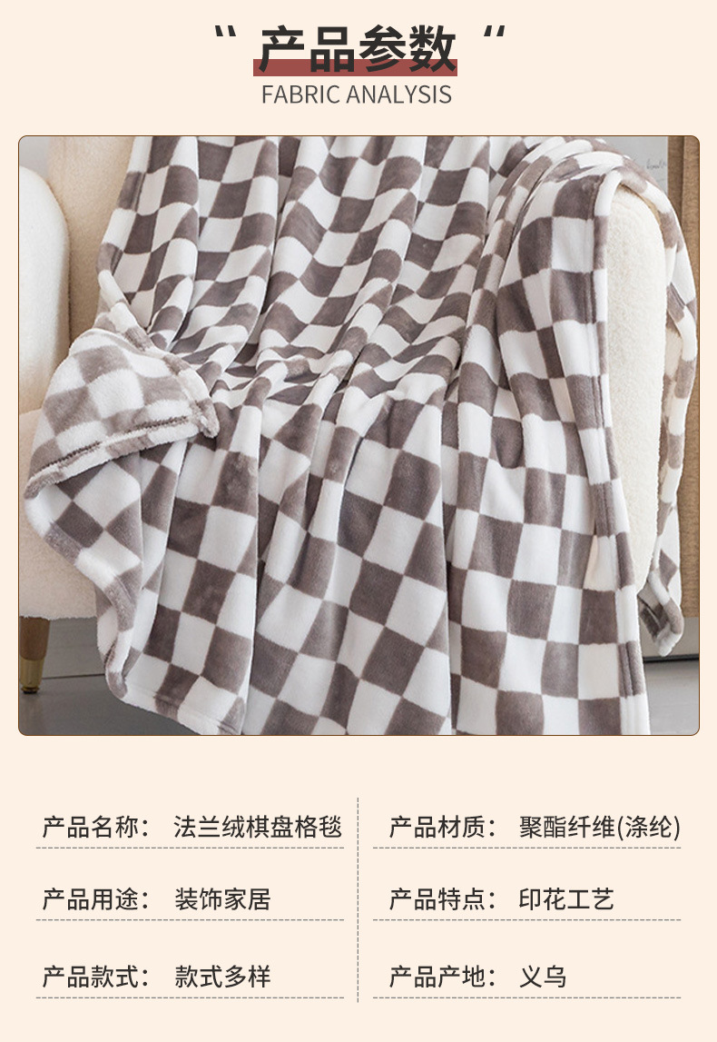 국경 간 직공급 체스판 플란넬 인쇄 담요 산호 양털 담요 시트 에어컨 선물 담요 도매스토어 가기