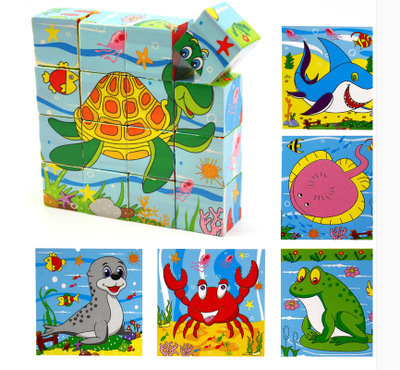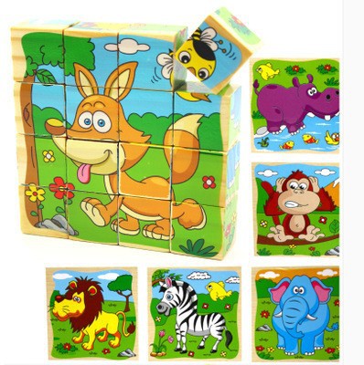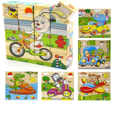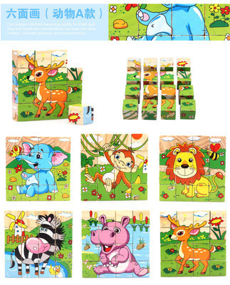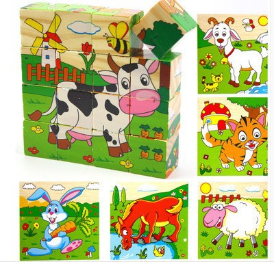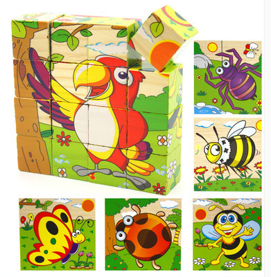 어린 아이들을위한 16 개의 나무 직소 퍼즐 3-6 세 아기 조기 교육 퍼즐 계몽 빌딩 블록 장난감을위한 3D 입체 육면 그림스토어 가기