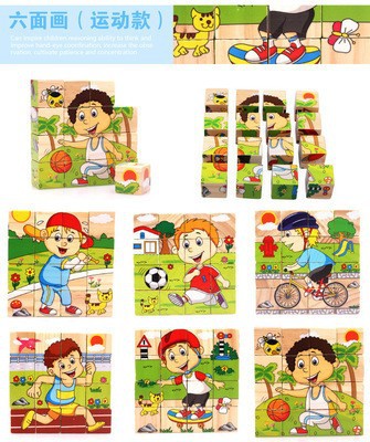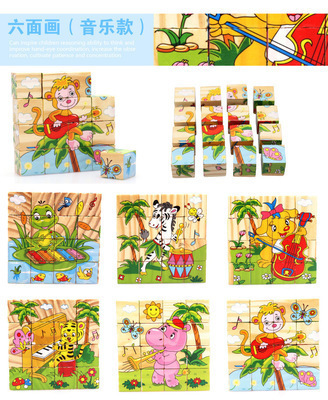 어린 아이들을위한 16 개의 나무 직소 퍼즐 3-6 세 아기 조기 교육 퍼즐 계몽 빌딩 블록 장난감을위한 3D 입체 육면 그림