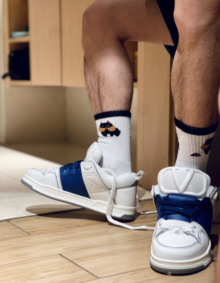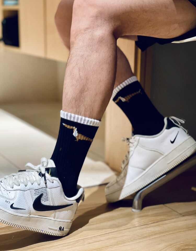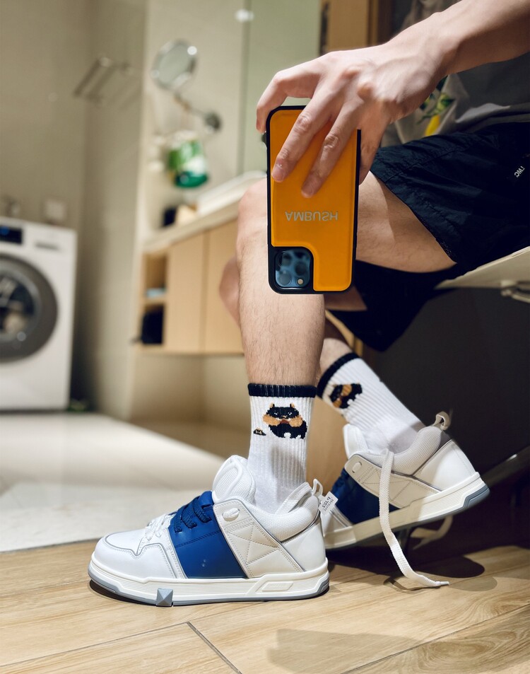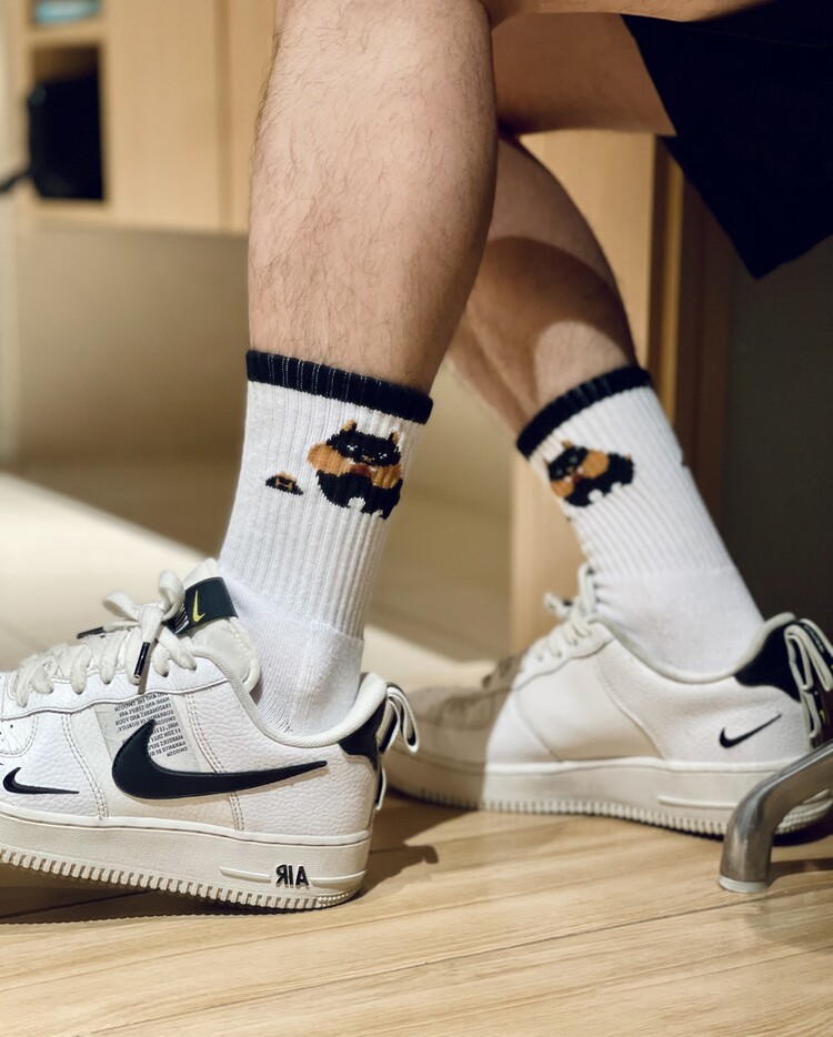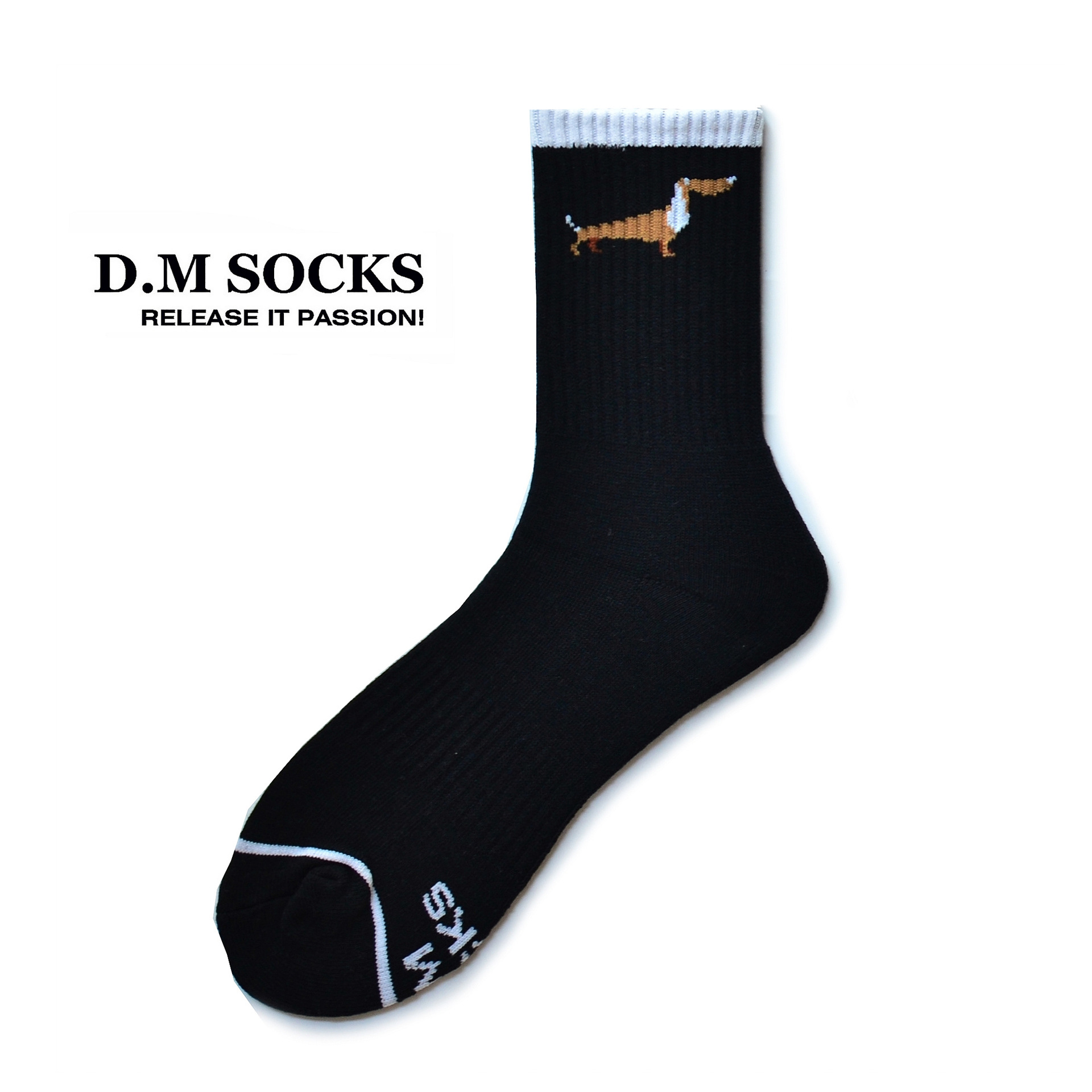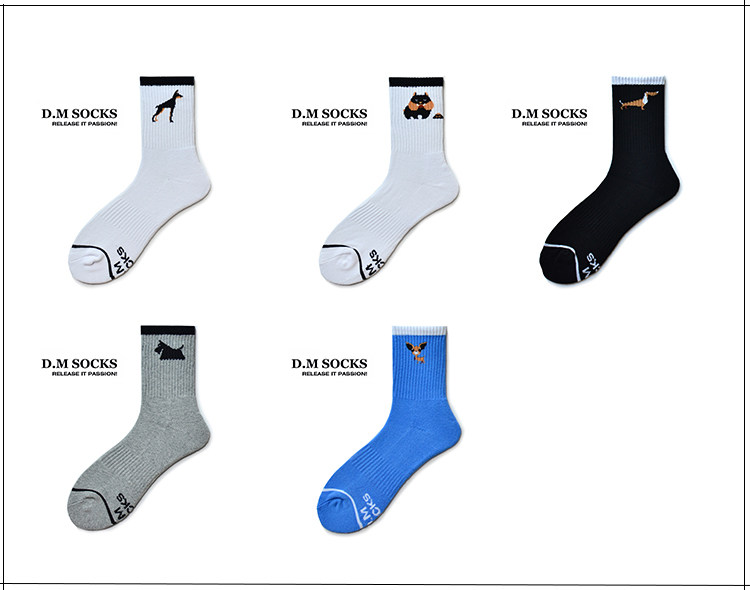 D.M 남성 양말 패션 유행 테리 두꺼운 바닥 땀 흡수 만화 개 편지 중간 튜브 양말 스포츠 거리 성격