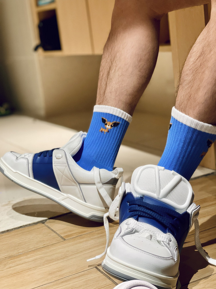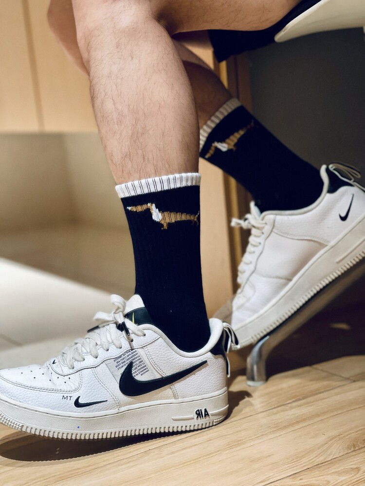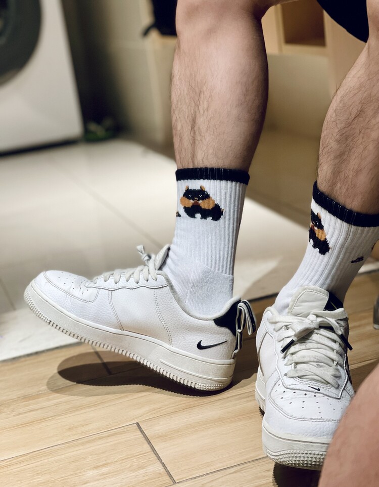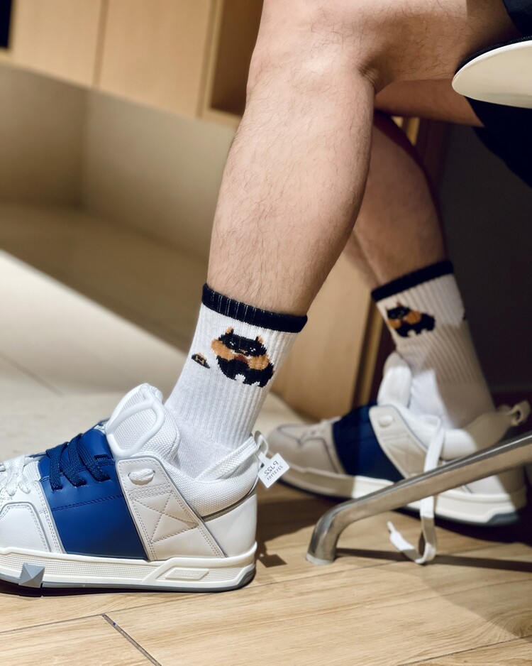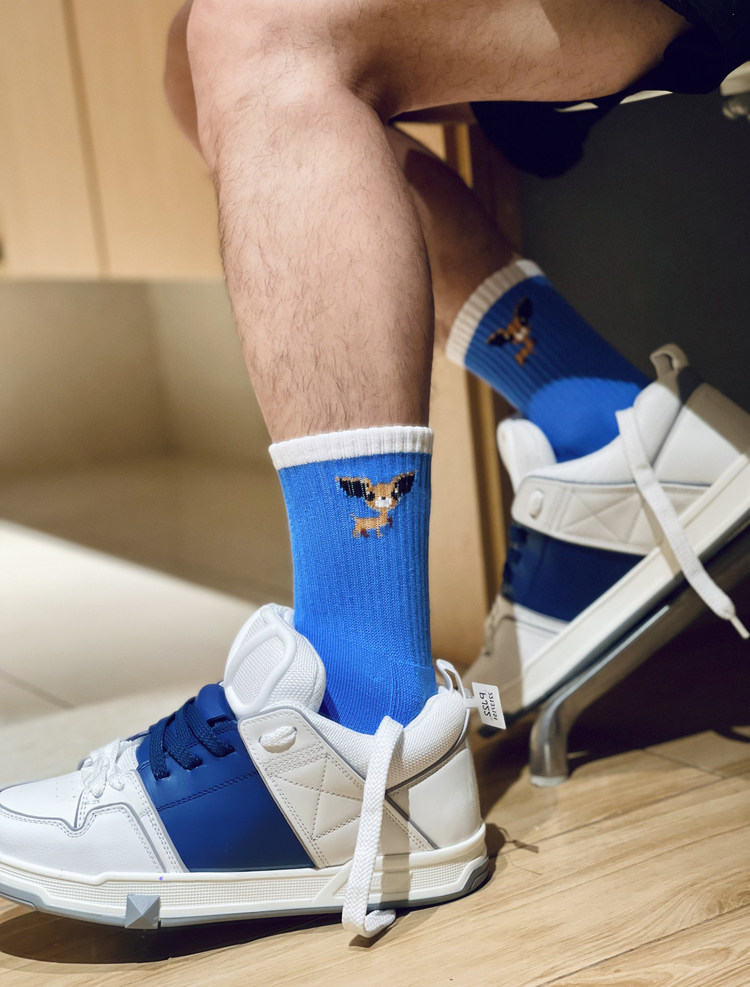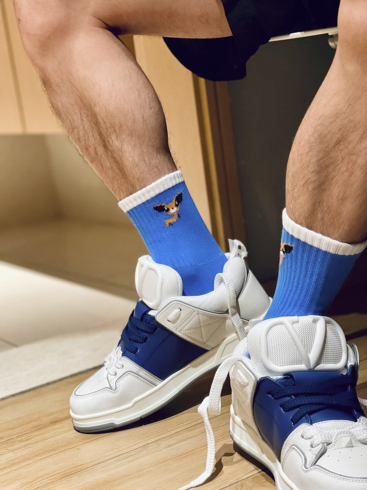 D.M 남성 양말 패션 유행 테리 두꺼운 바닥 땀 흡수 만화 개 편지 중간 튜브 양말 스포츠 거리 성격스토어 가기
