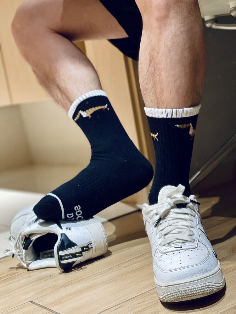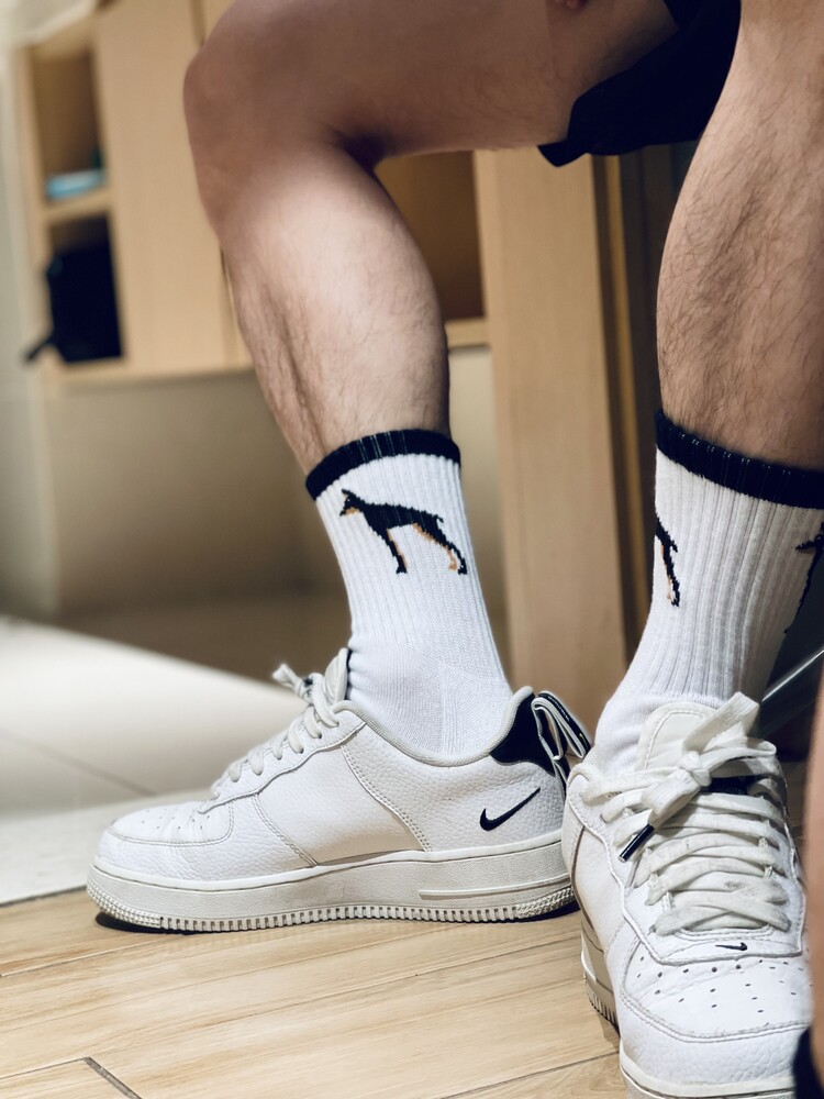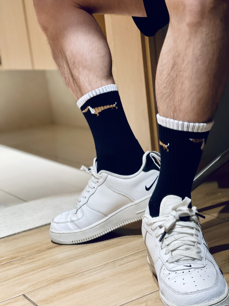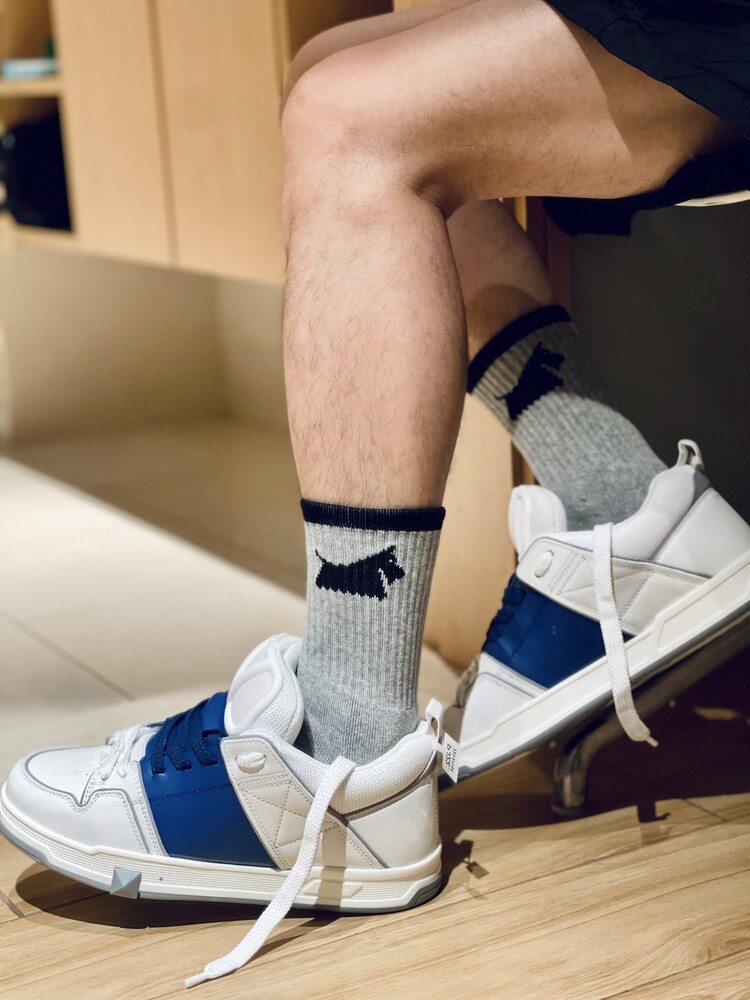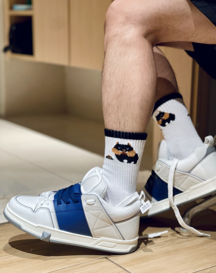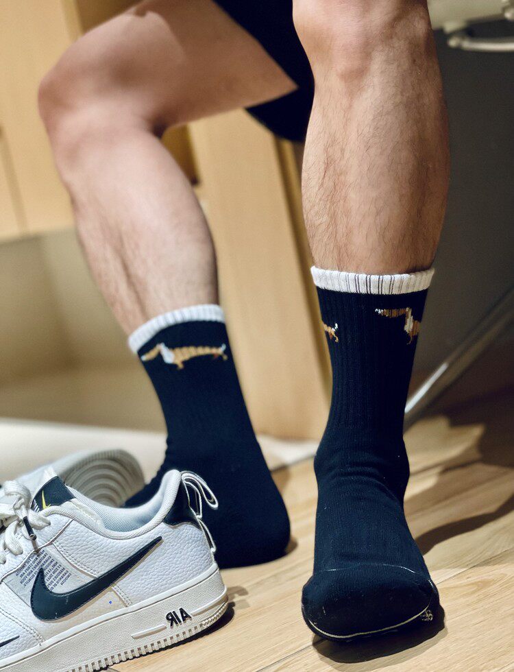 D.M 남성 양말 패션 유행 테리 두꺼운 바닥 땀 흡수 만화 개 편지 중간 튜브 양말 스포츠 거리 성격스토어 가기