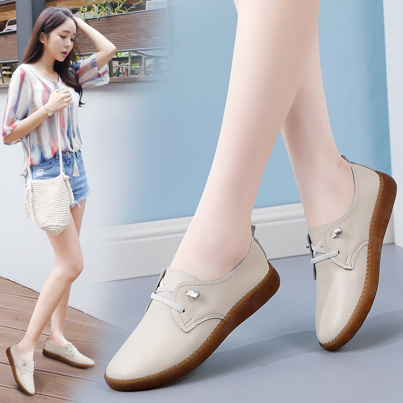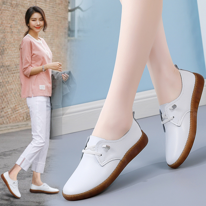 여성을위한 국경 간 정품 가죽 비니 신발 봄과 가을 새로운 부드러운 밑창 흰색 신발 미끄럼 방지 어머니 신발 캐주얼 작은 가죽 신발