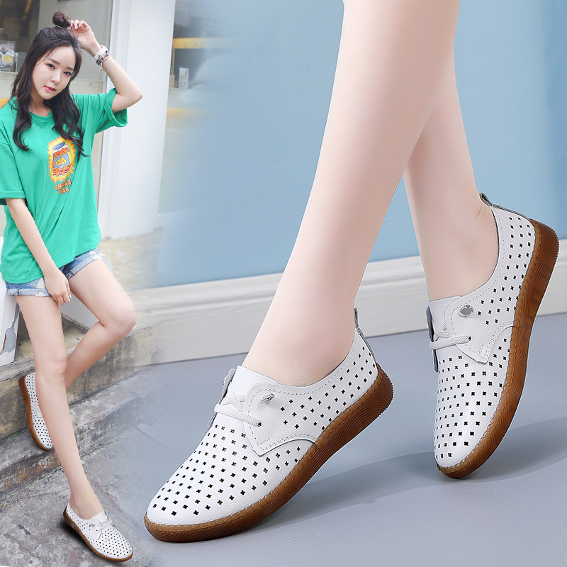 여성을위한 국경 간 정품 가죽 비니 신발 봄과 가을 새로운 부드러운 밑창 흰색 신발 미끄럼 방지 어머니 신발 캐주얼 작은 가죽 신발스토어 가기
