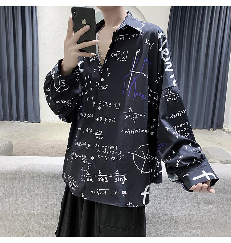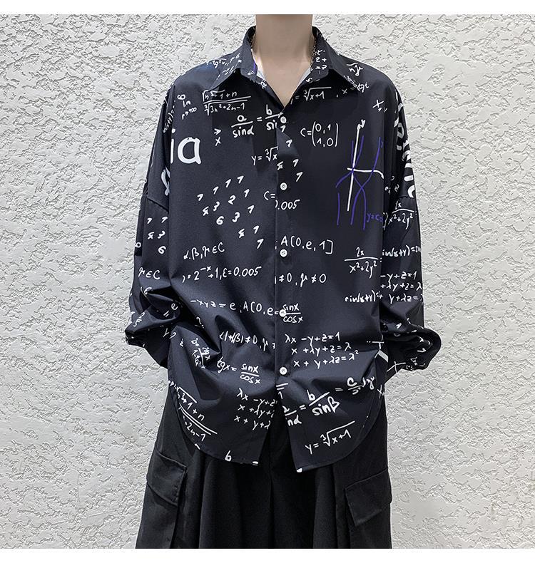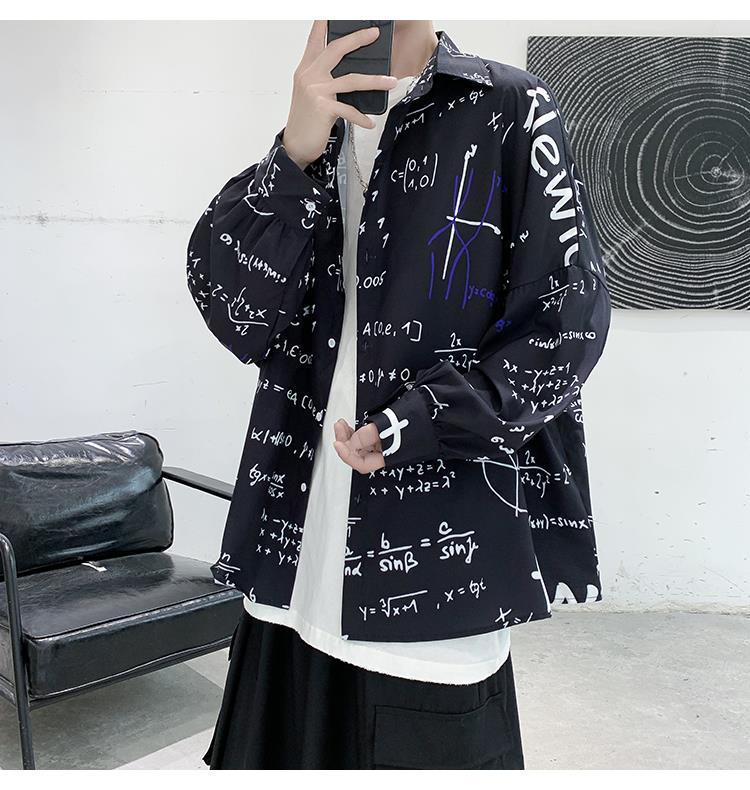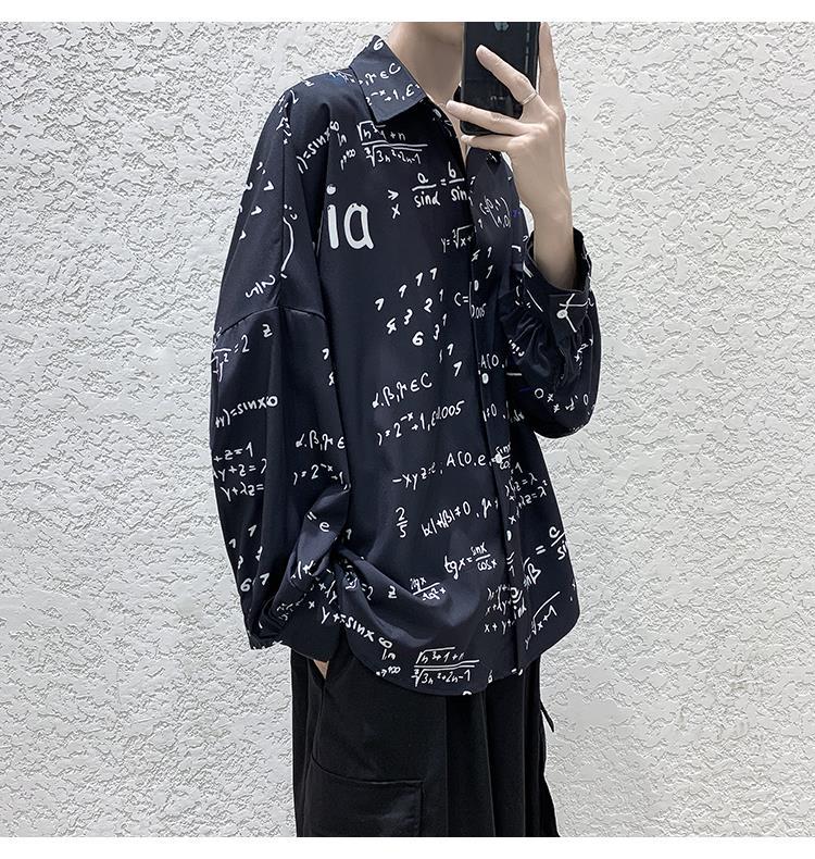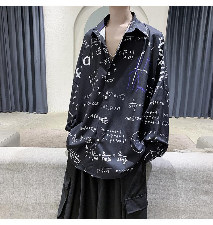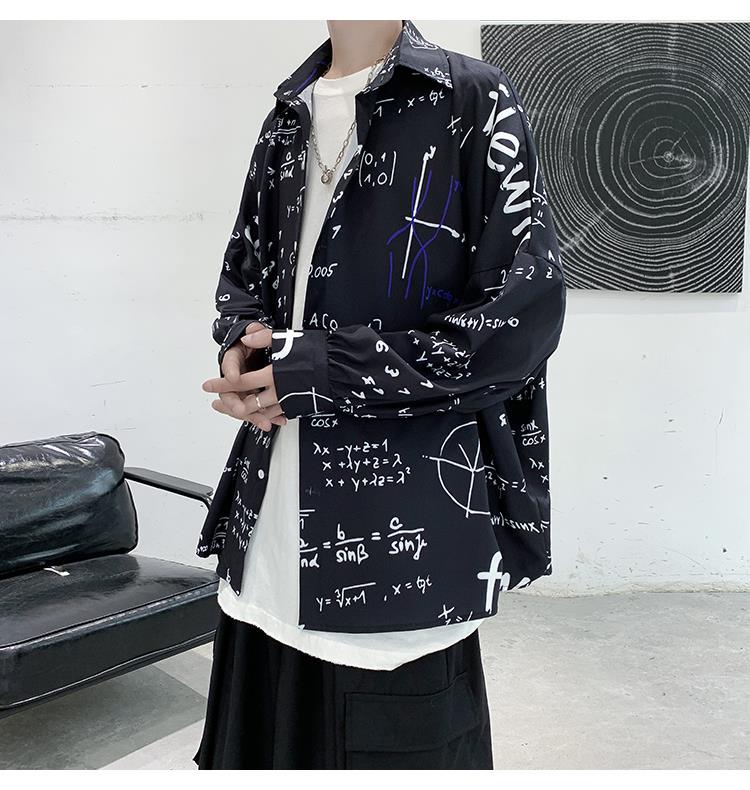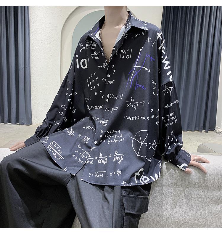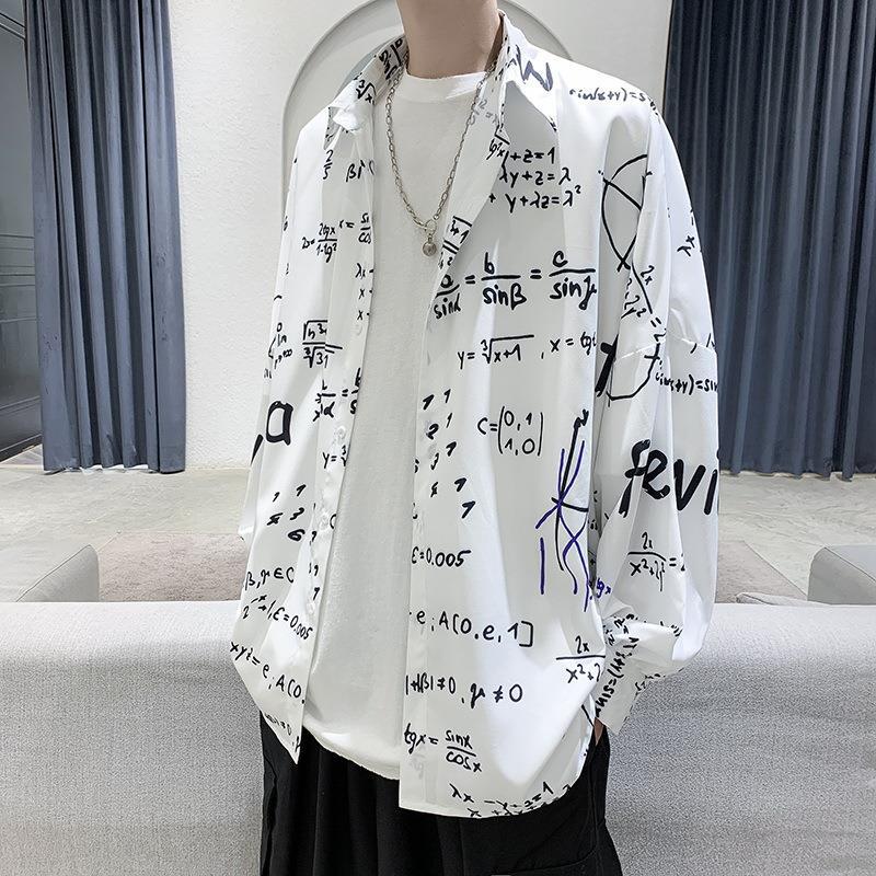 금욕 스타일 남성 의류 홍콩 스타일 인쇄 고급 셔츠 남성용 일본식 착용 디자인 감각 Ruffian 잘 생긴 긴팔 셔츠