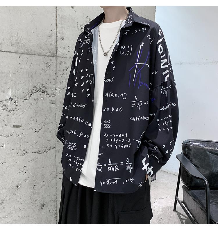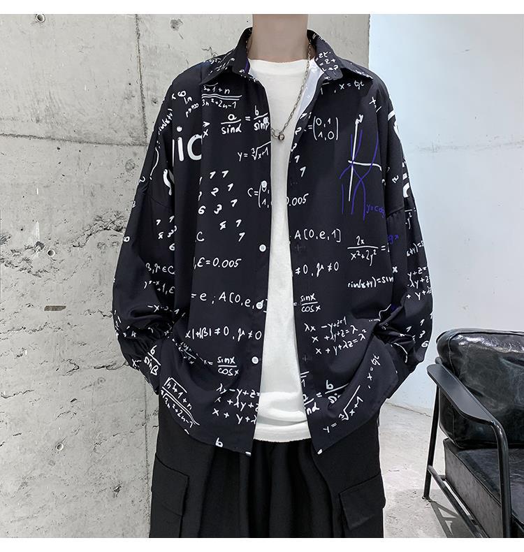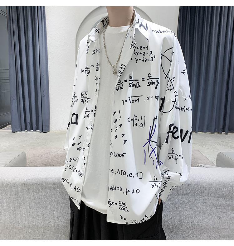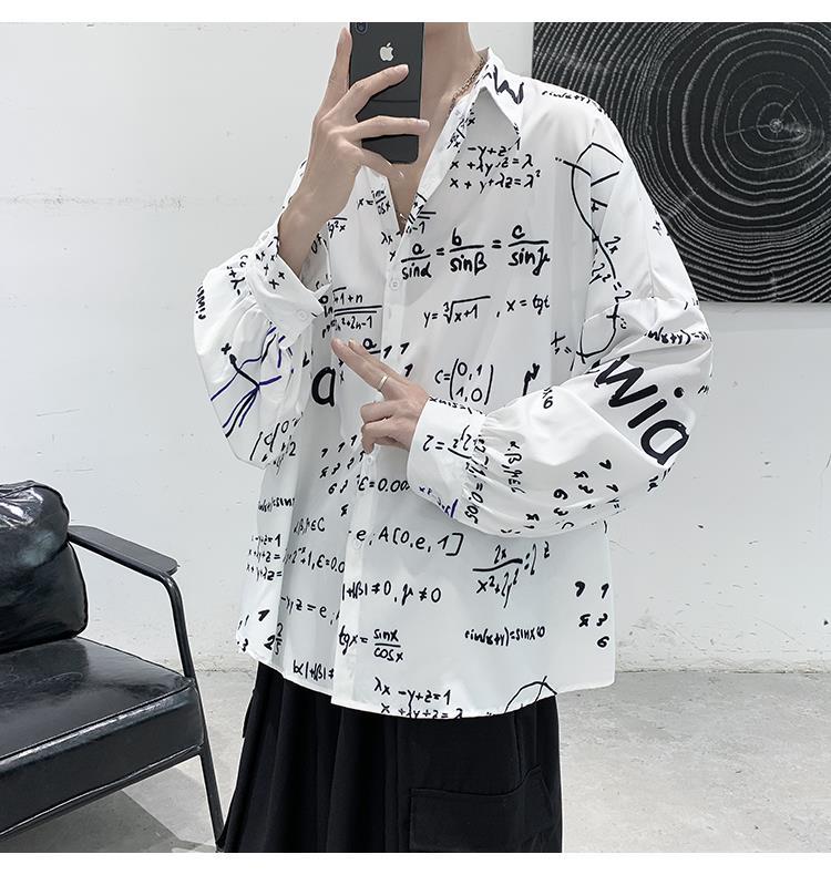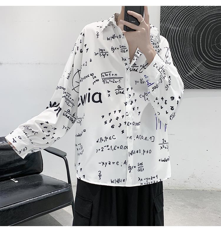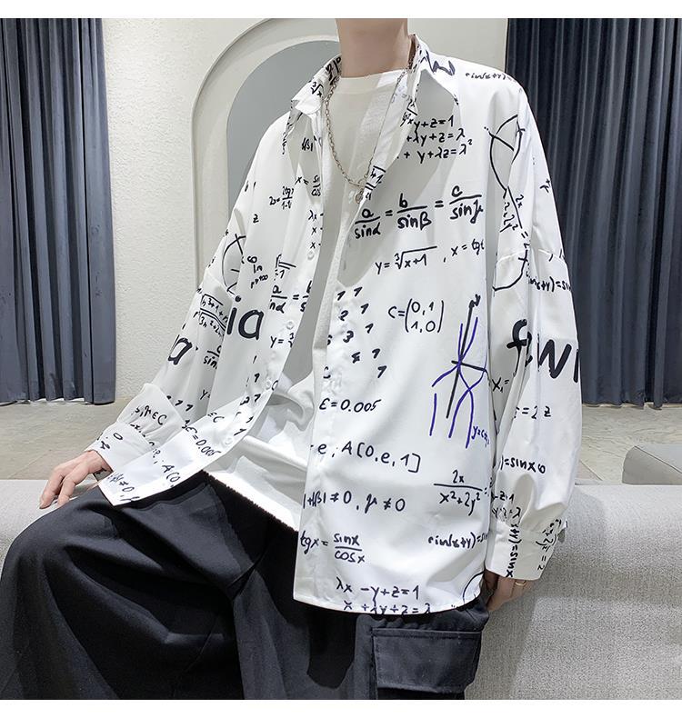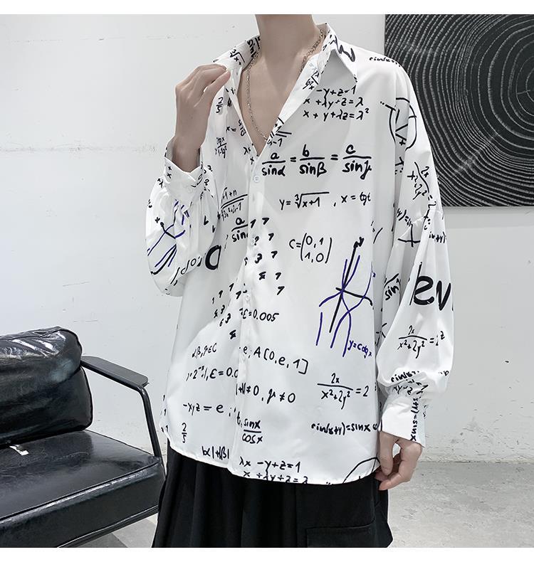 금욕 스타일 남성 의류 홍콩 스타일 인쇄 고급 셔츠 남성용 일본식 착용 디자인 감각 Ruffian 잘 생긴 긴팔 셔츠