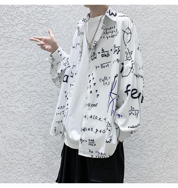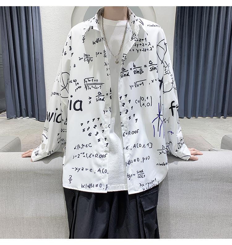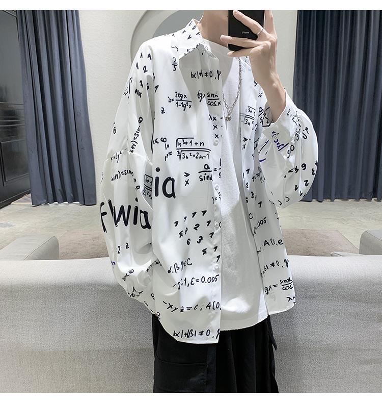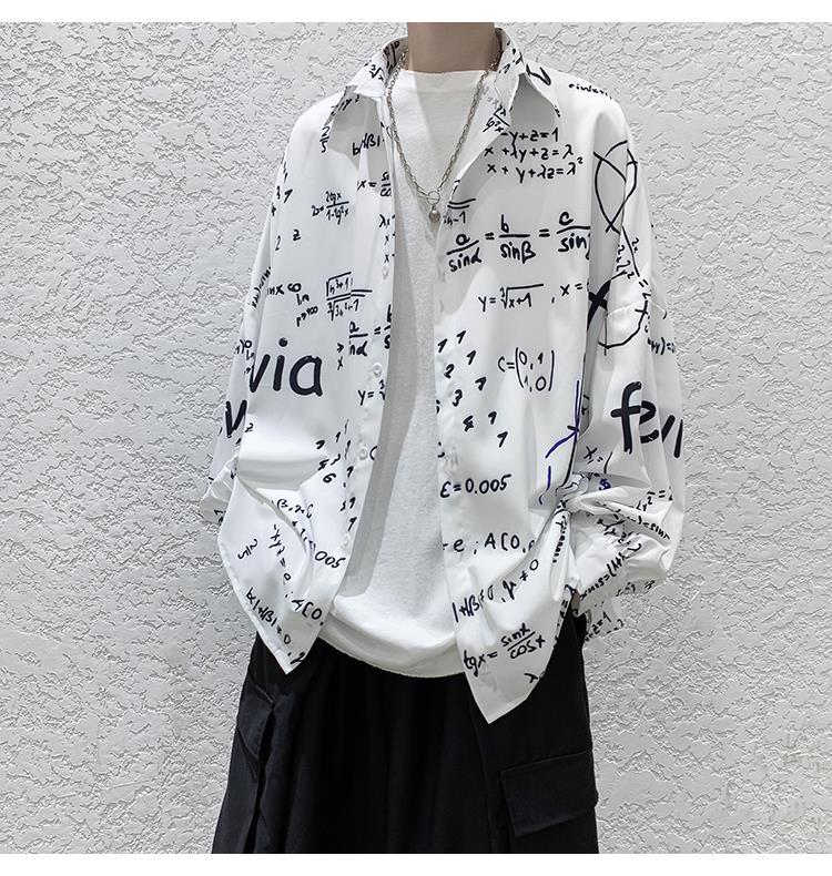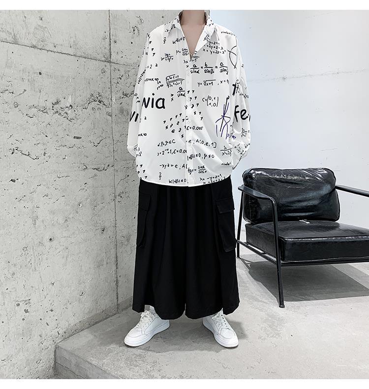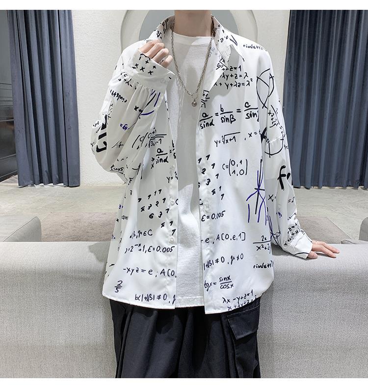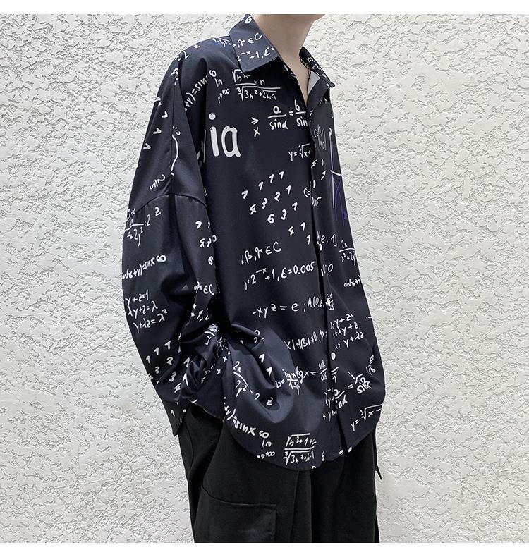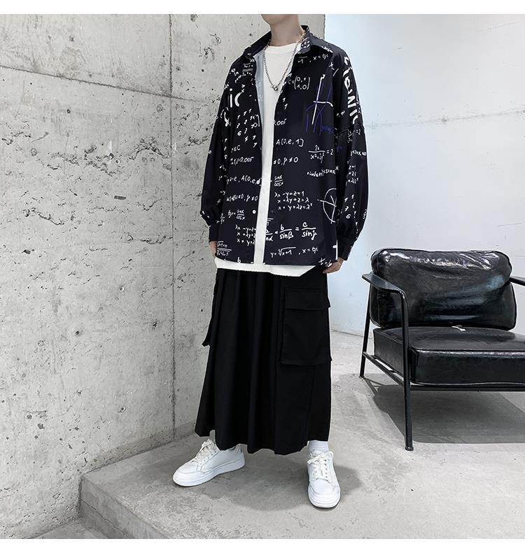 금욕 스타일 남성 의류 홍콩 스타일 인쇄 고급 셔츠 남성용 일본식 착용 디자인 감각 Ruffian 잘 생긴 긴팔 셔츠