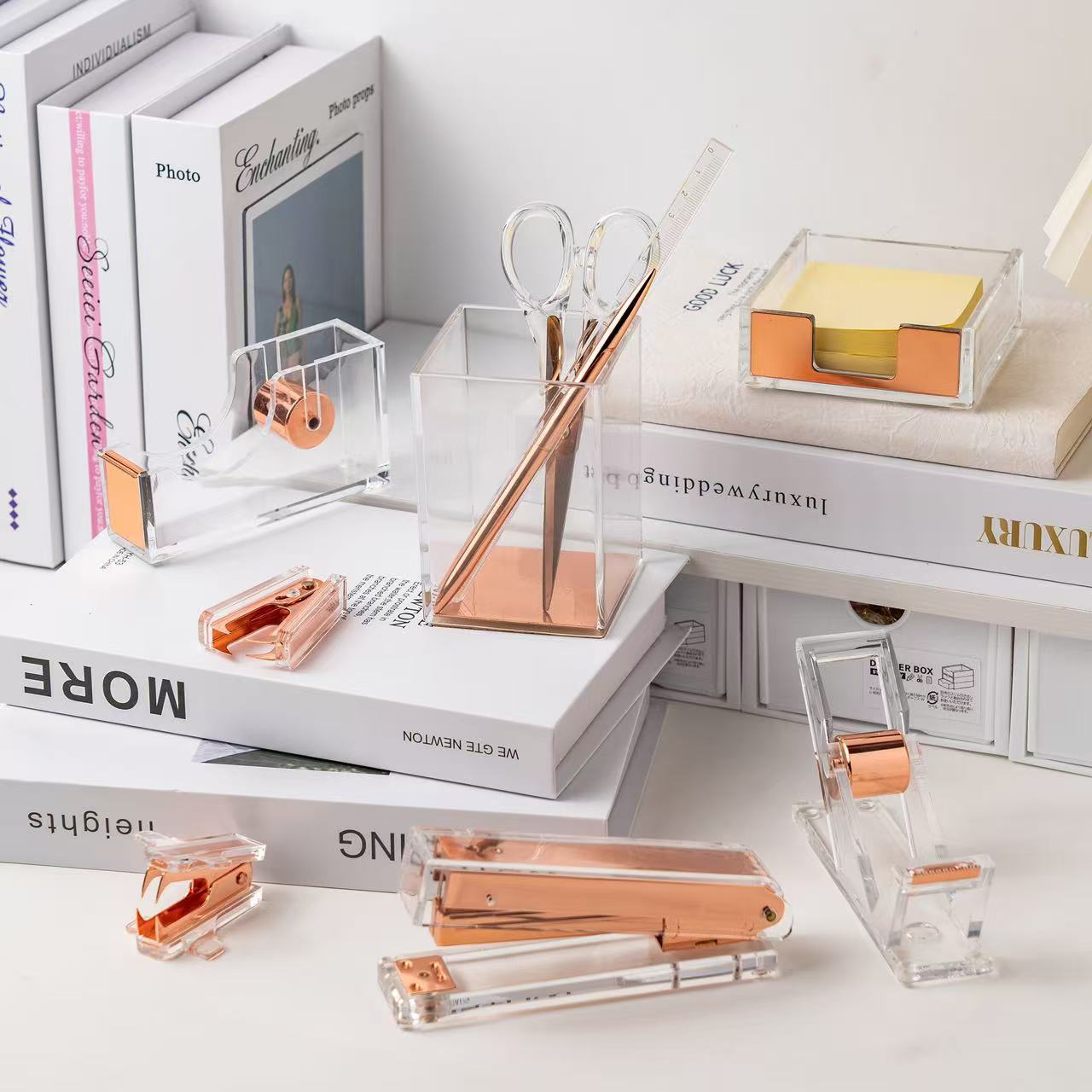 공장 도매 아크릴 투명 스테이플러 크로스보더 12 테이프 홀더 펜 홀더 가위 스테이플러 A4 파일 박스스토어 가기