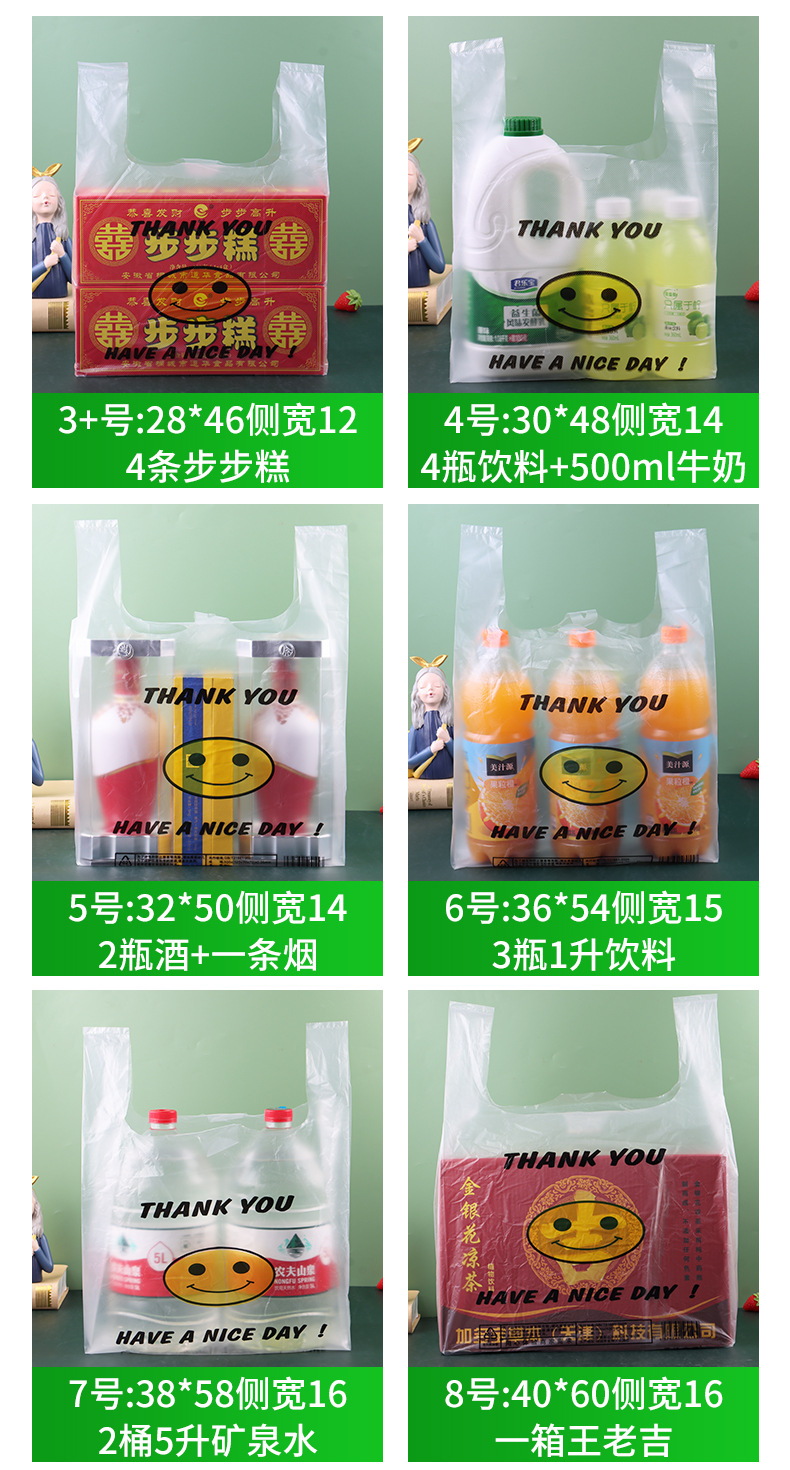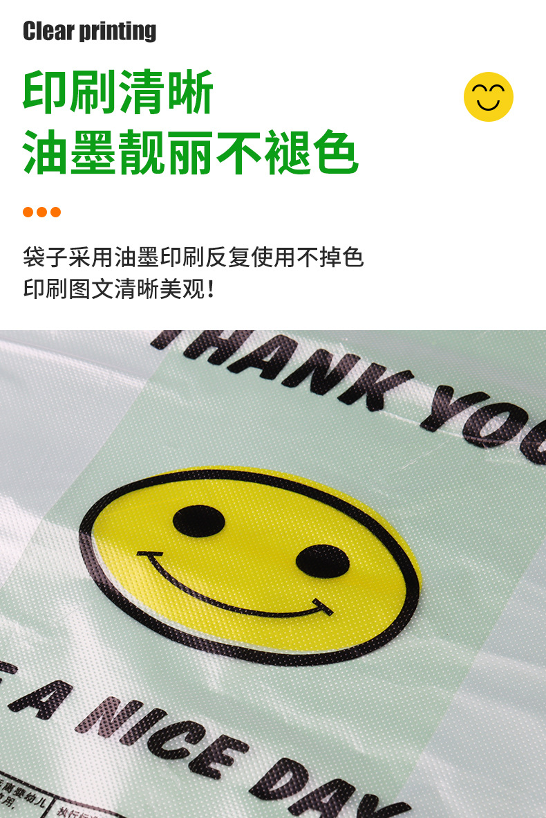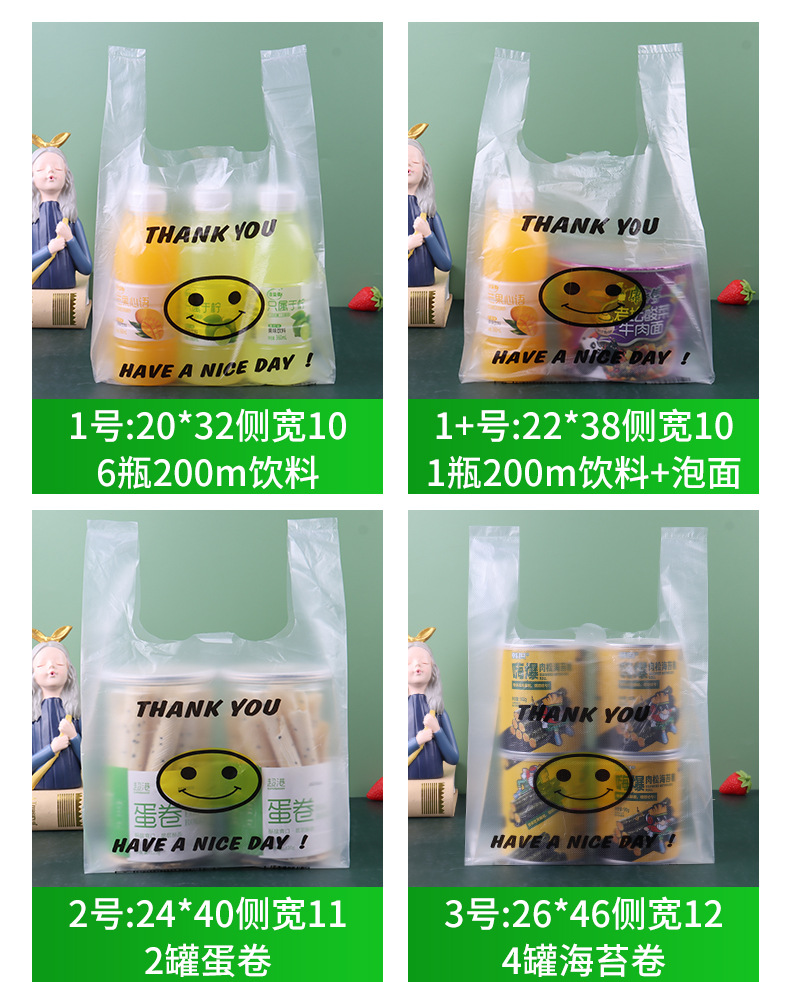 스마일 페이스 백 두꺼운 투명 비닐 봉투 테이크 아웃 식품 가방 시판 포장 가방 조끼 쇼핑 편리한 핸드백스토어 가기