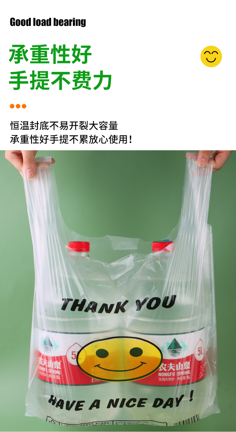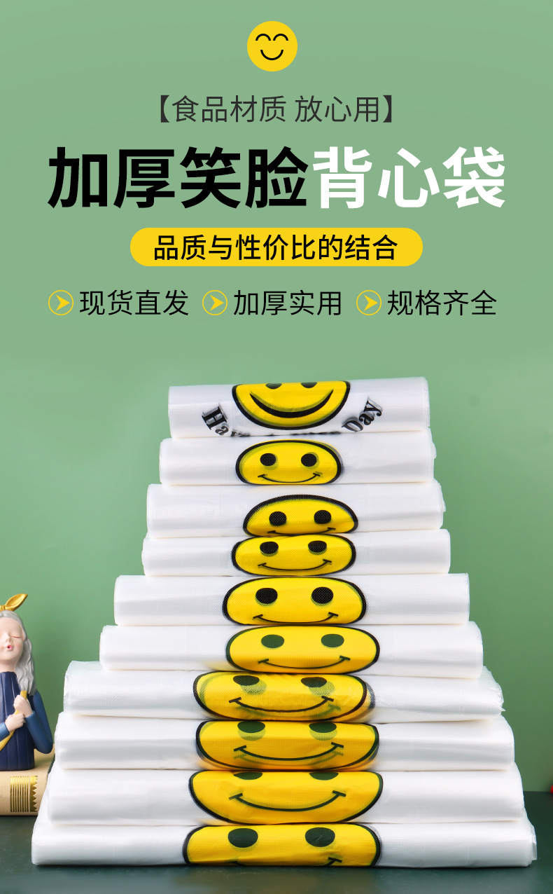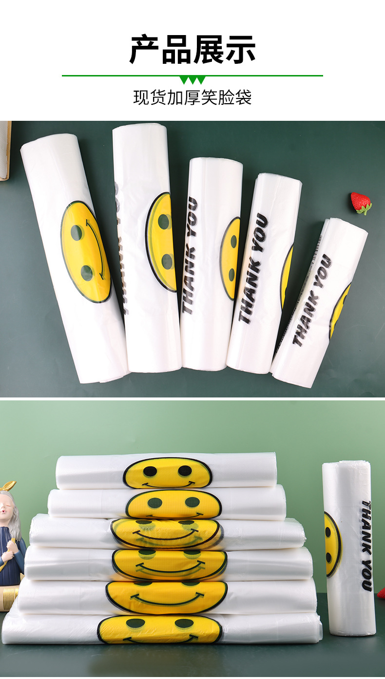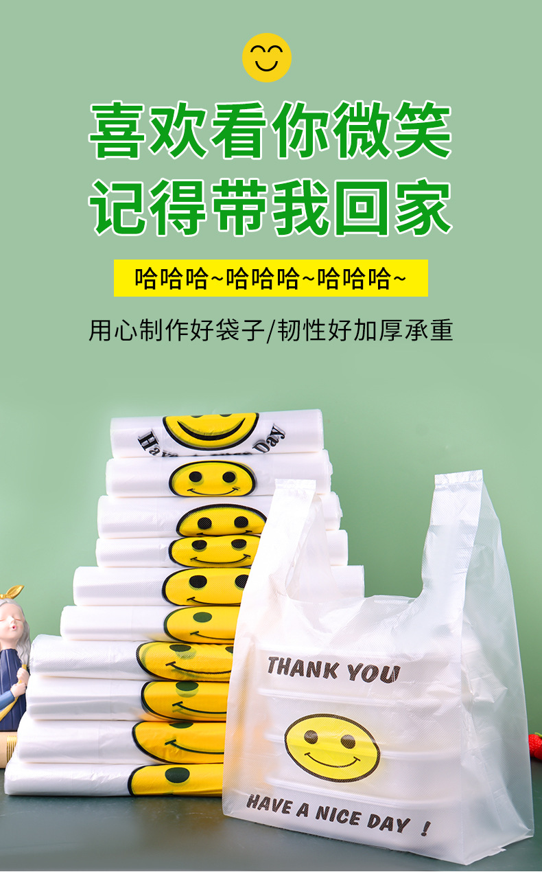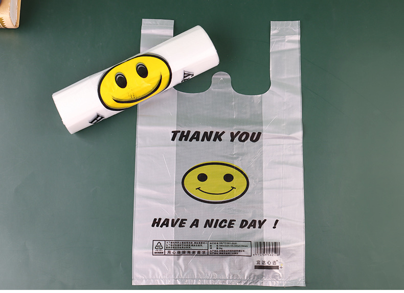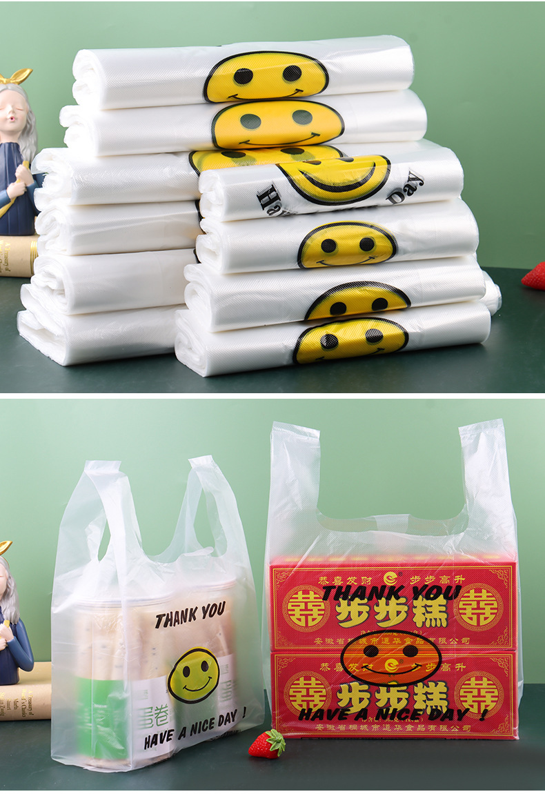 스마일 페이스 백 두꺼운 투명 비닐 봉투 테이크 아웃 식품 가방 시판 포장 가방 조끼 쇼핑 편리한 핸드백