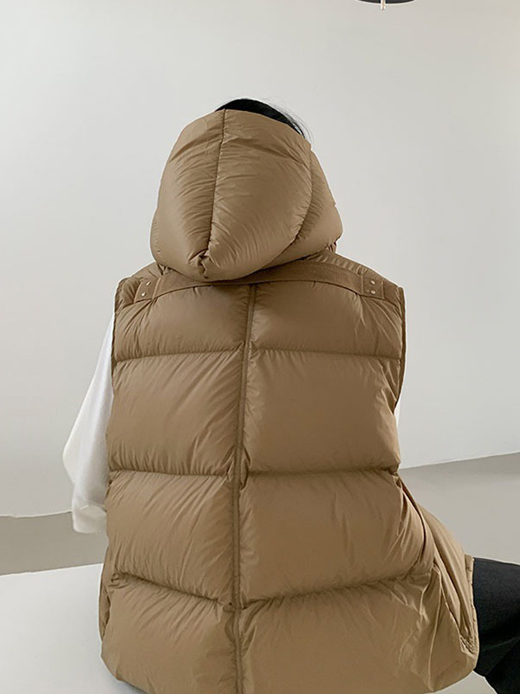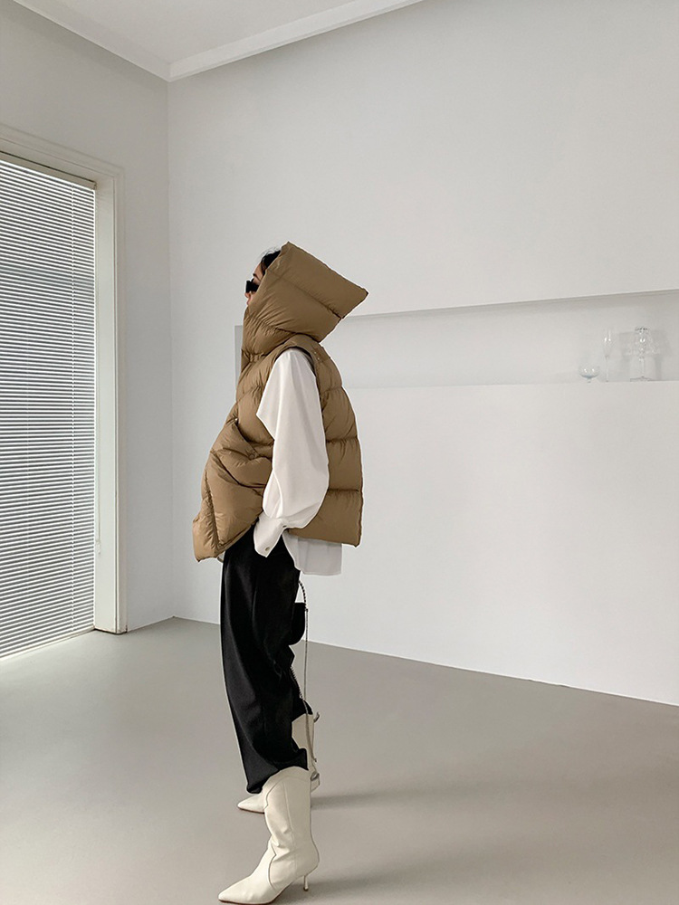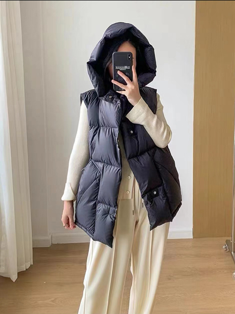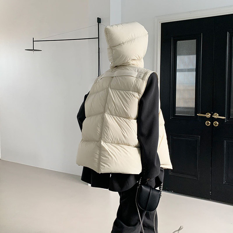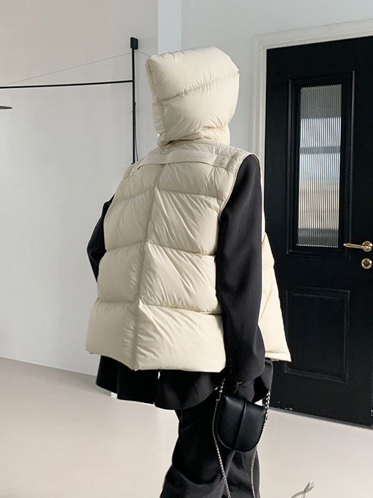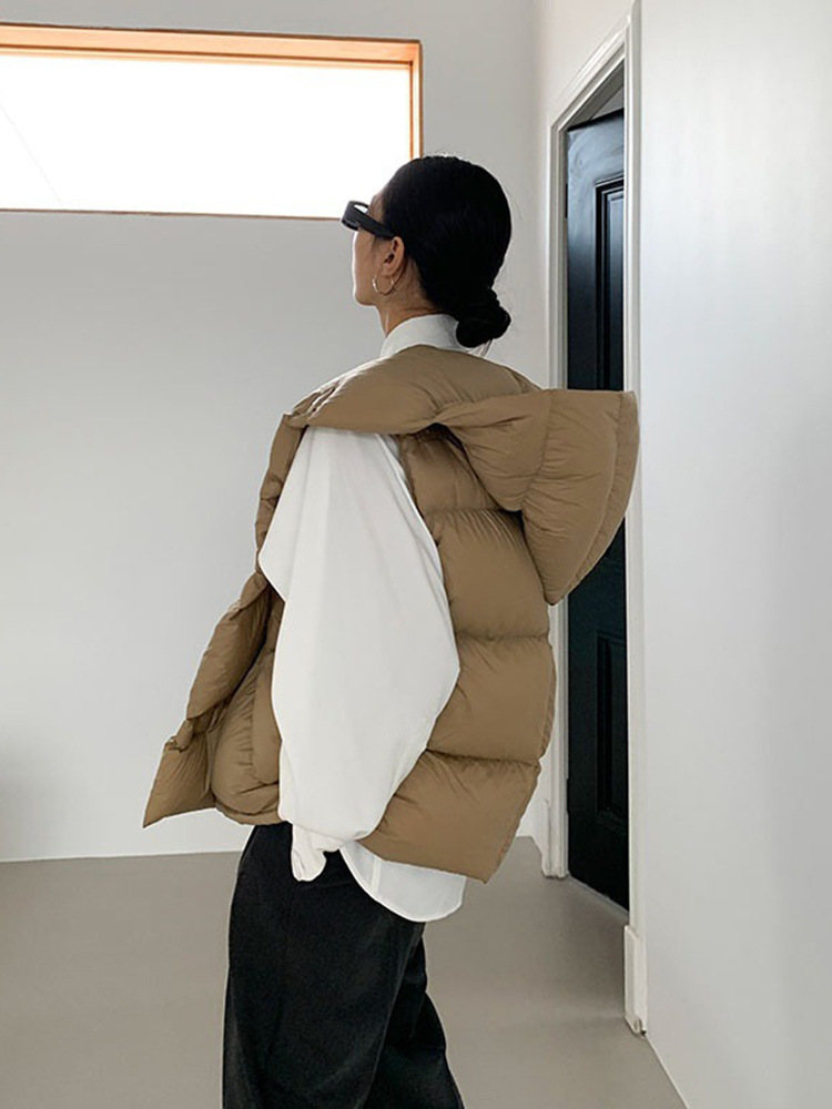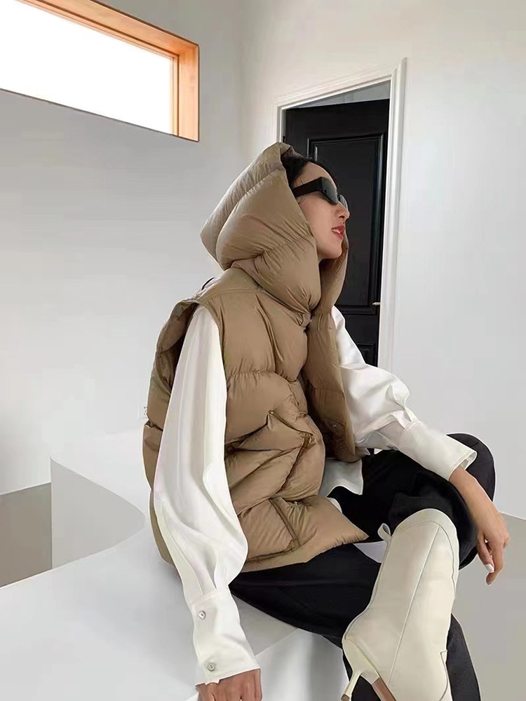 2025 가을 겨울 신상 여성용 숏 다운 조끼 후드 안감 플랫허드 패딩 조끼 트렌디 비수기스토어 가기