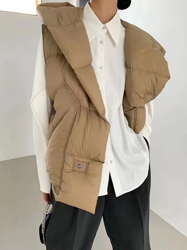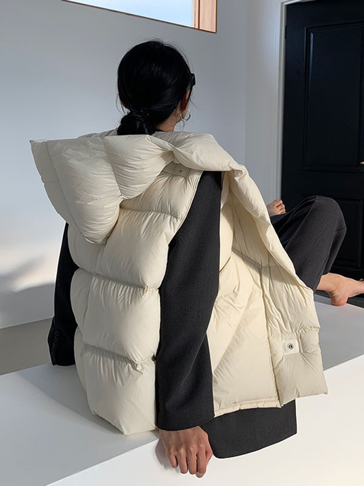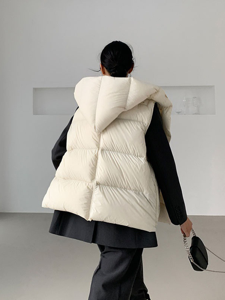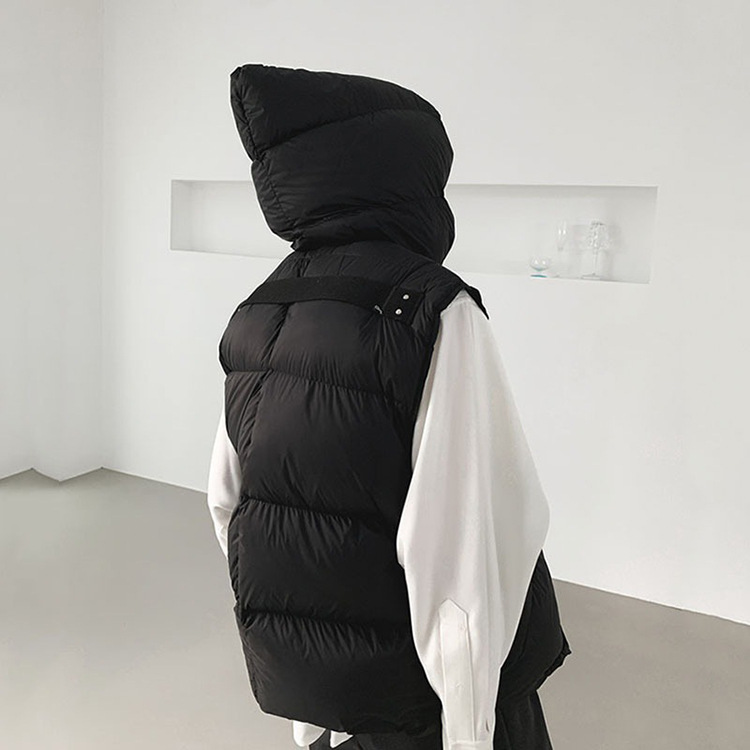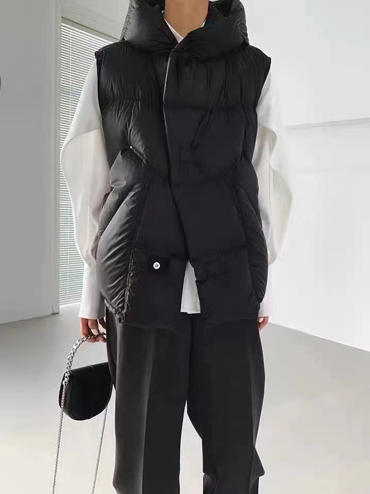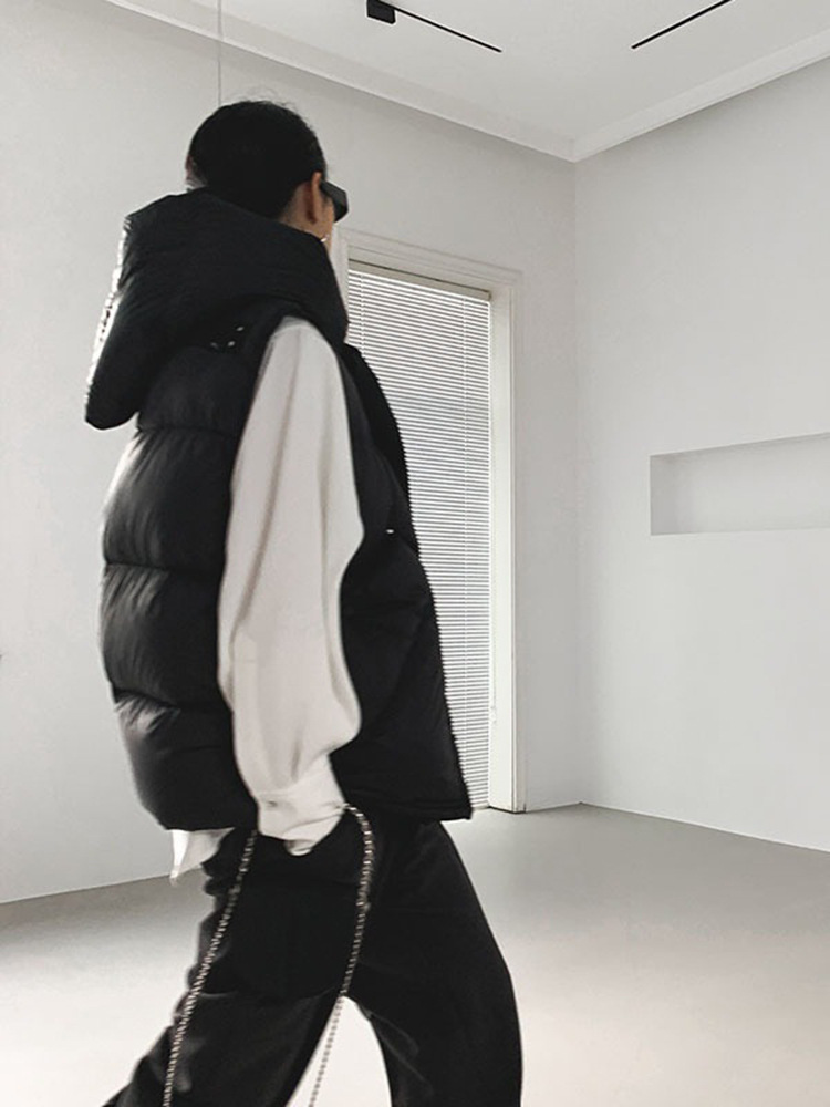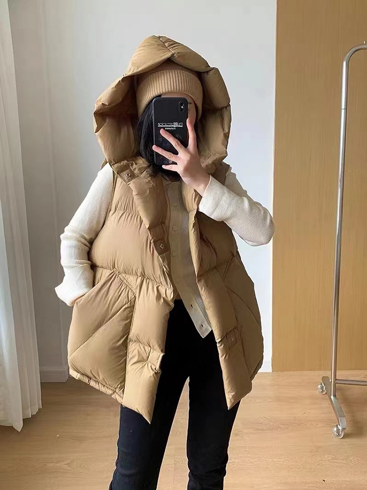2025 가을 겨울 신상 여성용 숏 다운 조끼 후드 안감 플랫허드 패딩 조끼 트렌디 비수기스토어 가기