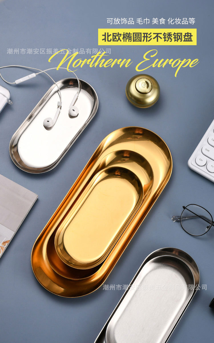 비자성 스테인레스 스틸 한국 타원형 디스크 타월 트레이 한국 요리 트레이 디저트 플레이트 냅킨 플레이트 딤팟 ZM