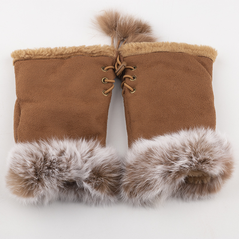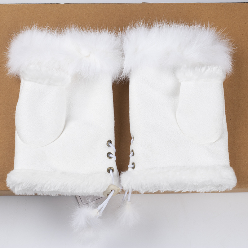 젖빛 토끼 모피 반 손가락 장갑 겨울 따뜻한 장갑 컴퓨터 달콤한 장갑 진짜 토끼 모피 반 손가락 장갑 도매스토어 가기