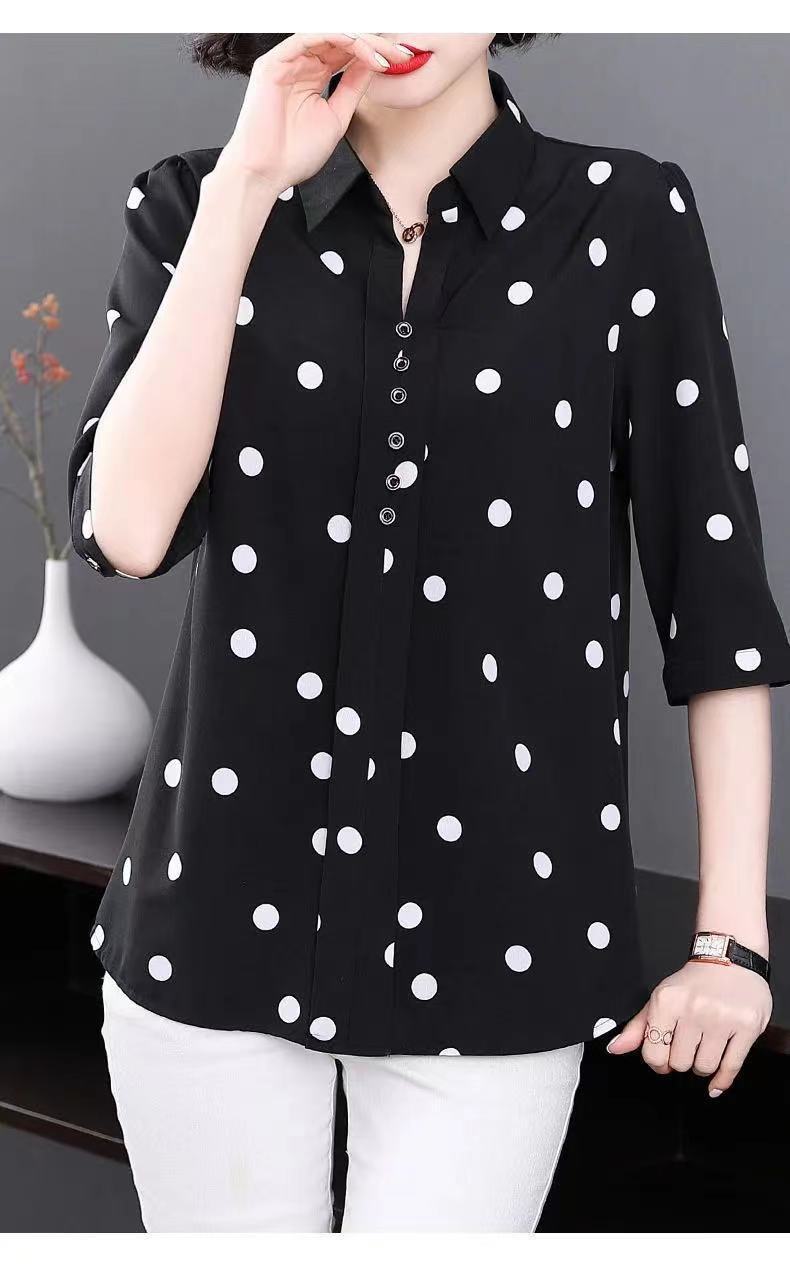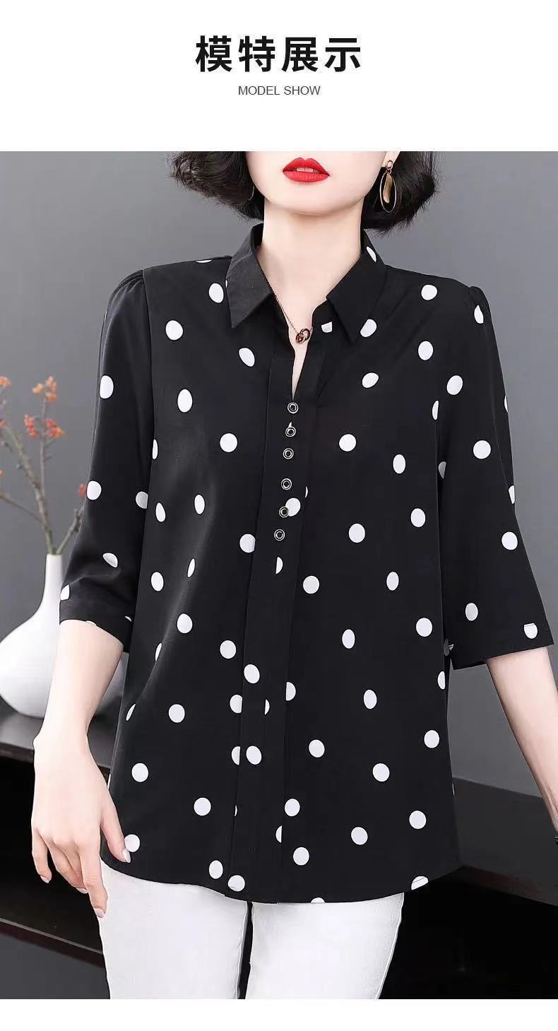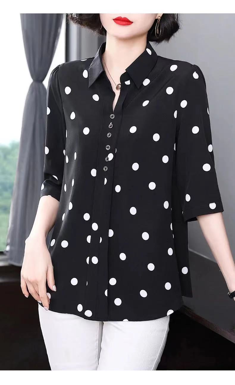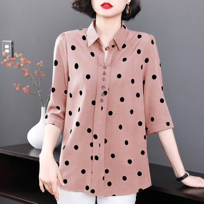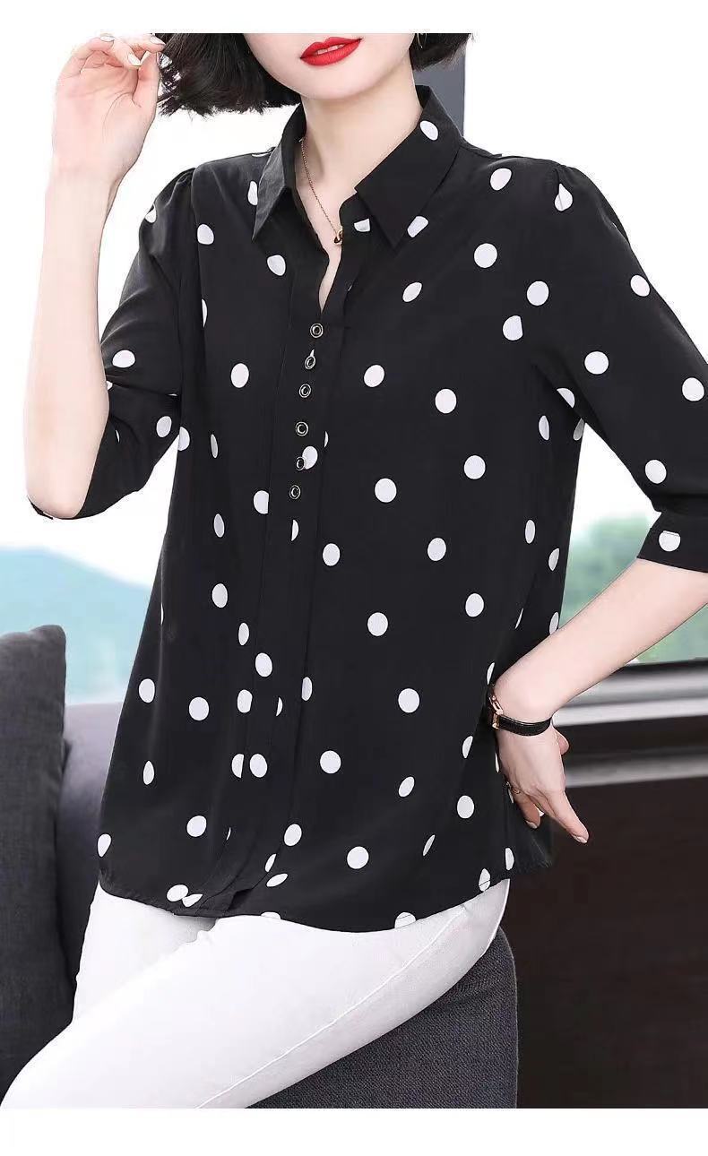 물방울 무늬 쉬폰 셔츠 여성용 2025 봄 여름 중년 엄마 셔츠 중간 소매 패셔너블한 자외선 차단 상의