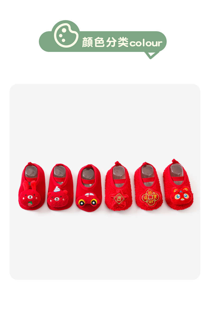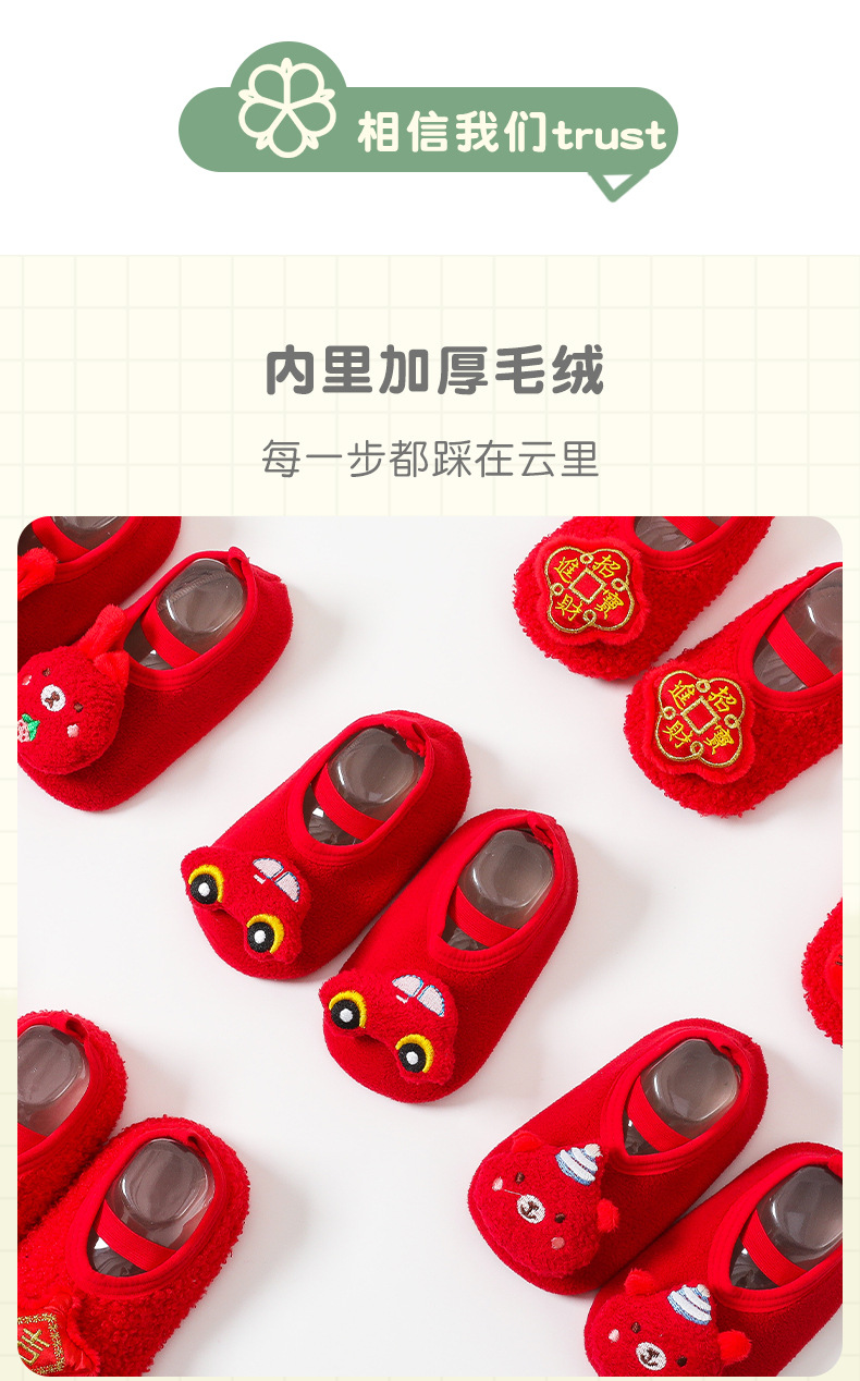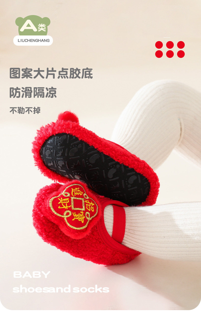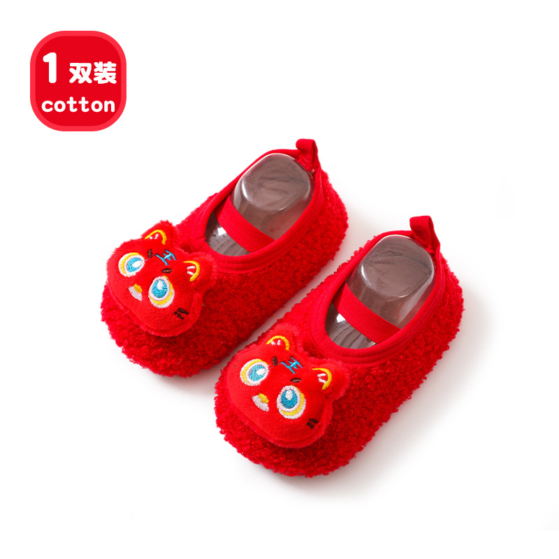 새해철 미끄럼 방지 부드러운 바닥 신발 아기 바닥 양말 어린이용 큰 빨간색 귀여운 만화 어린이 신발 유아용 양말 세트스토어 가기