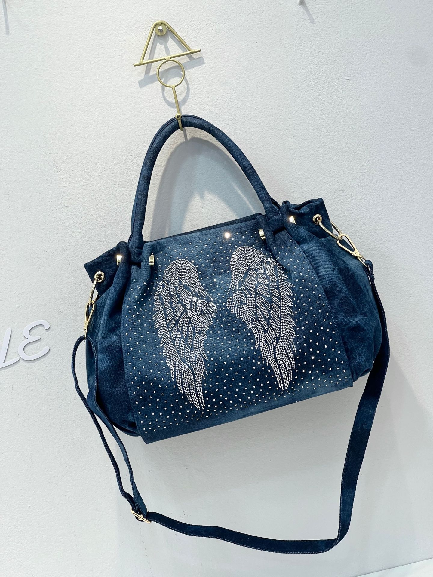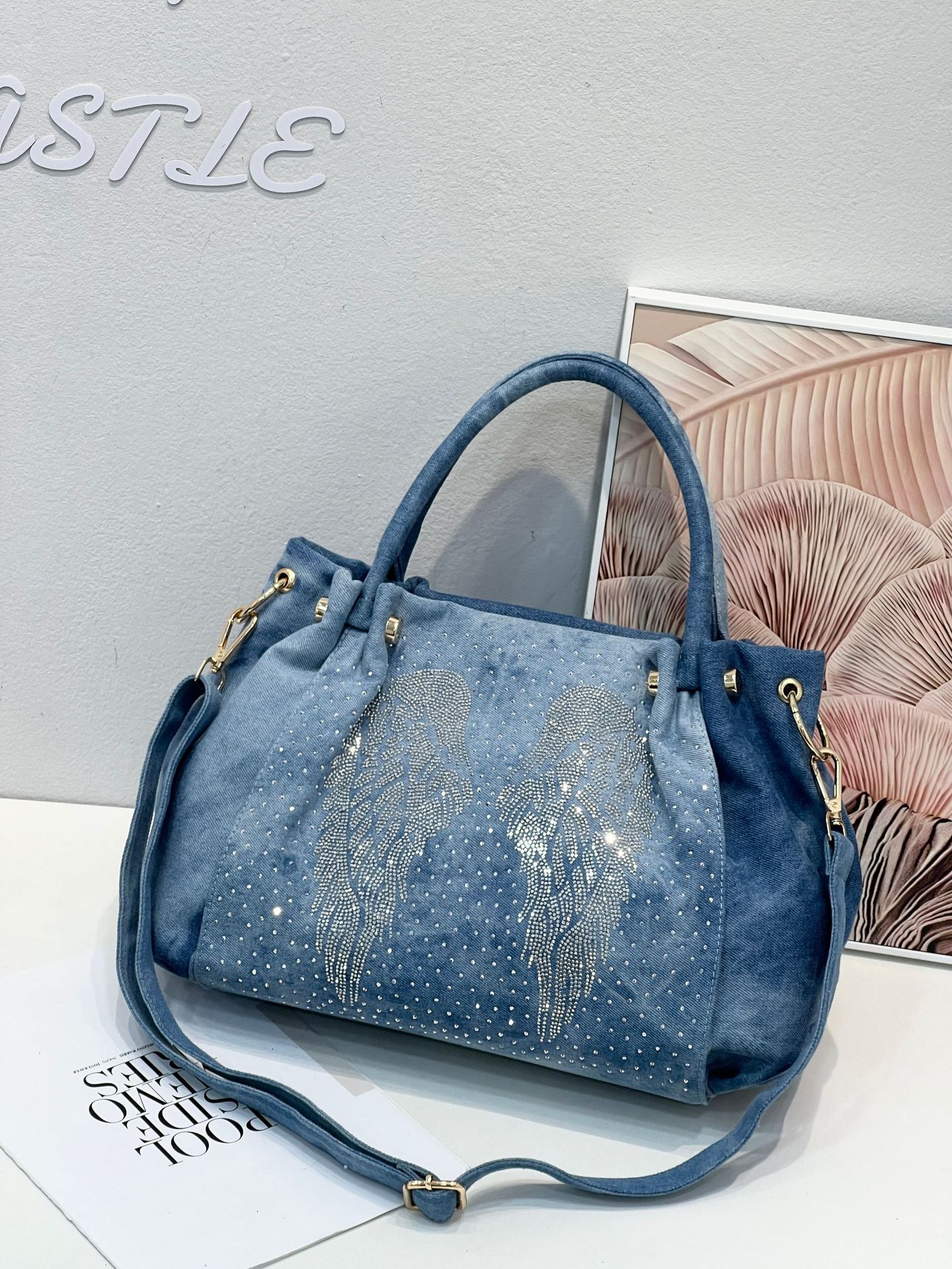 이순신 리 새로운 2023 트렌디 핫 드릴링 날개 여자의 숄더백 패션 크로스 바디 핸드백 데님 가방 새로운 토트백스토어 가기
