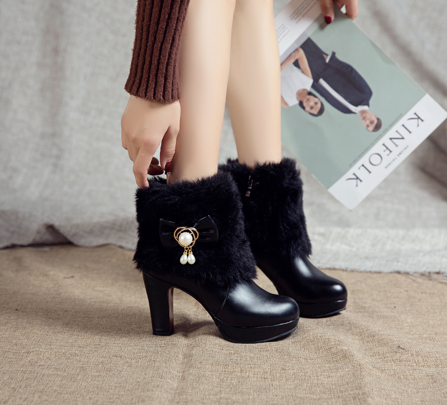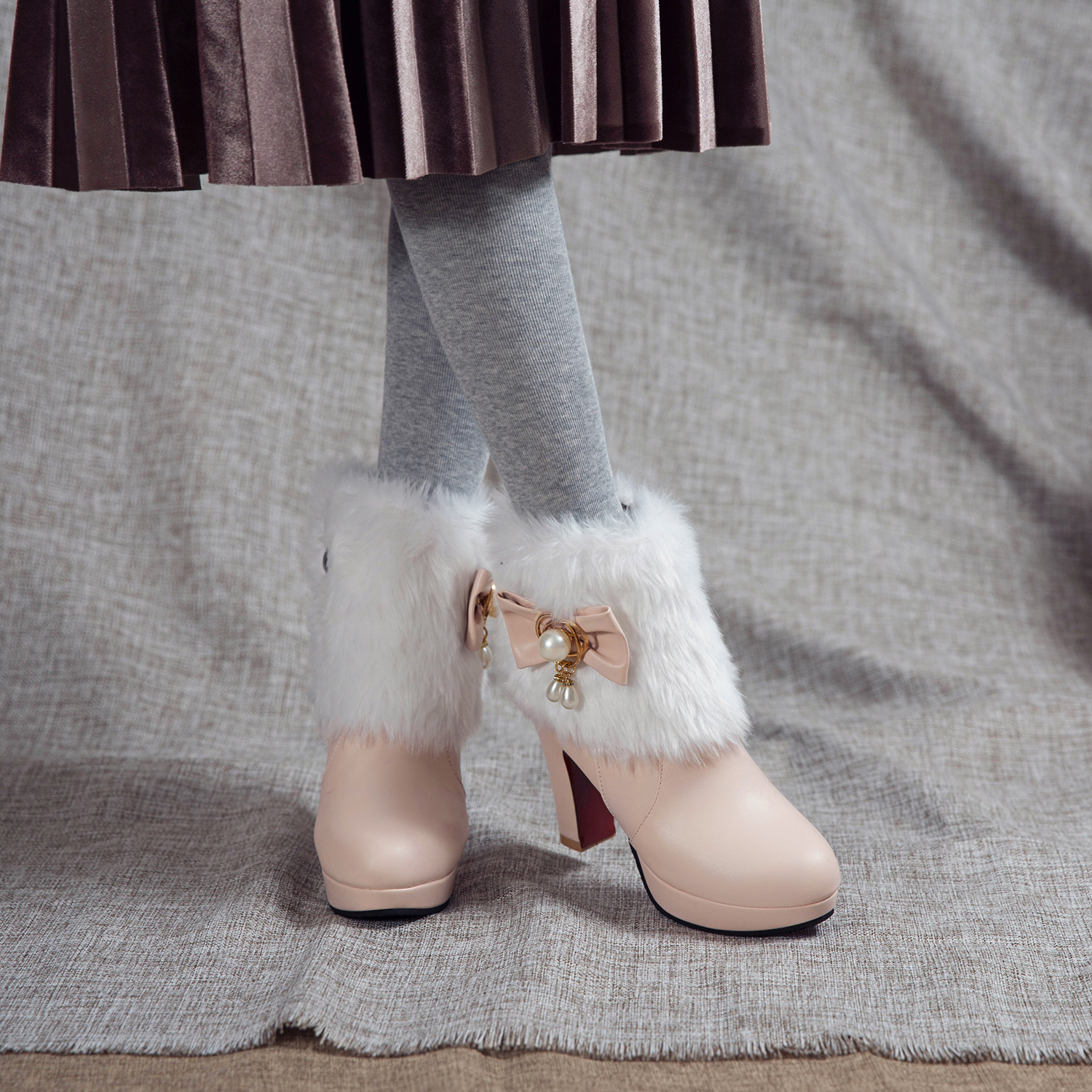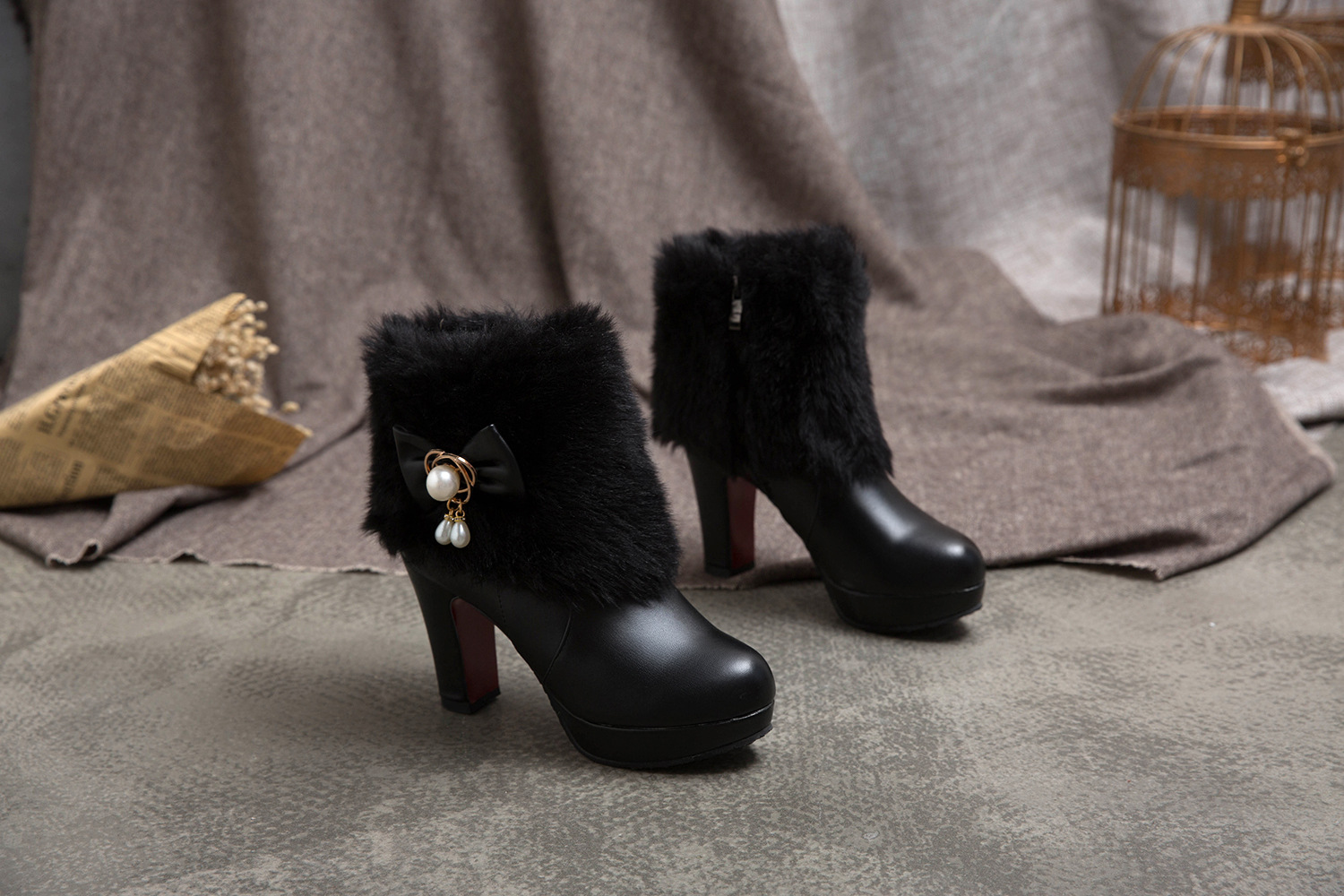 활 방수 플랫폼 마오 마오 칼라 짧은 부츠 사이즈 코드 크로스 보더 공급 두꺼운 힐 하이힐 유럽과 미국 여성 신발