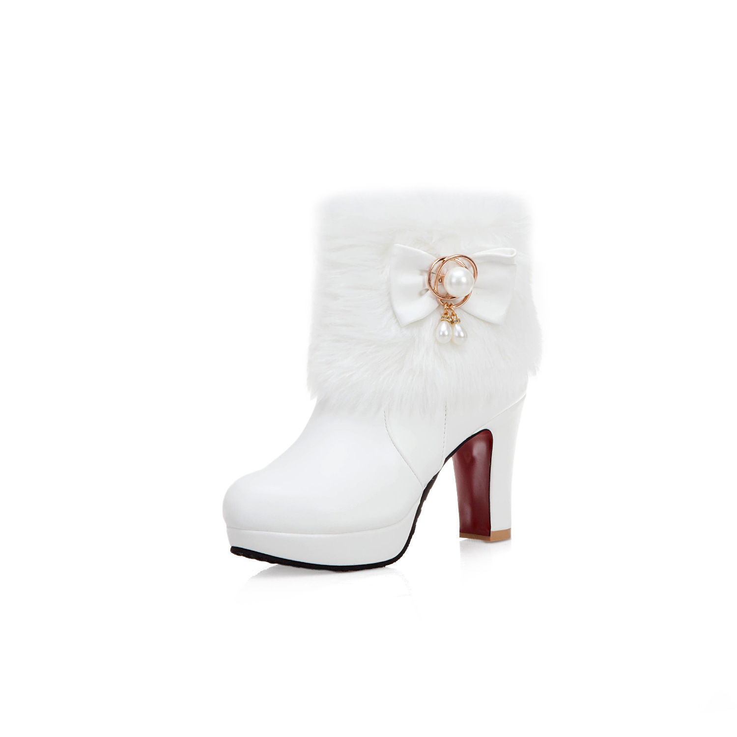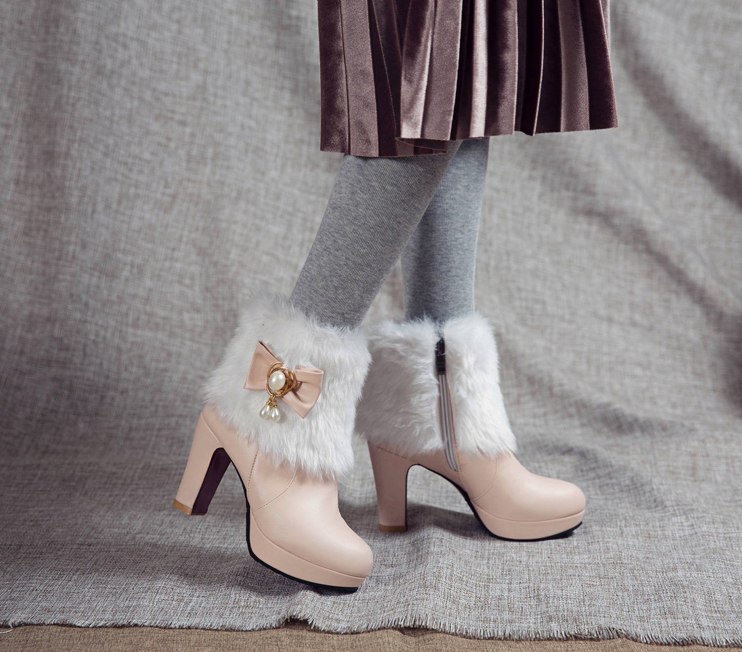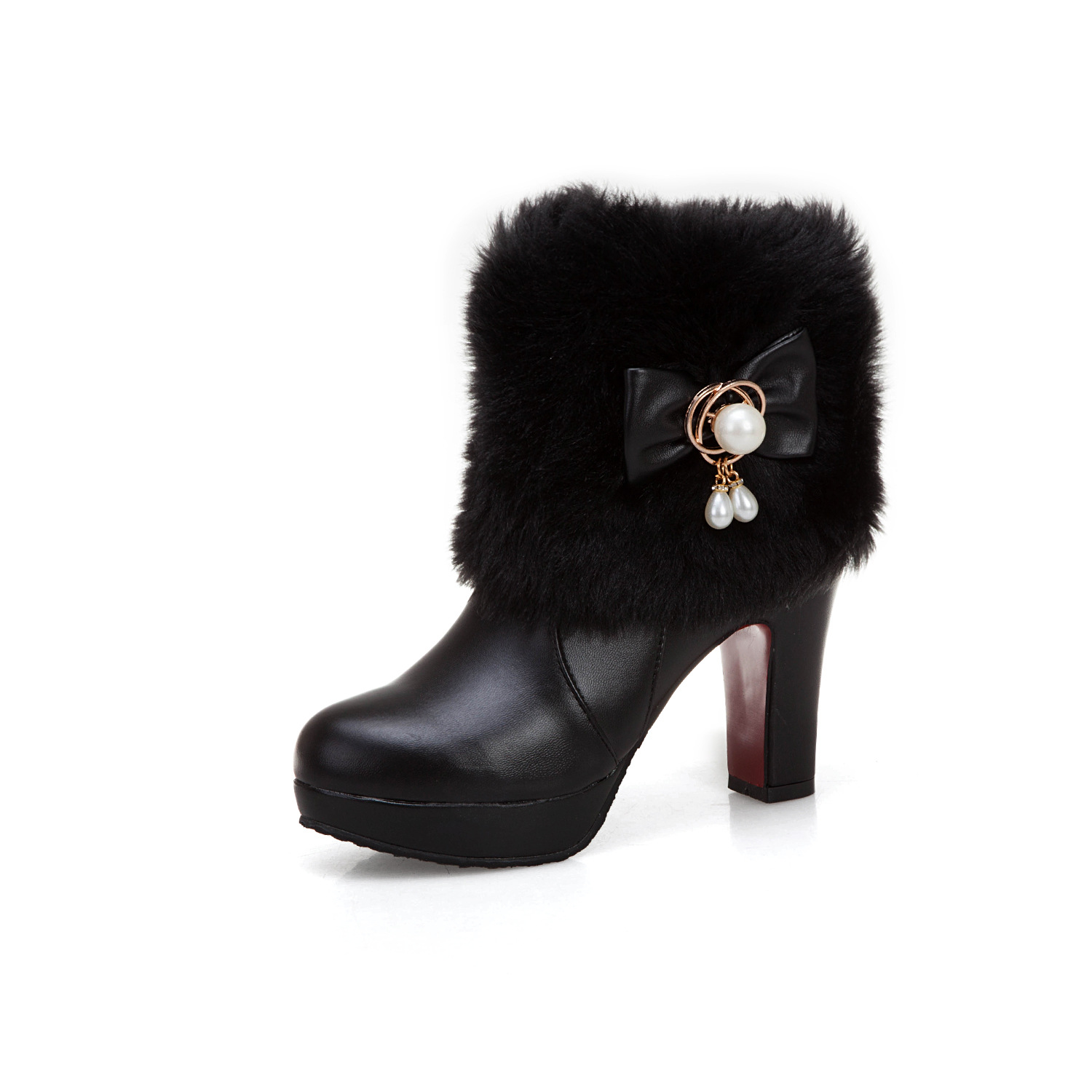 활 방수 플랫폼 마오 마오 칼라 짧은 부츠 사이즈 코드 크로스 보더 공급 두꺼운 힐 하이힐 유럽과 미국 여성 신발